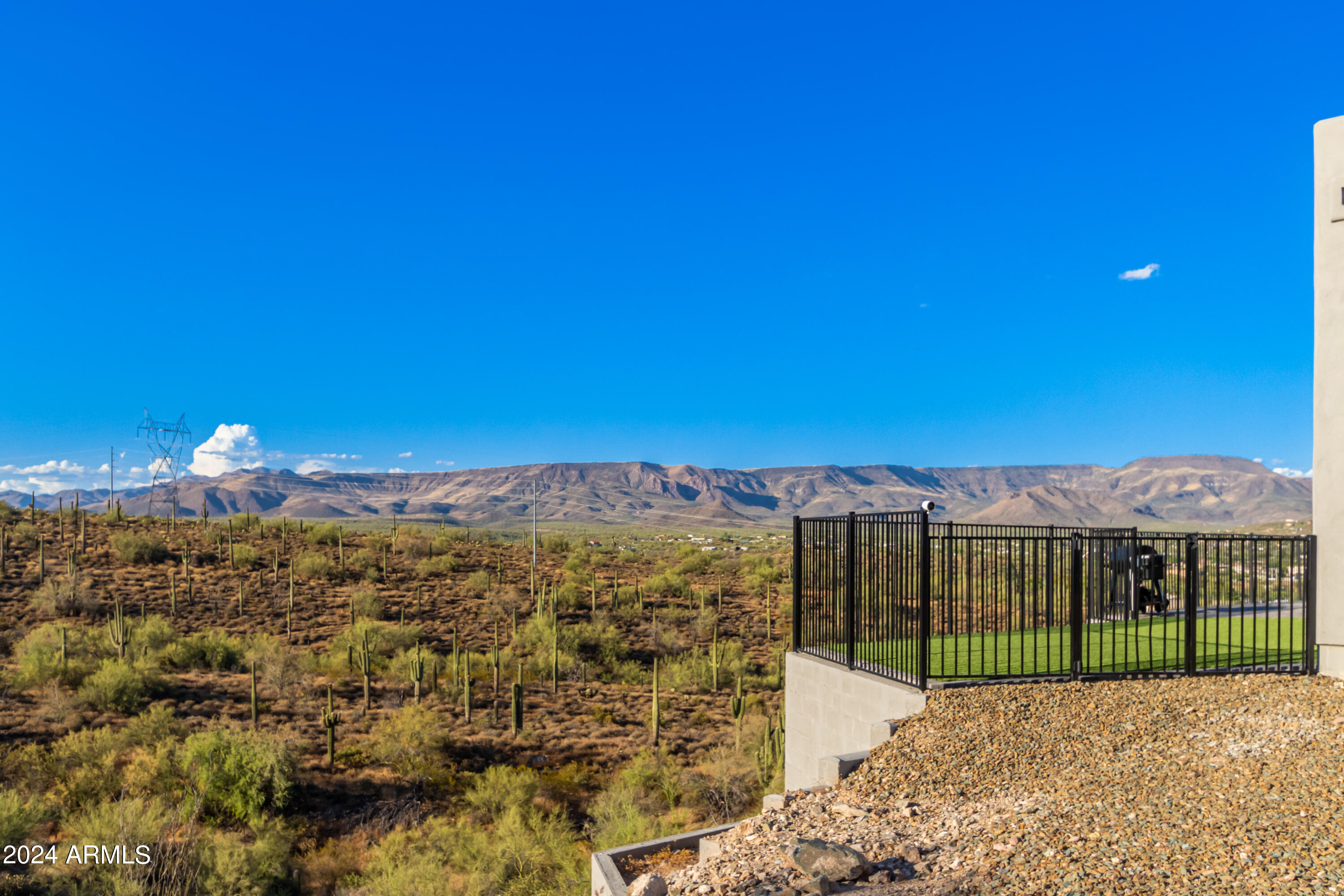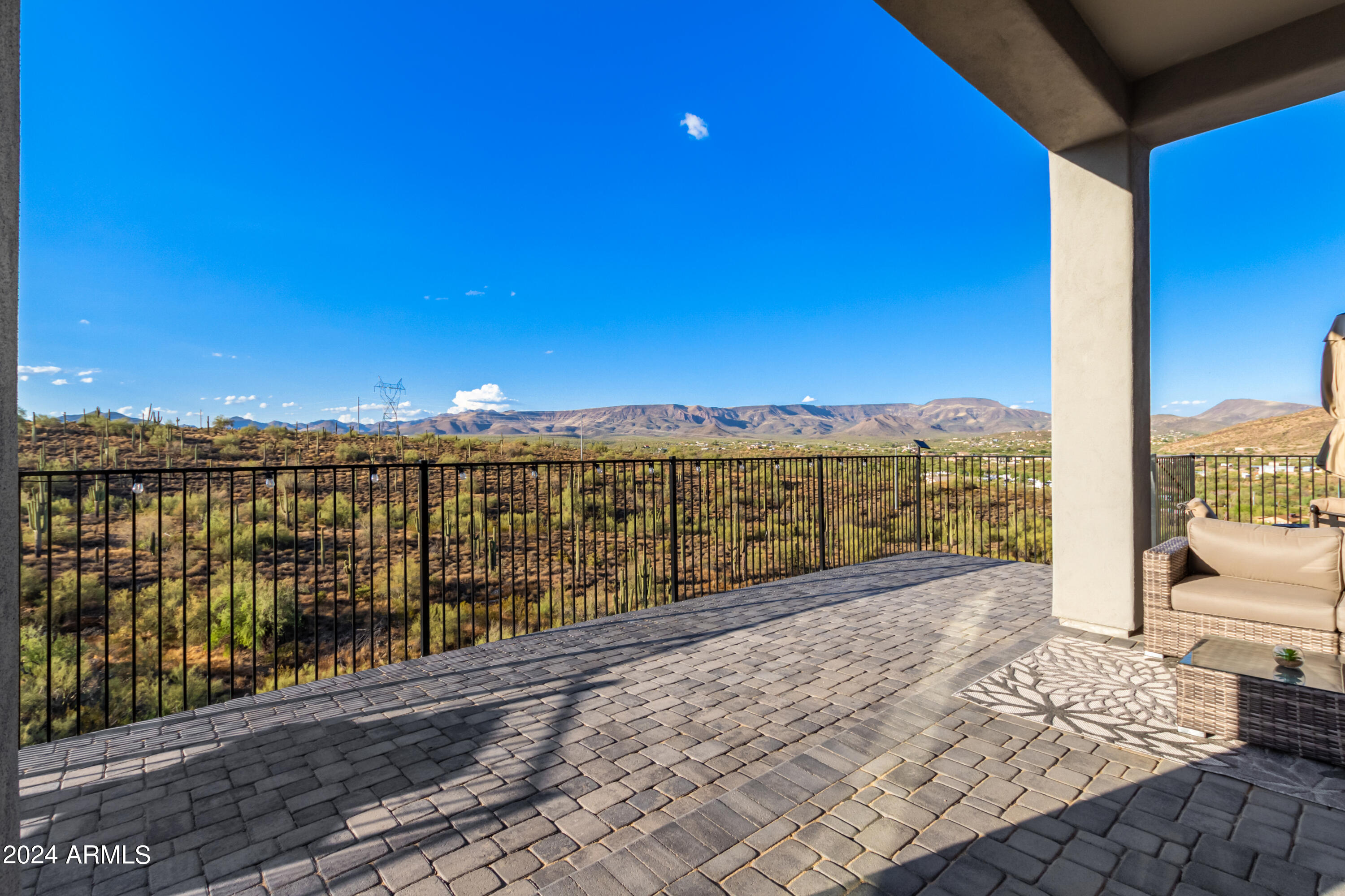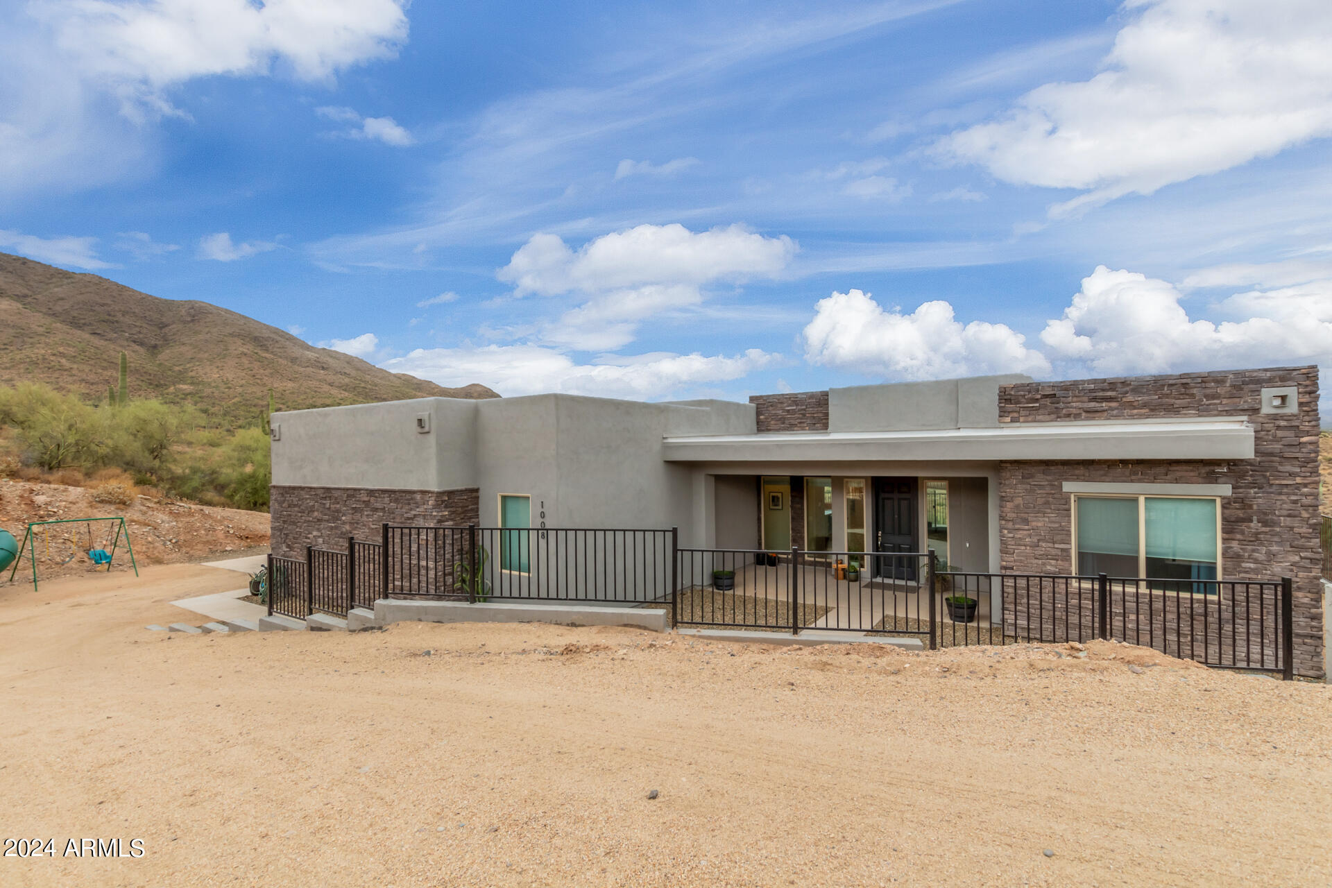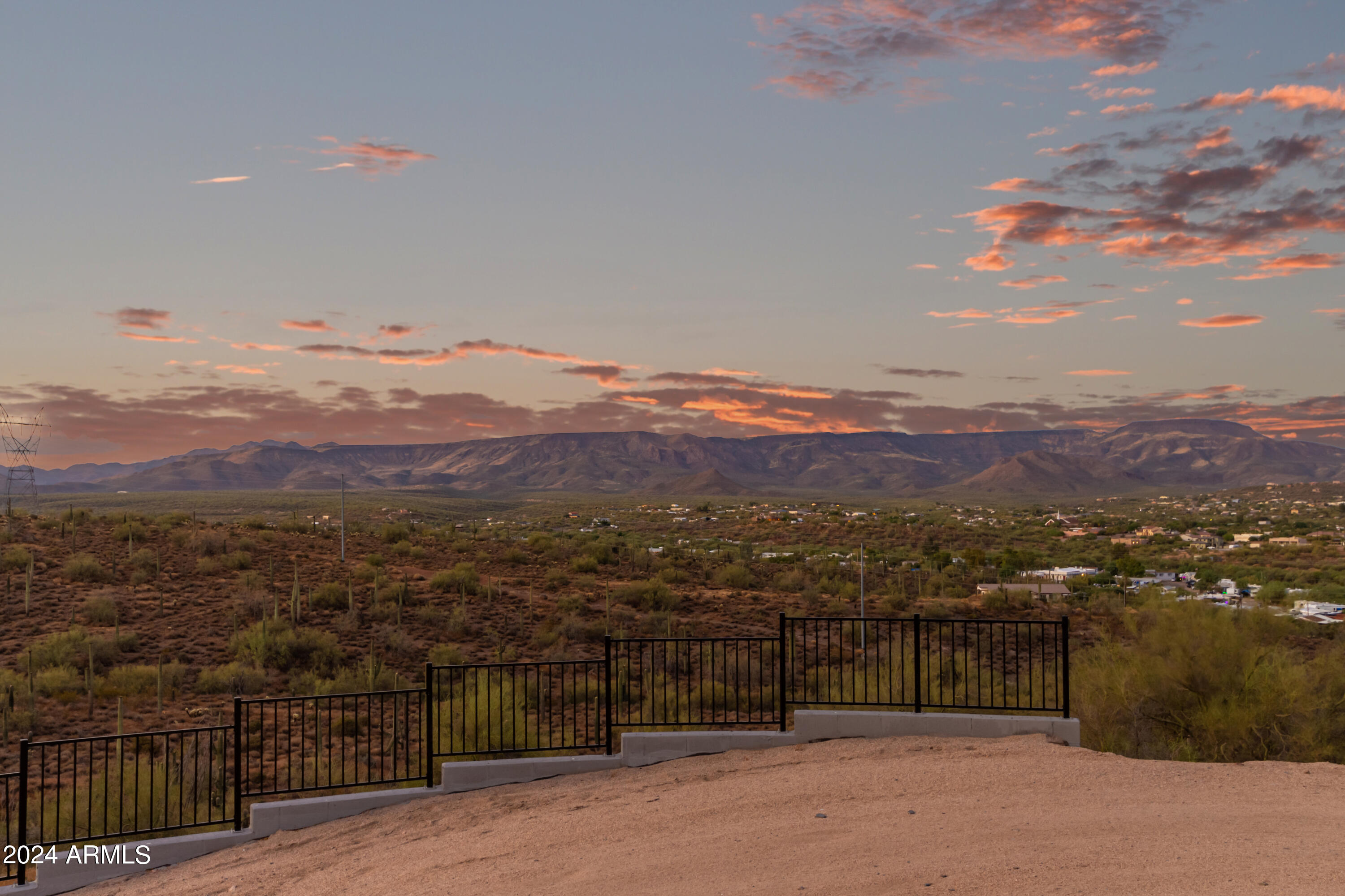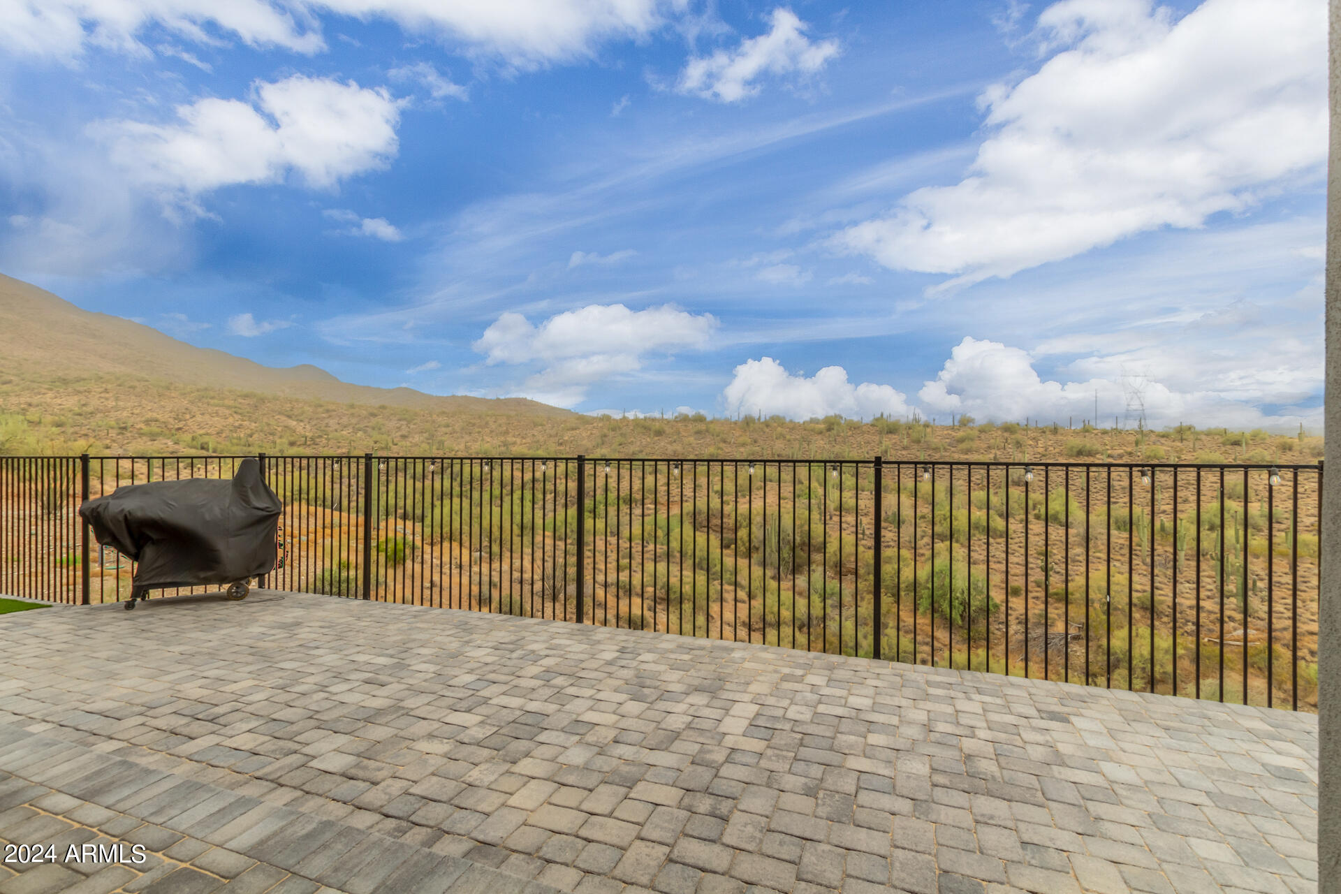Explore this newly constructed Morgan Taylor built home nestled on a sprawling 1.13-acres bordering state land. Extra private lot, saguaro desert views for days, horse rights with room for stalls. Stone accents and a convenient extended 2-car garage. Incredible views from every room. Features wood-look tile floors and a soothing neutral palette. The great room, complete with an electric fireplace, offers a warm welcome. The kitchen boasts ample wood cabinetry, stainless steel appliances including wall ovens, a pantry, granite counters, and a center island illuminated by pendant lights above the breakfast bar. The primary suite is a serene retreat, highlighting large windows that frame the mountain views, a private bathroom with dual sinks, a soaking tub, and a walk-in closet. Must see! Outside, the paver patio provides a perfect backdrop for enjoying stunning sunsets or hosting lively barbecues. Make this tranquil haven yours today!