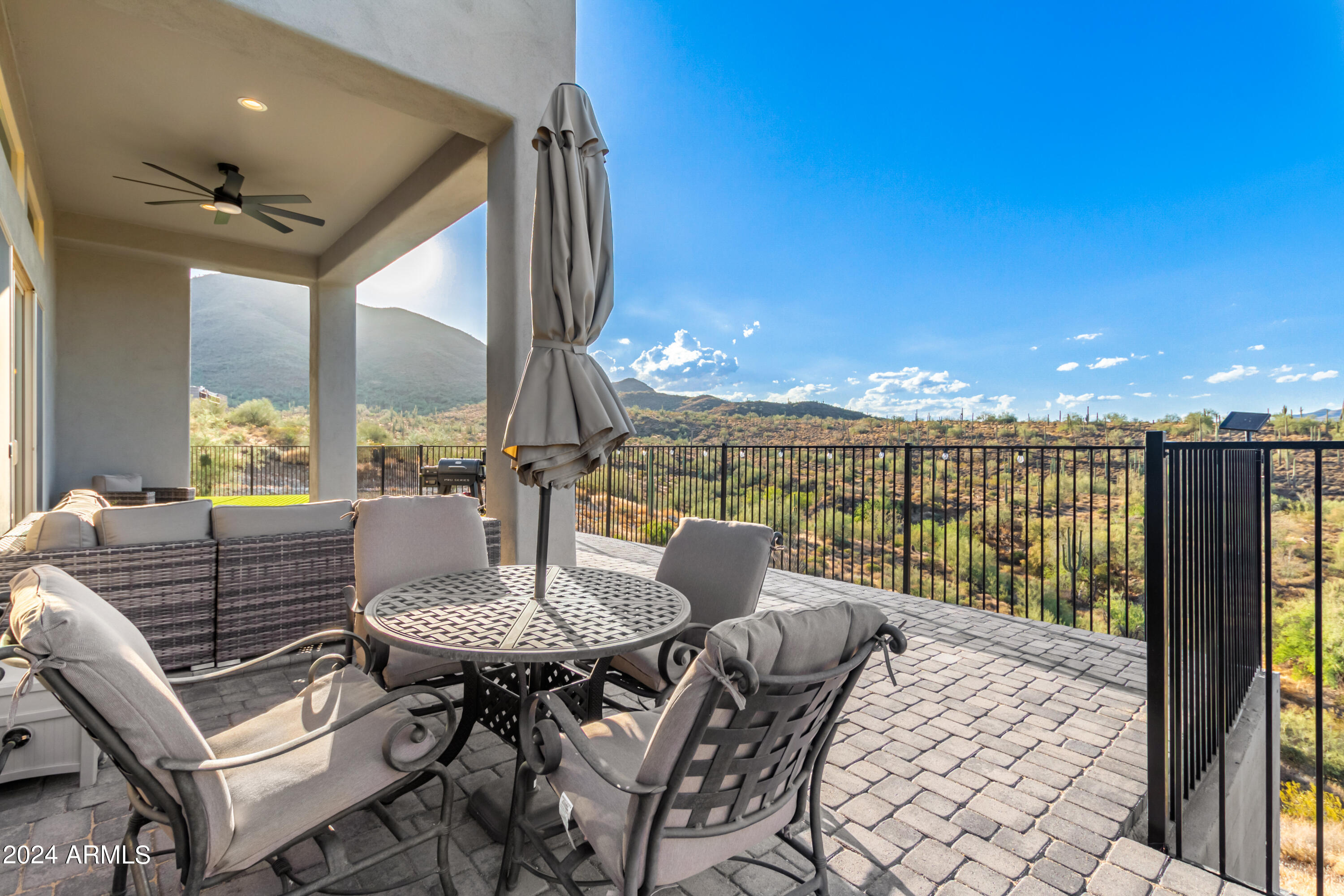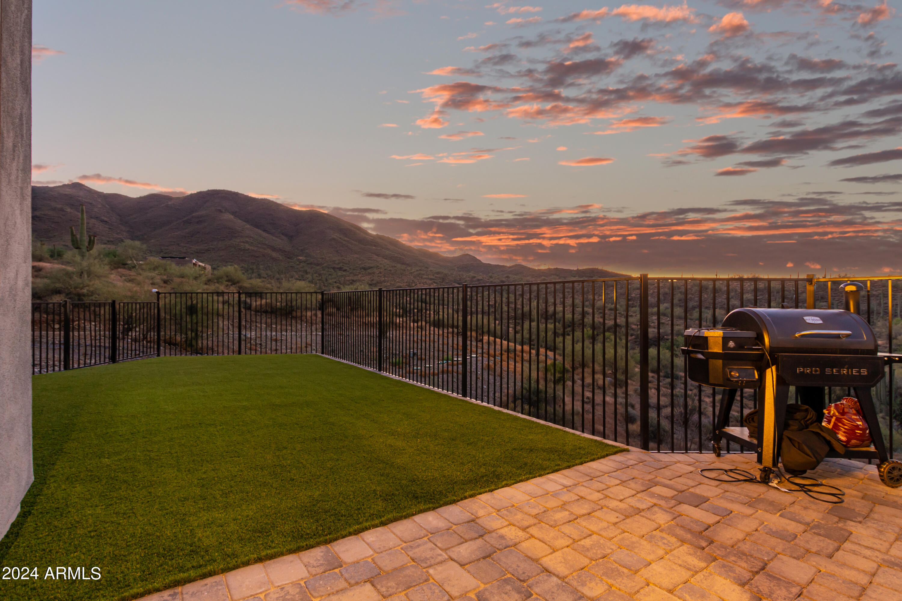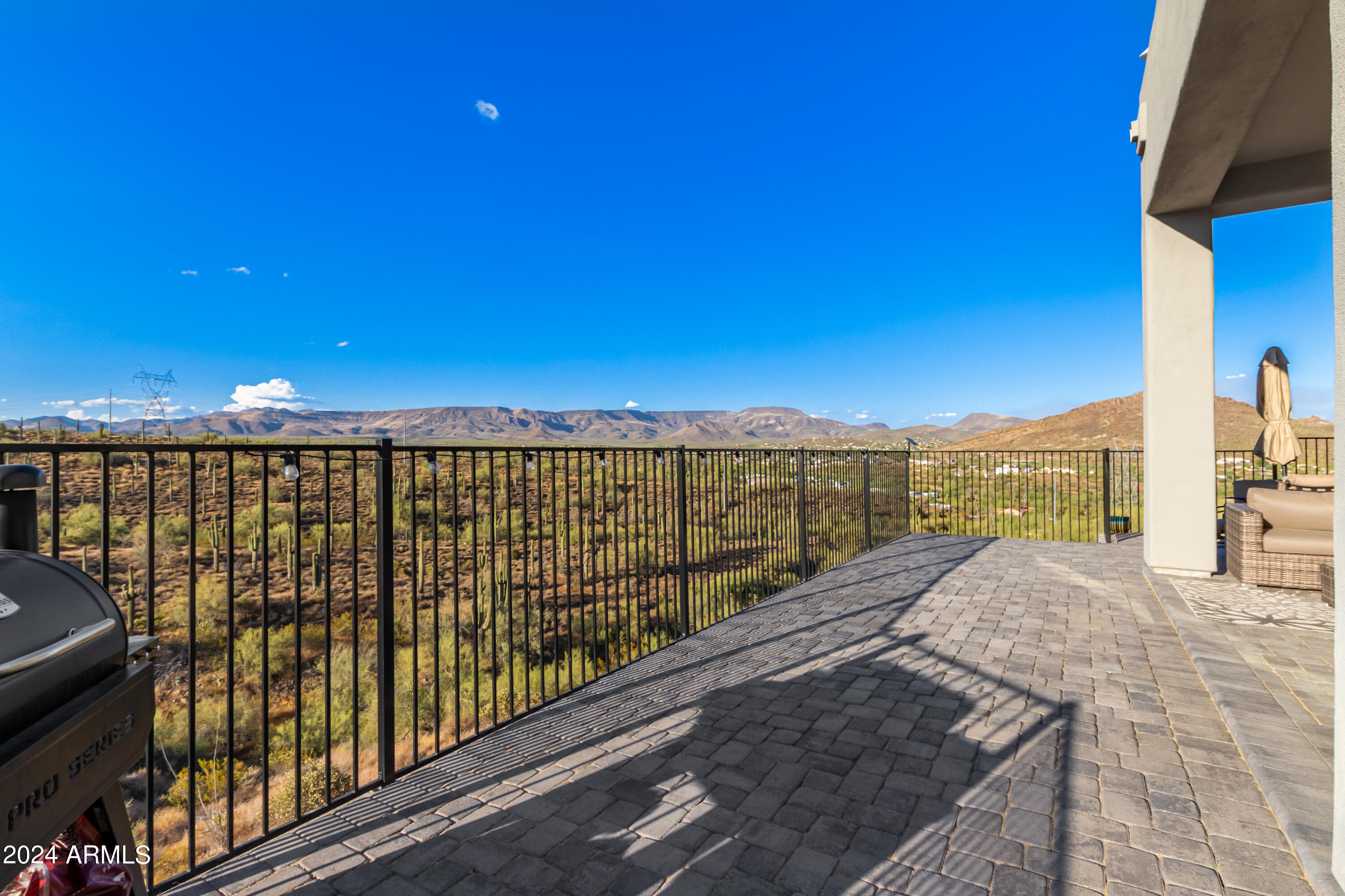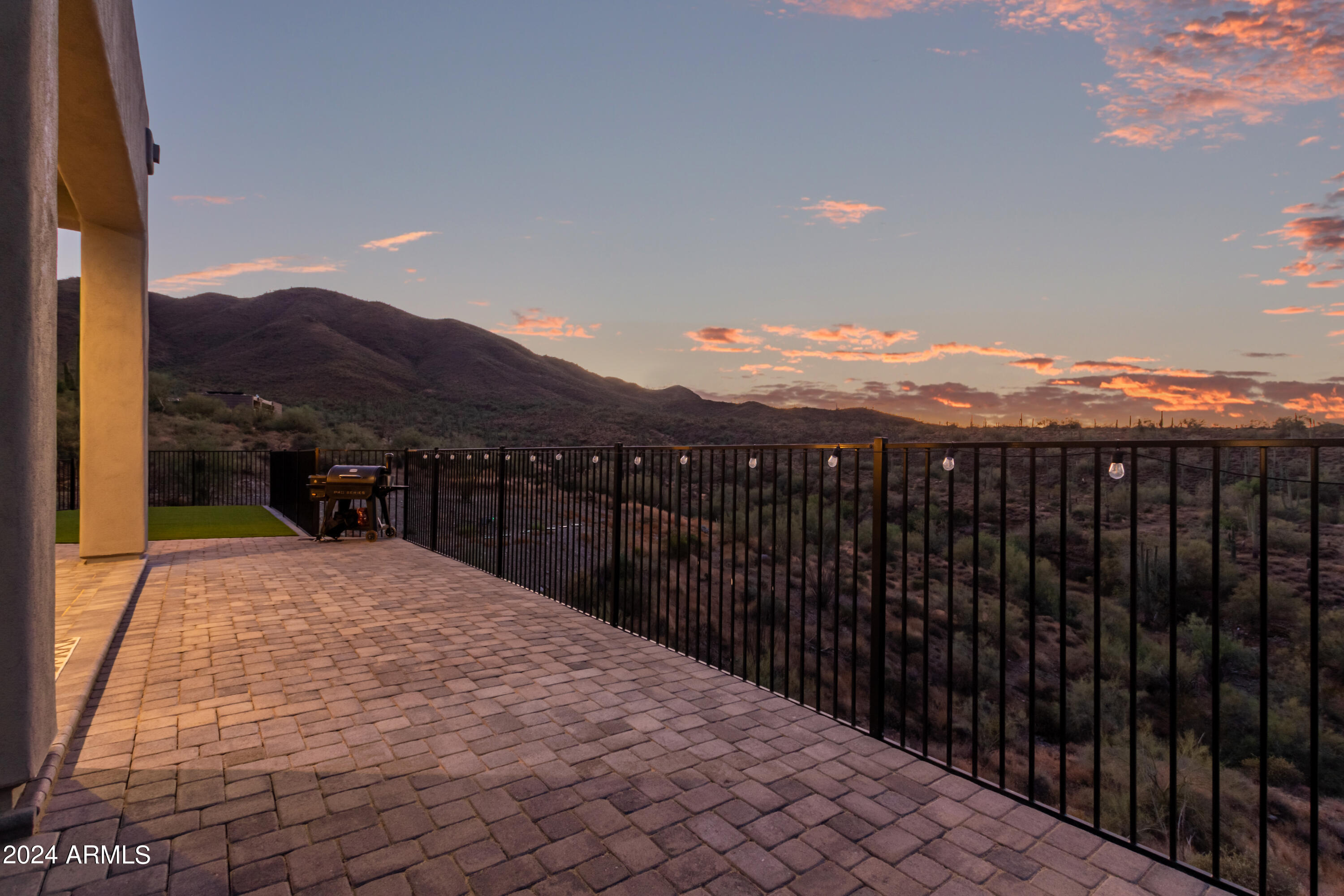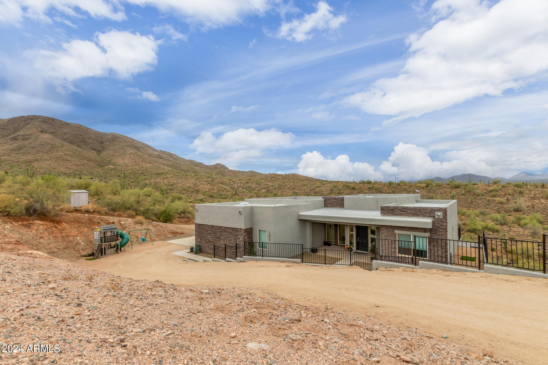 Explore this newly constructed Morgan Taylor built home nestled on a sprawling 1.13-acres bordering state land. Extra private lot, saguaro desert views for days, horse rights with room for stalls. Stone accents and a convenient extended 2-car garage. Incredible views from every room. Features wood-look tile floors and a soothing neutral palette. The great room, complete with an electric fireplace, offers a warm welcome. The kitchen boasts ample wood cabinetry, stainless steel appliances including wall ovens, a pantry, granite counters, and a center island illuminated by pendant lights above the breakfast bar. The primary suite is a serene retreat, highlighting large windows that frame the mountain views, a private bathroom with dual sinks, a soaking tub, and a walk-in closet. Must see! Outside, the paver patio provides a perfect backdrop for enjoying stunning sunsets or hosting lively barbecues. Make this tranquil haven yours today!