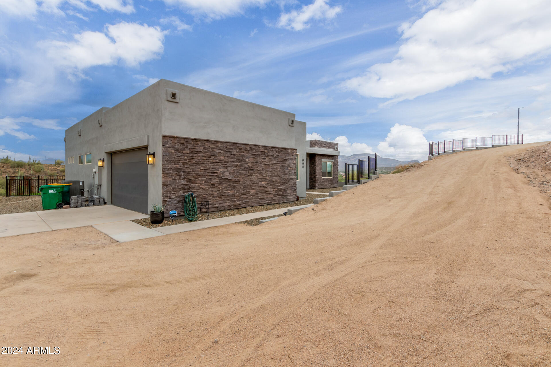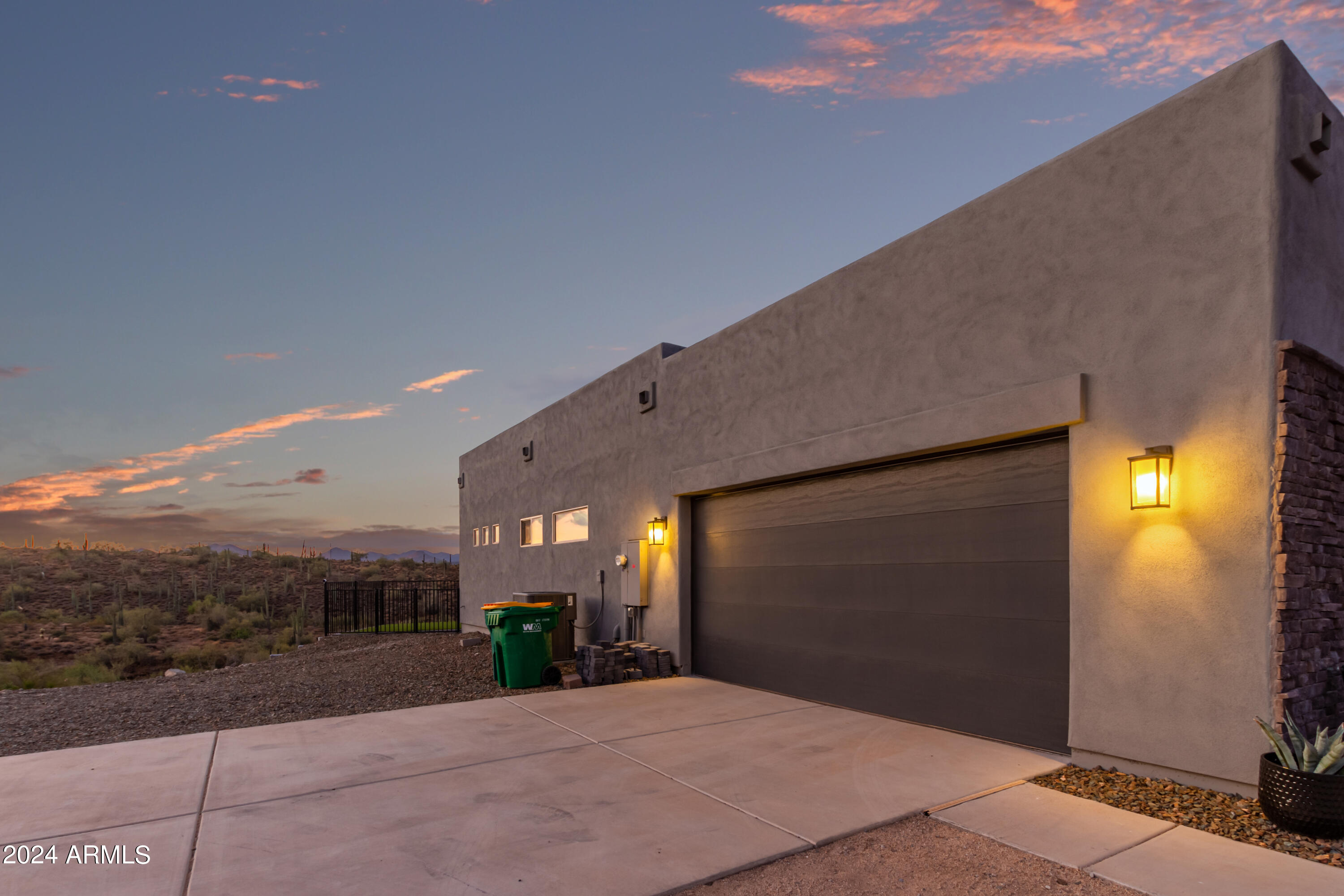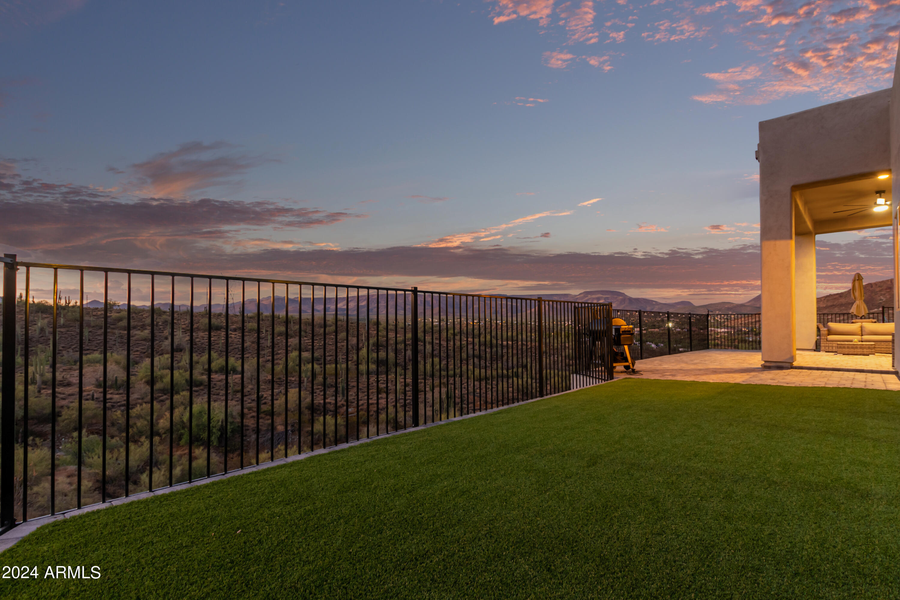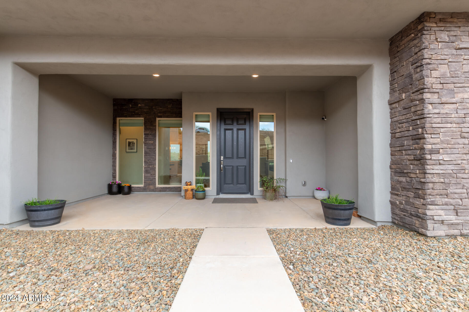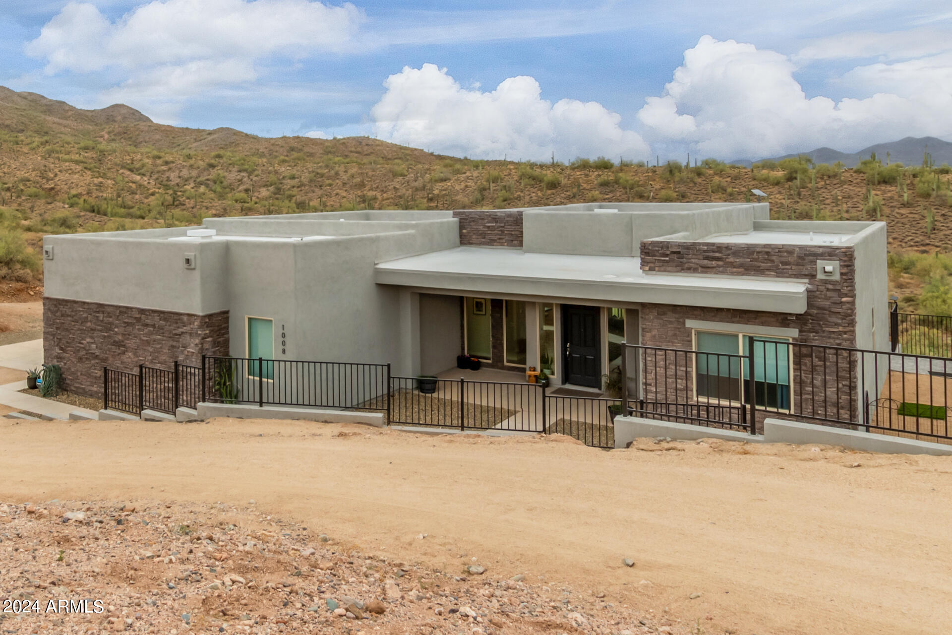 Explore this newly constructed Morgan Taylor built home nestled on a sprawling 1.13-acres bordering state land. Extra private lot, saguaro desert views for days, horse rights with room for stalls. Stone accents and a convenient extended 2-car garage. Incredible views from every room. Features wood-look tile floors and a soothing neutral palette. The great room, complete with an electric fireplace, offers a warm welcome. The kitchen boasts ample wood cabinetry, stainless steel appliances including wall ovens, a pantry, granite counters, and a center island illuminated by pendant lights above the breakfast bar. The primary suite is a serene retreat, highlighting large windows that frame the mountain views, a private bathroom with dual sinks, a soaking tub, and a walk-in closet. Must see! Outside, the paver patio provides a perfect backdrop for enjoying stunning sunsets or hosting lively barbecues. Make this tranquil haven yours today!