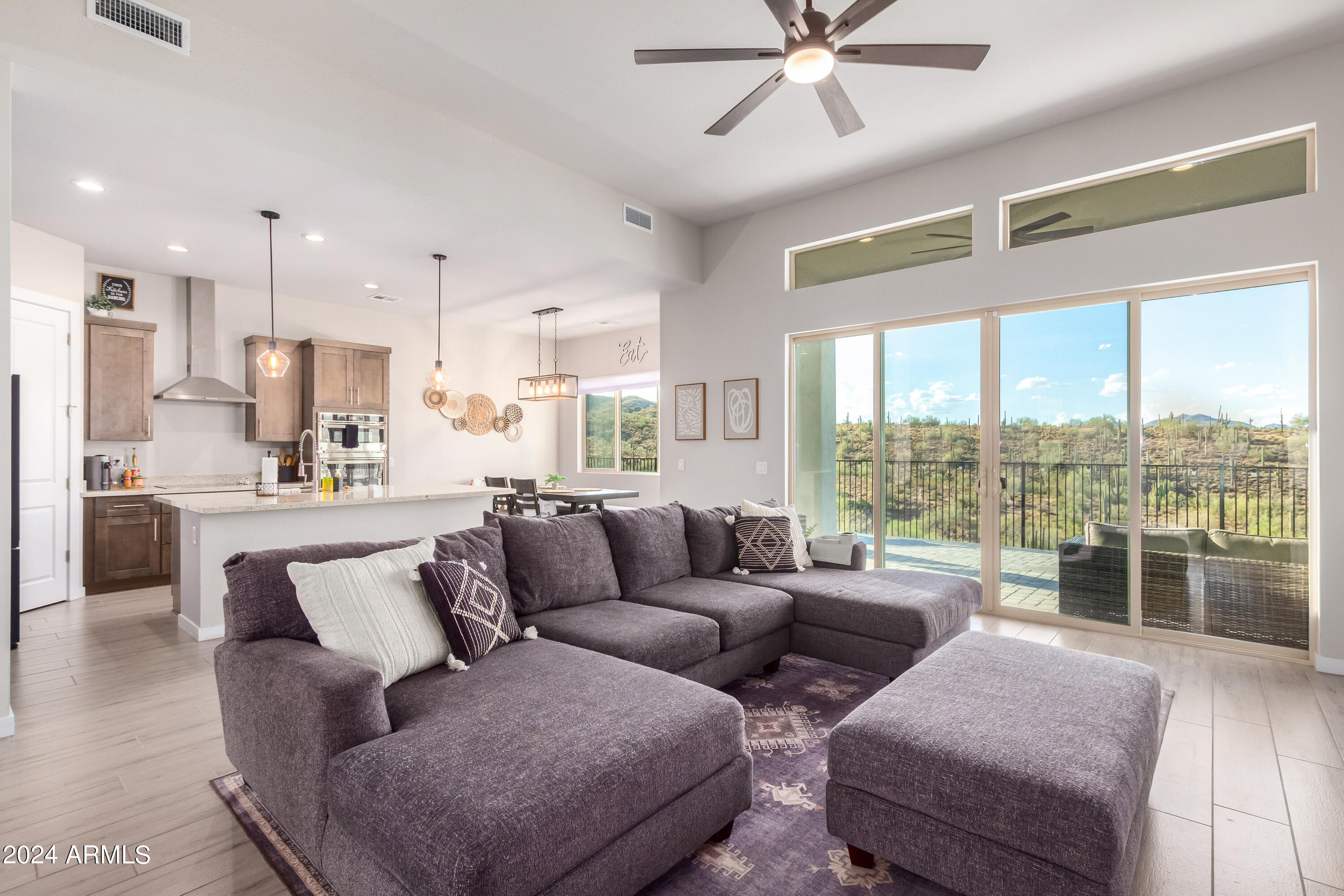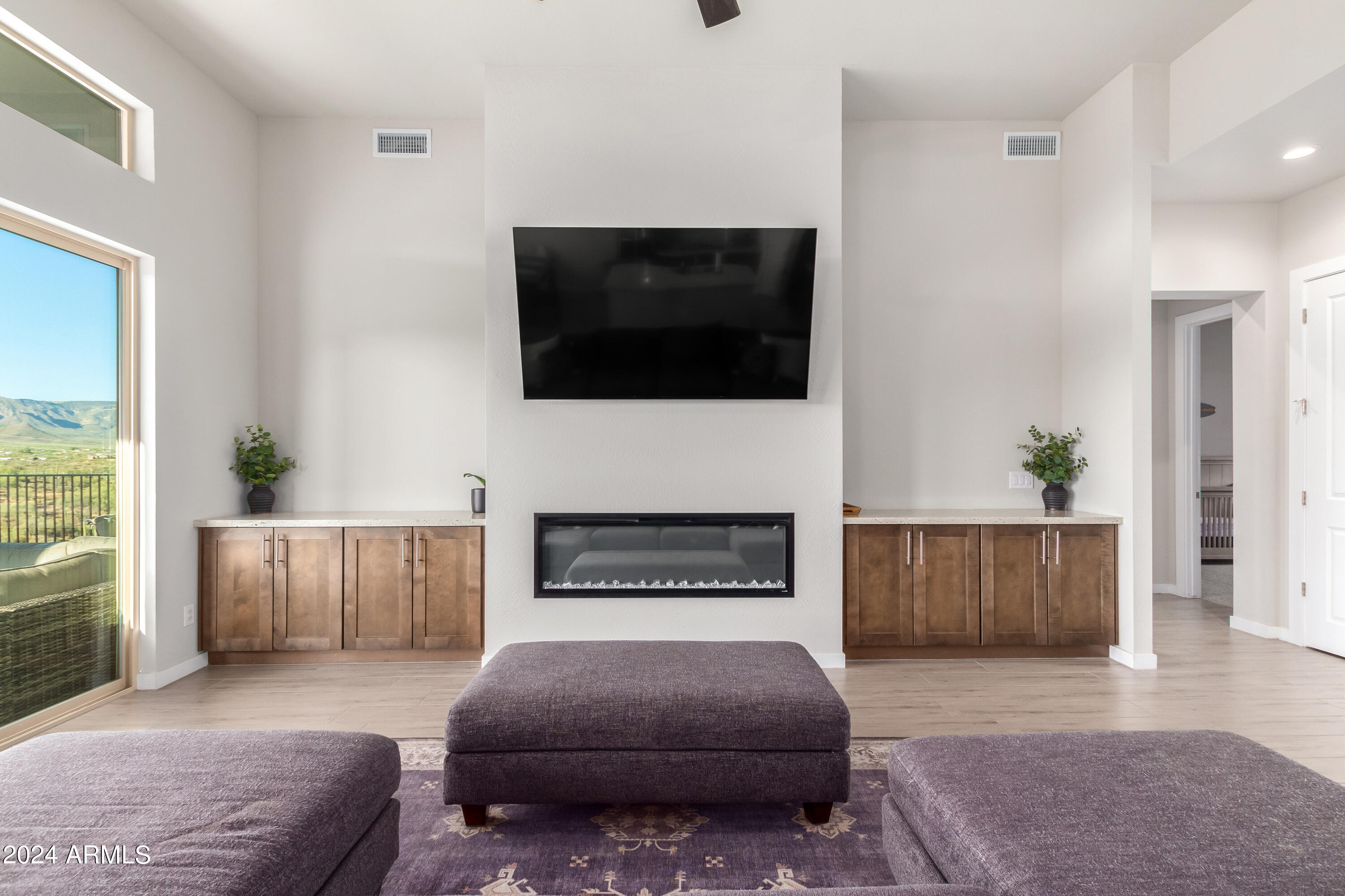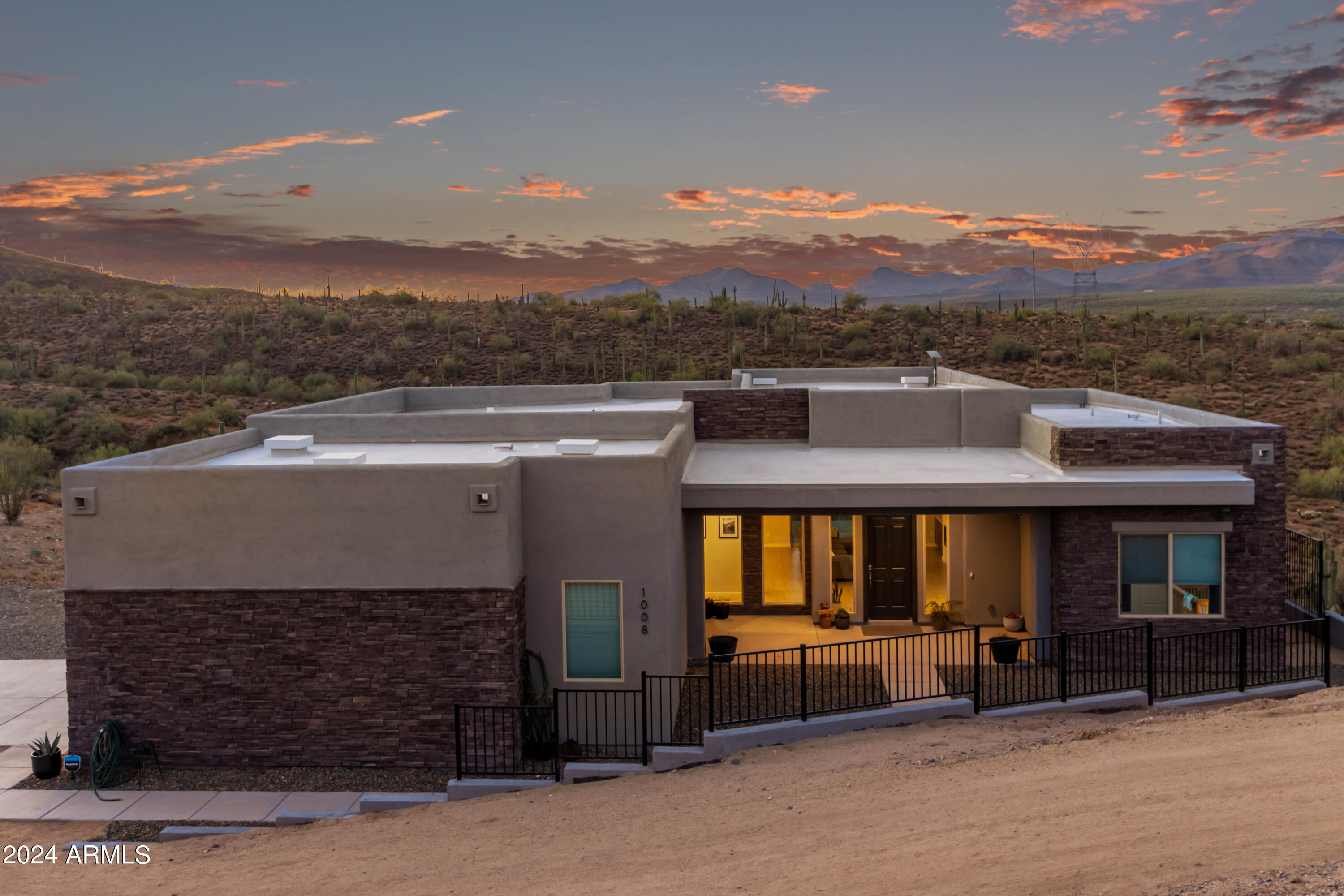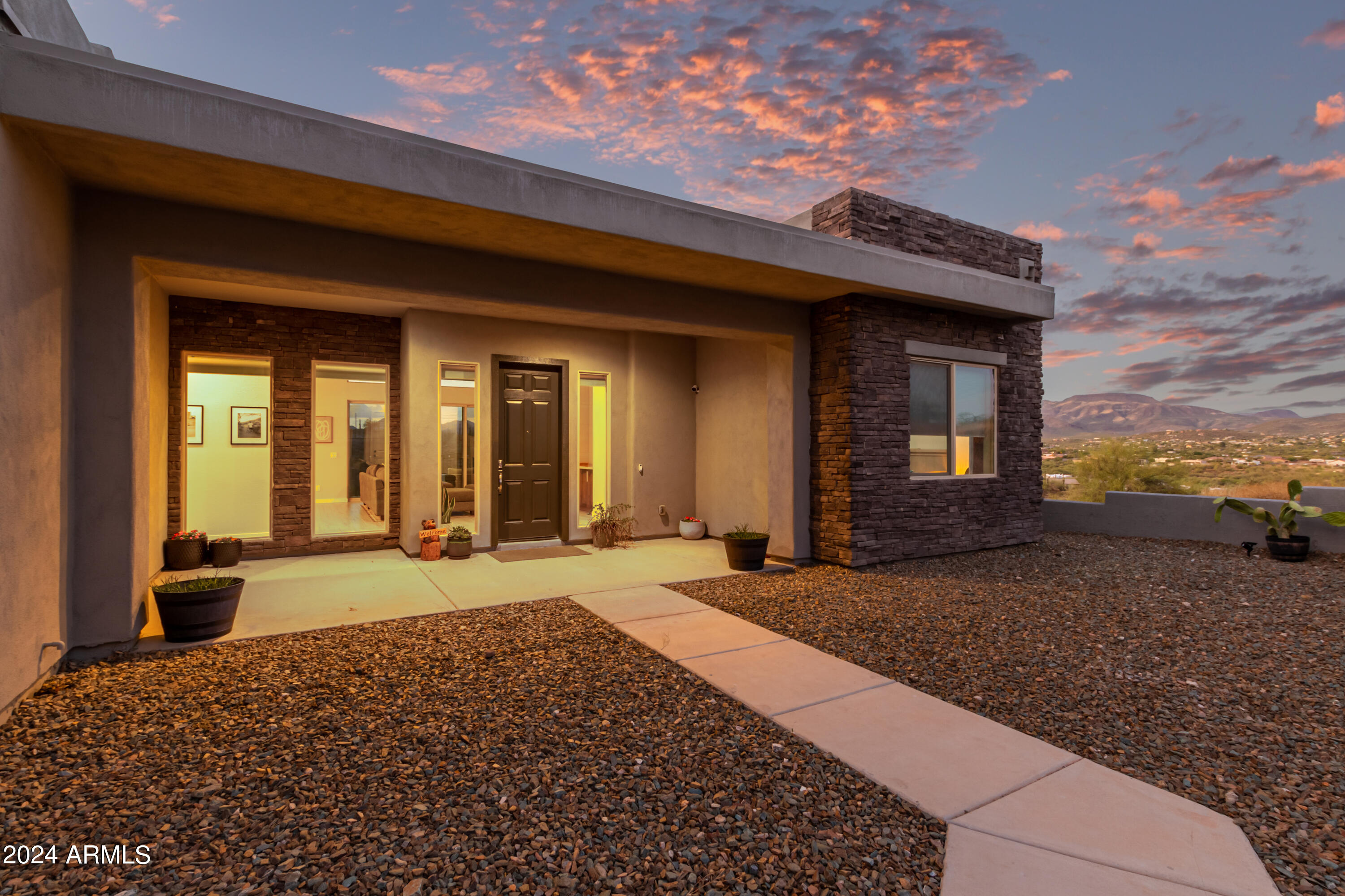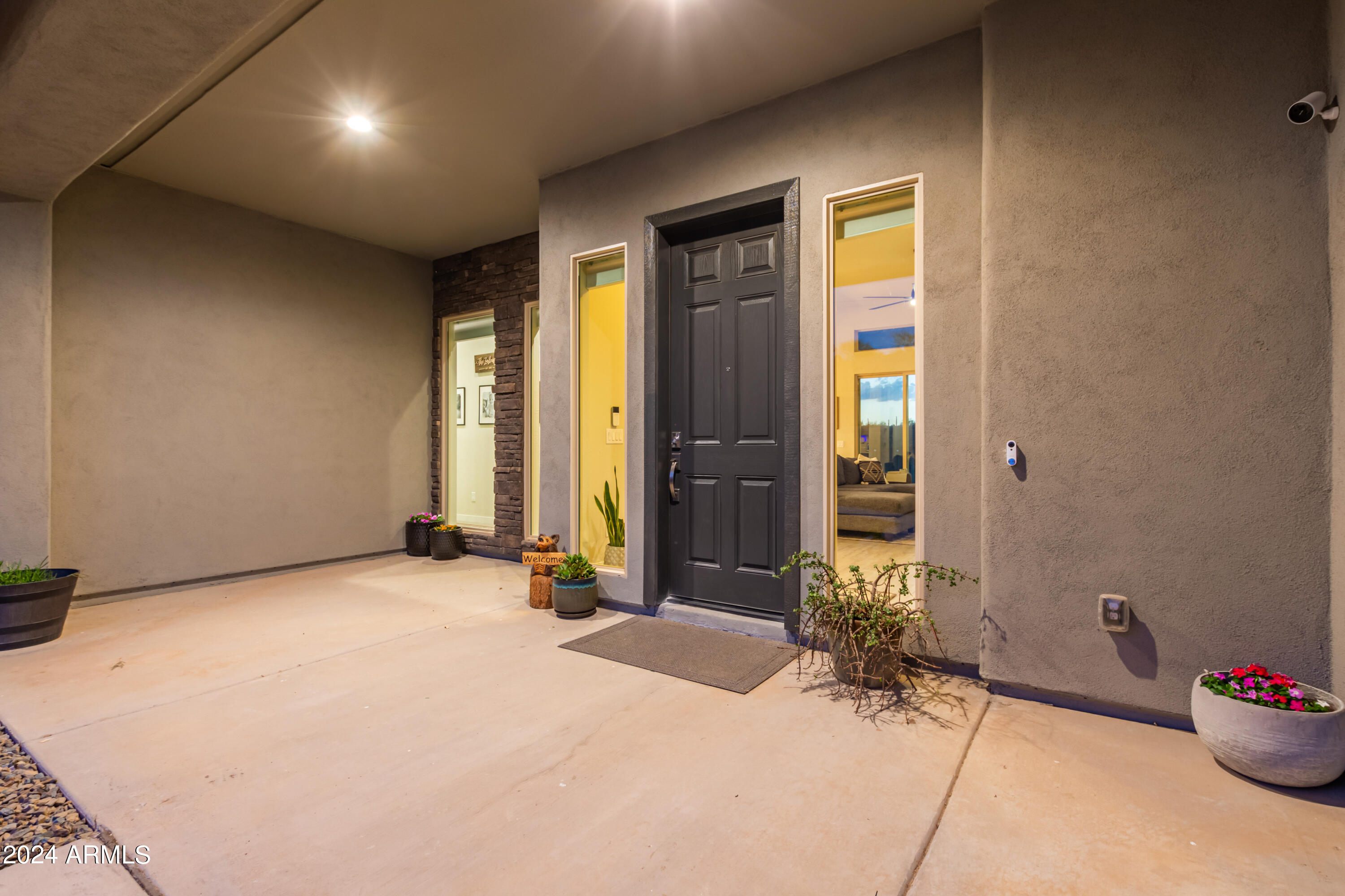 Explore this newly constructed Morgan Taylor built home nestled on a sprawling 1.13-acres bordering state land. Extra private lot, saguaro desert views for days, horse rights with room for stalls. Stone accents and a convenient extended 2-car garage. Incredible views from every room. Features wood-look tile floors and a soothing neutral palette. The great room, complete with an electric fireplace, offers a warm welcome. The kitchen boasts ample wood cabinetry, stainless steel appliances including wall ovens, a pantry, granite counters, and a center island illuminated by pendant lights above the breakfast bar. The primary suite is a serene retreat, highlighting large windows that frame the mountain views, a private bathroom with dual sinks, a soaking tub, and a walk-in closet. Must see! Outside, the paver patio provides a perfect backdrop for enjoying stunning sunsets or hosting lively barbecues. Make this tranquil haven yours today!