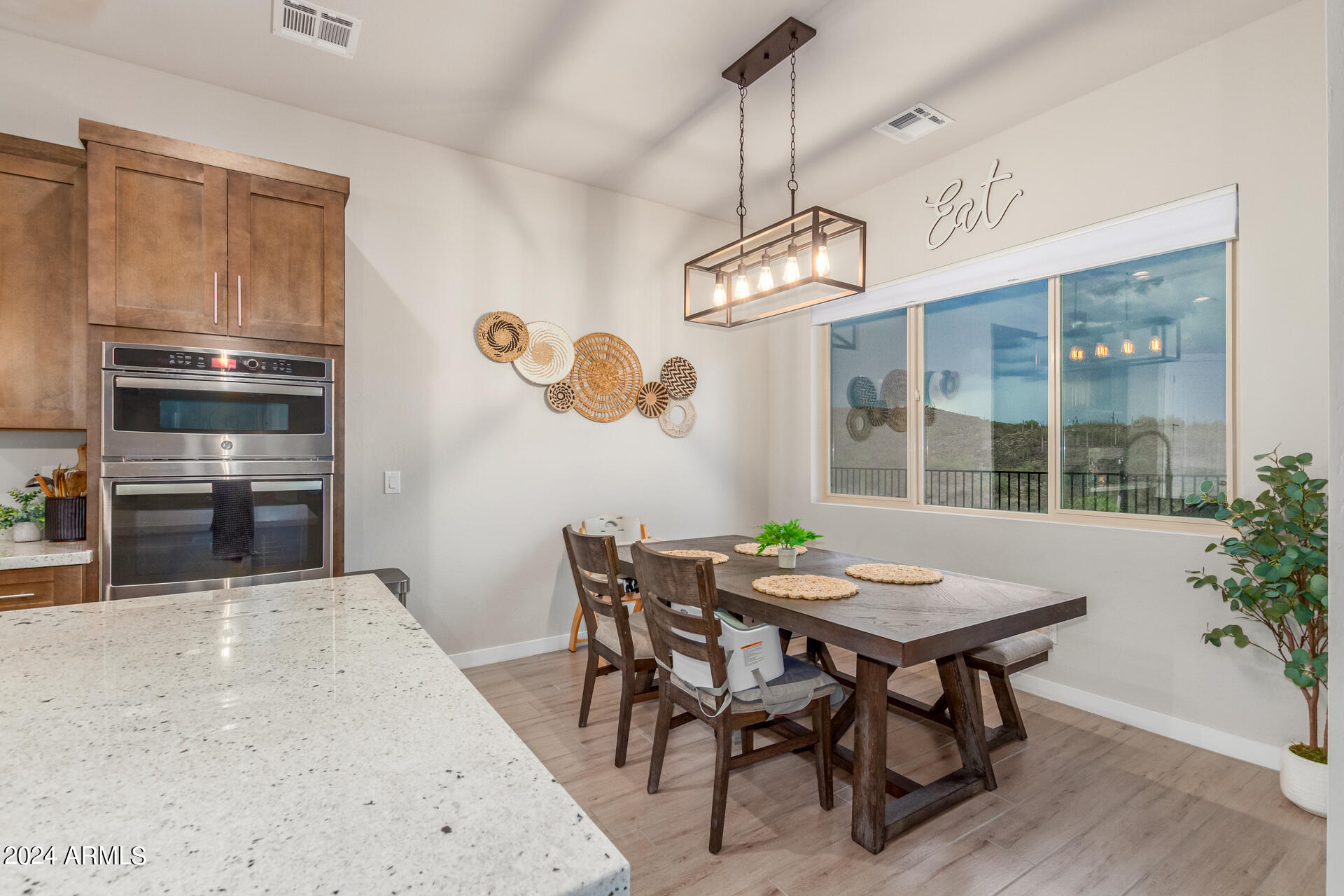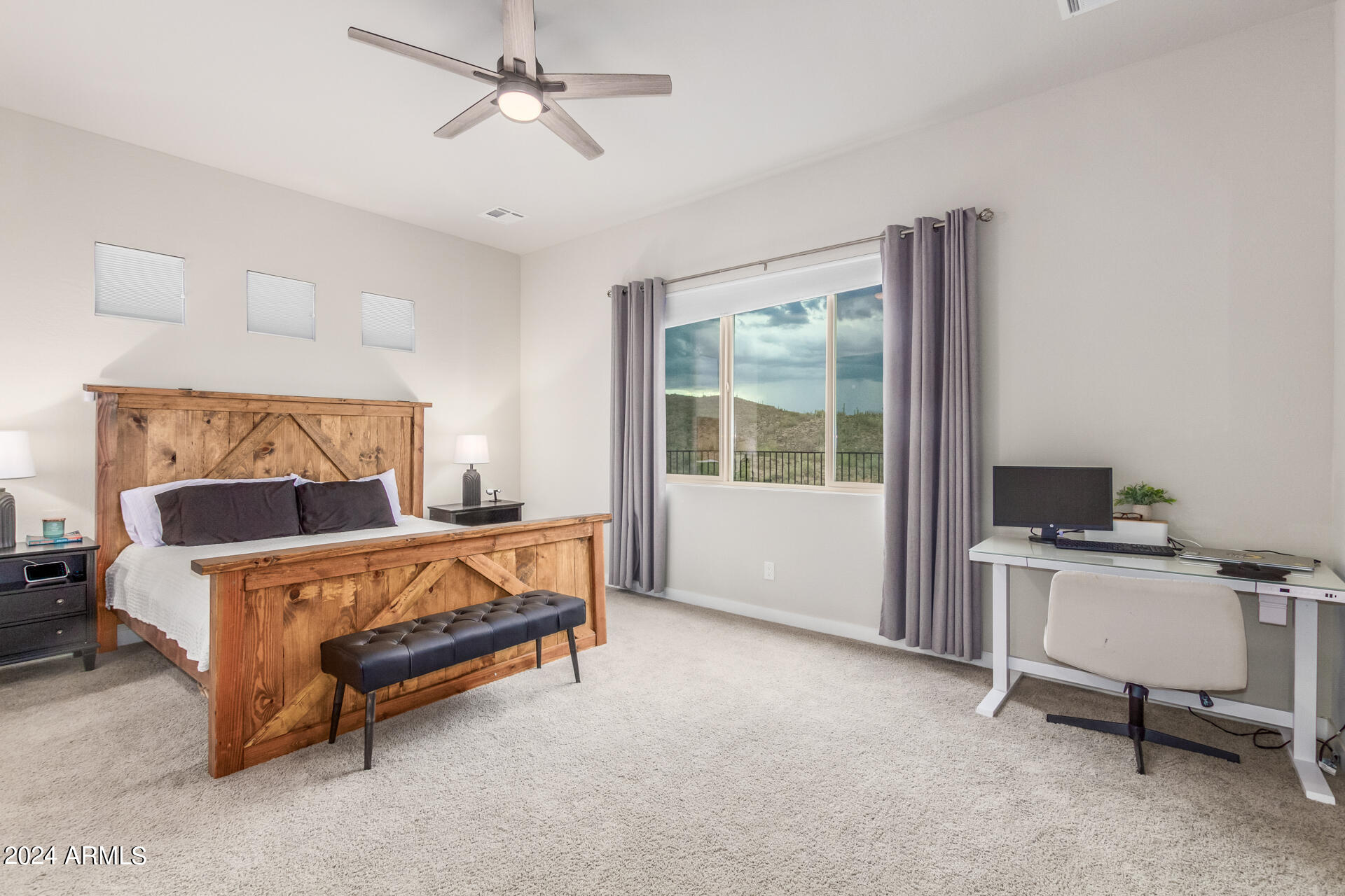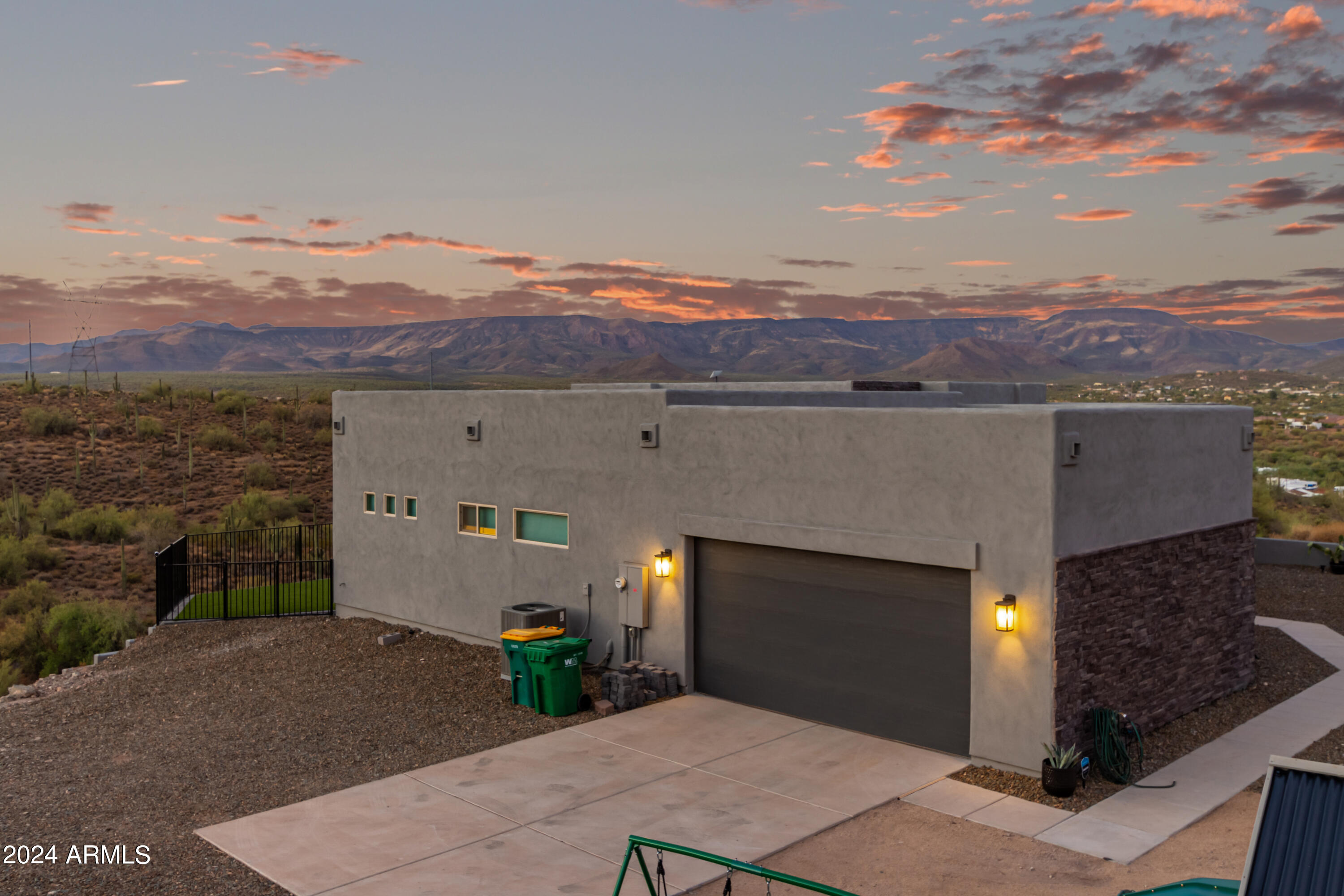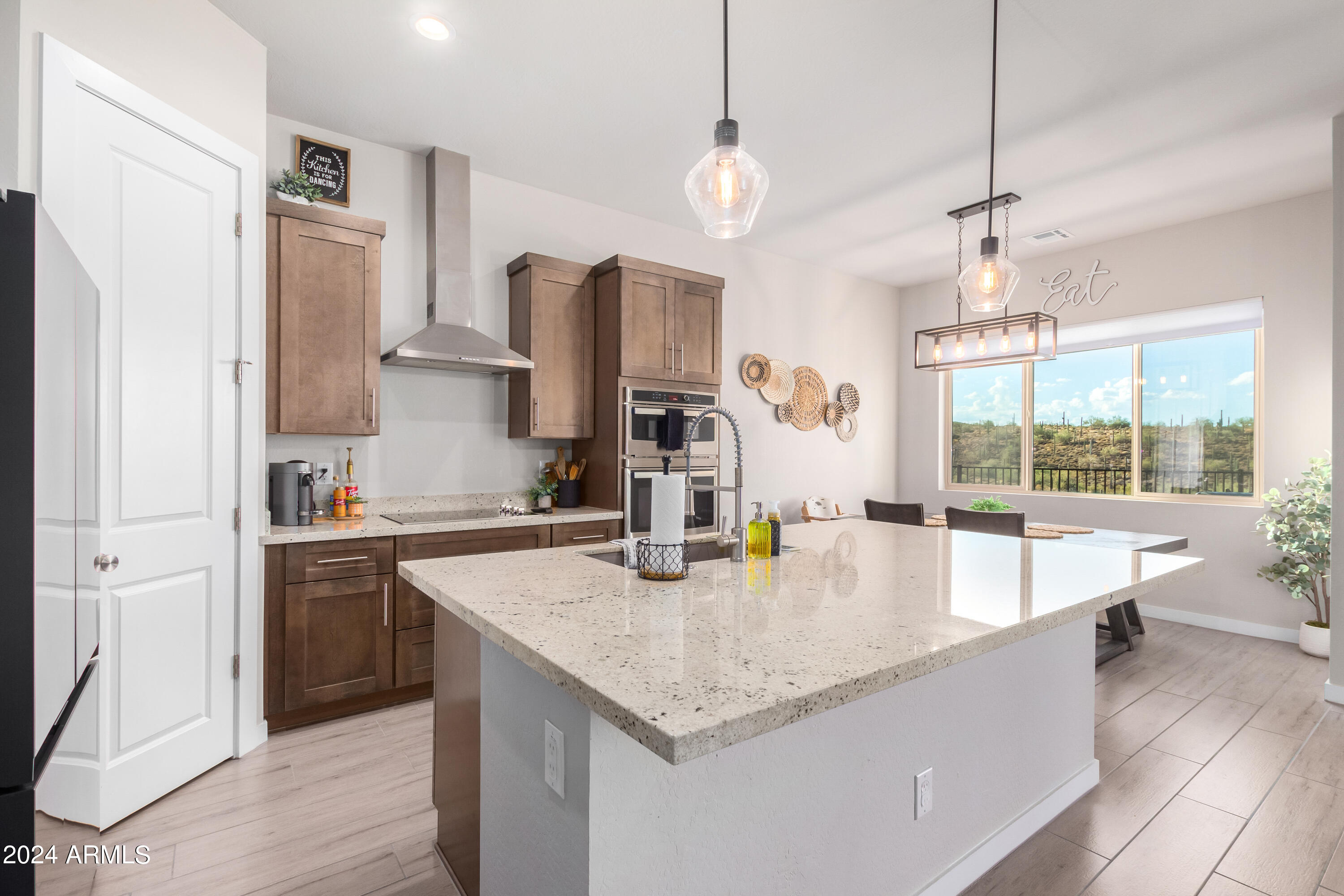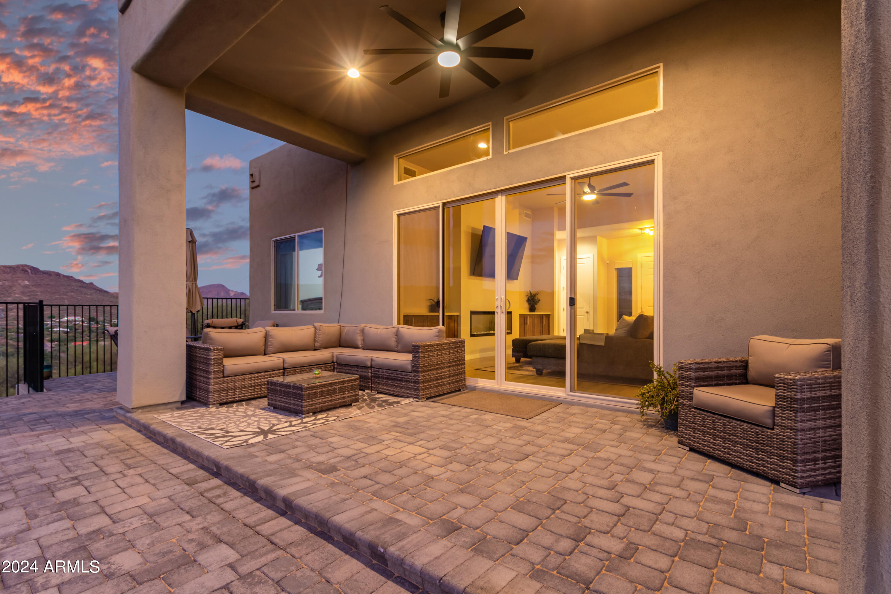 Explore this newly constructed Morgan Taylor built home nestled on a sprawling 1.13-acres bordering state land. Extra private lot, saguaro desert views for days, horse rights with room for stalls. Stone accents and a convenient extended 2-car garage. Incredible views from every room. Features wood-look tile floors and a soothing neutral palette. The great room, complete with an electric fireplace, offers a warm welcome. The kitchen boasts ample wood cabinetry, stainless steel appliances including wall ovens, a pantry, granite counters, and a center island illuminated by pendant lights above the breakfast bar. The primary suite is a serene retreat, highlighting large windows that frame the mountain views, a private bathroom with dual sinks, a soaking tub, and a walk-in closet. Must see! Outside, the paver patio provides a perfect backdrop for enjoying stunning sunsets or hosting lively barbecues. Make this tranquil haven yours today!