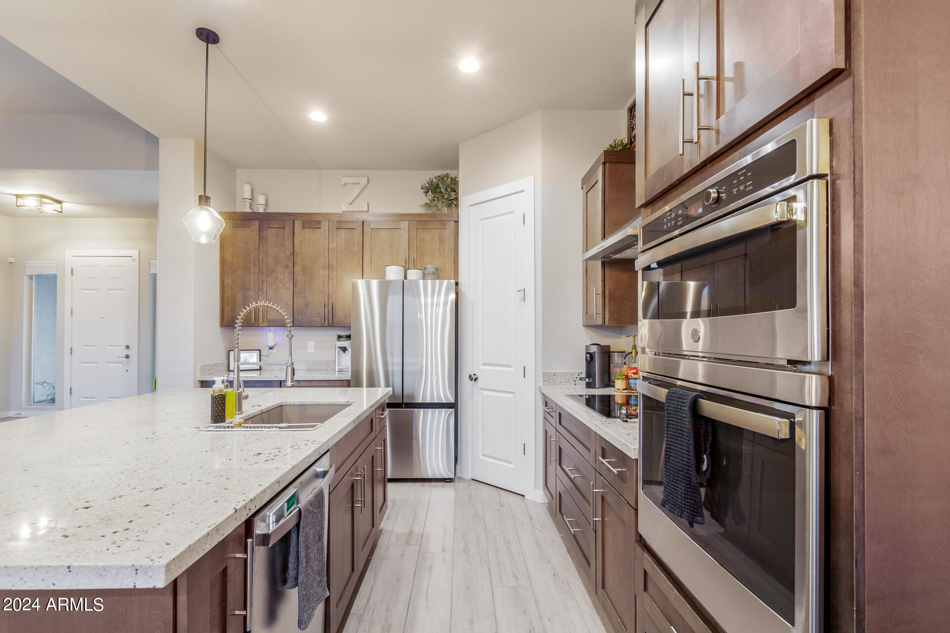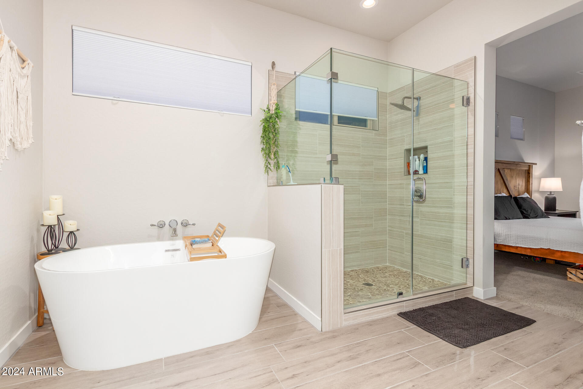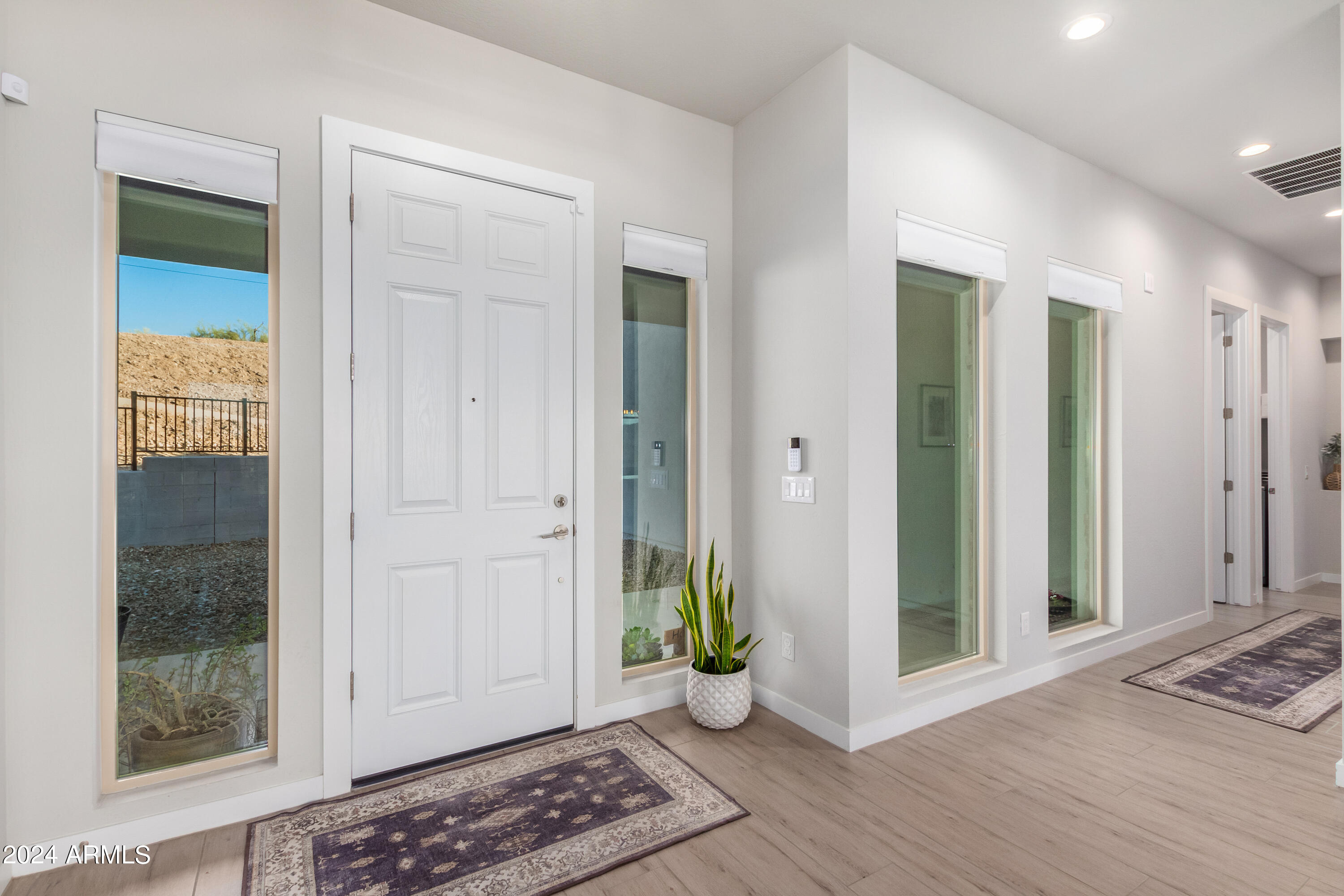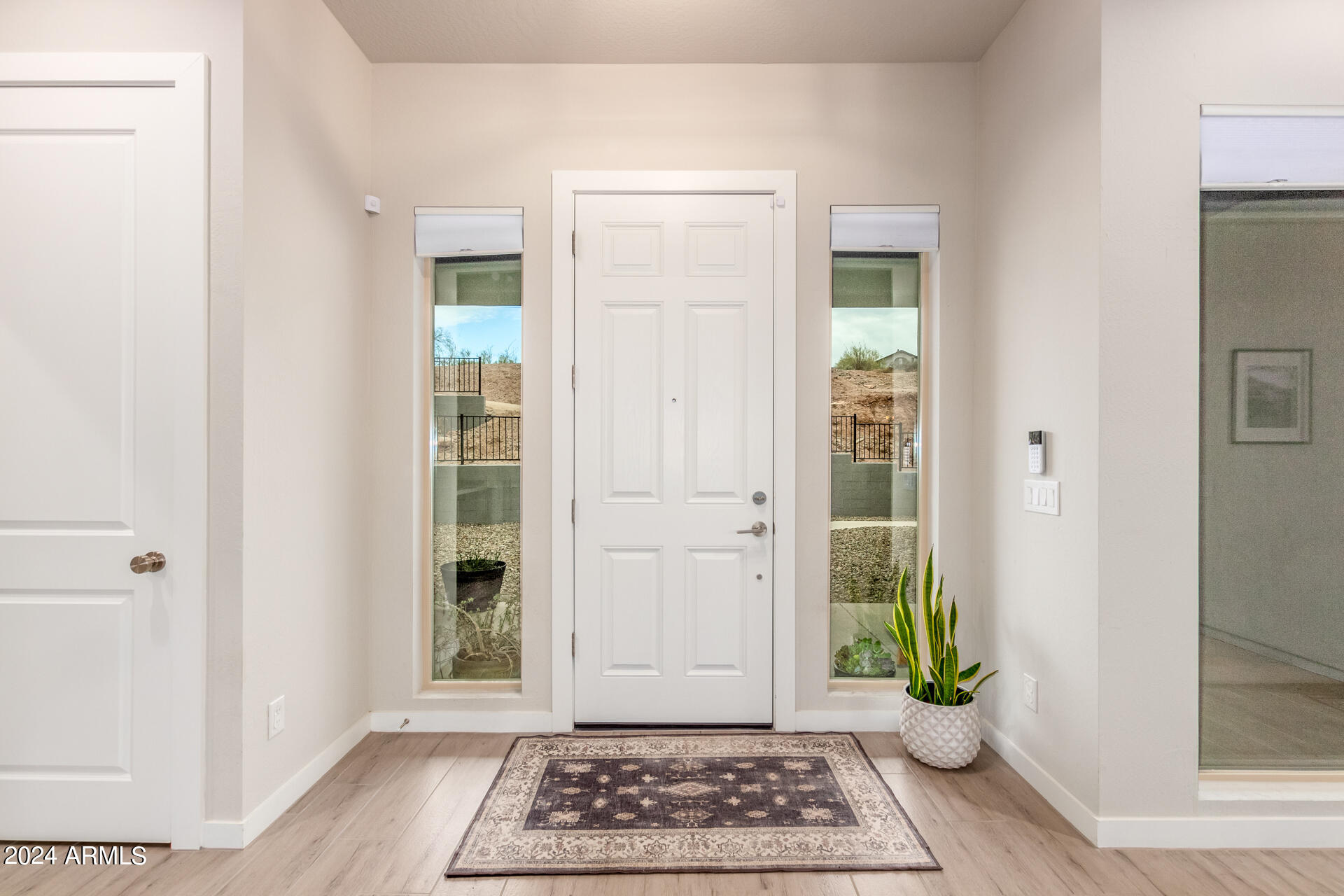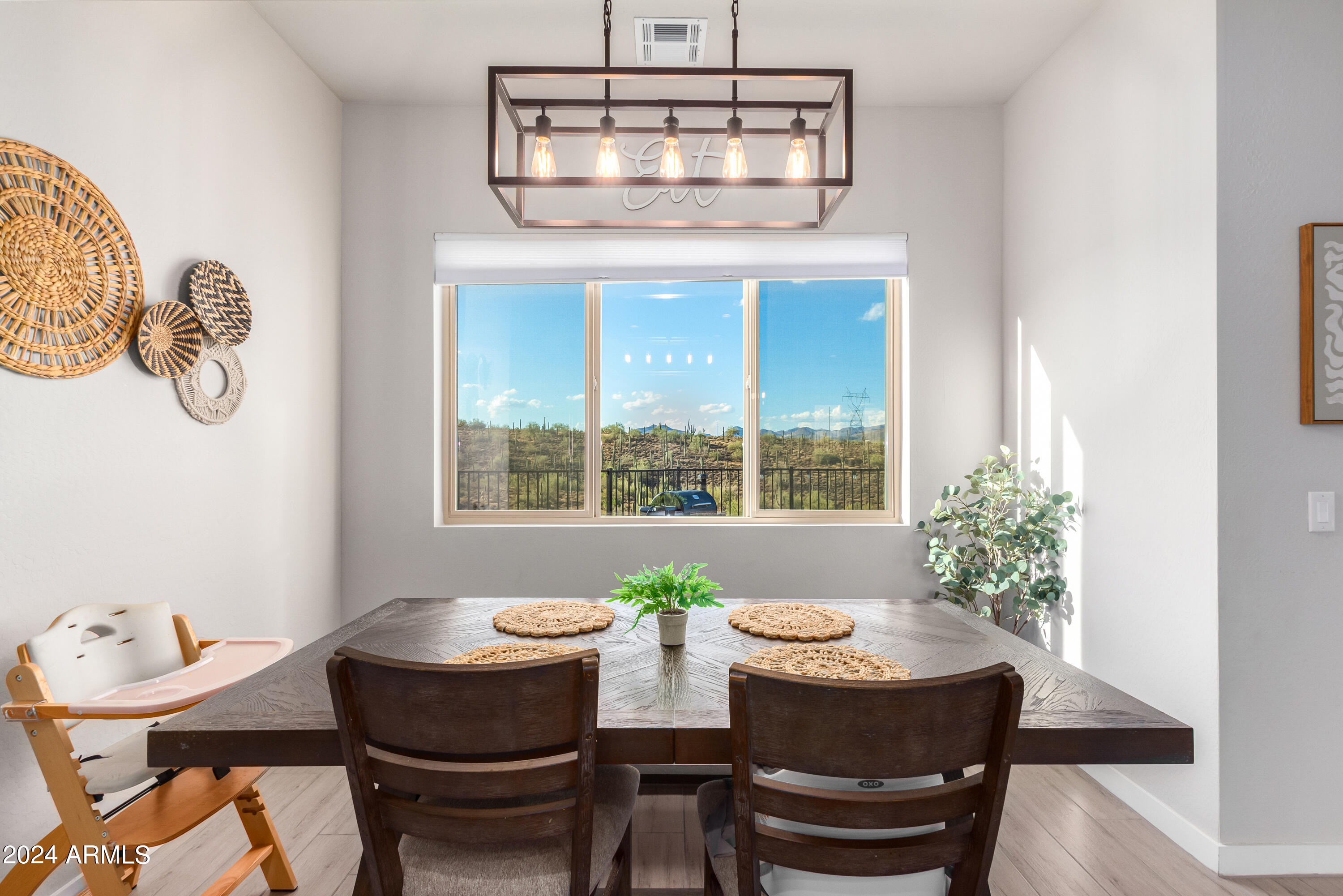 Explore this newly constructed Morgan Taylor built home nestled on a sprawling 1.13-acres bordering state land. Extra private lot, saguaro desert views for days, horse rights with room for stalls. Stone accents and a convenient extended 2-car garage. Incredible views from every room. Features wood-look tile floors and a soothing neutral palette. The great room, complete with an electric fireplace, offers a warm welcome. The kitchen boasts ample wood cabinetry, stainless steel appliances including wall ovens, a pantry, granite counters, and a center island illuminated by pendant lights above the breakfast bar. The primary suite is a serene retreat, highlighting large windows that frame the mountain views, a private bathroom with dual sinks, a soaking tub, and a walk-in closet. Must see! Outside, the paver patio provides a perfect backdrop for enjoying stunning sunsets or hosting lively barbecues. Make this tranquil haven yours today!