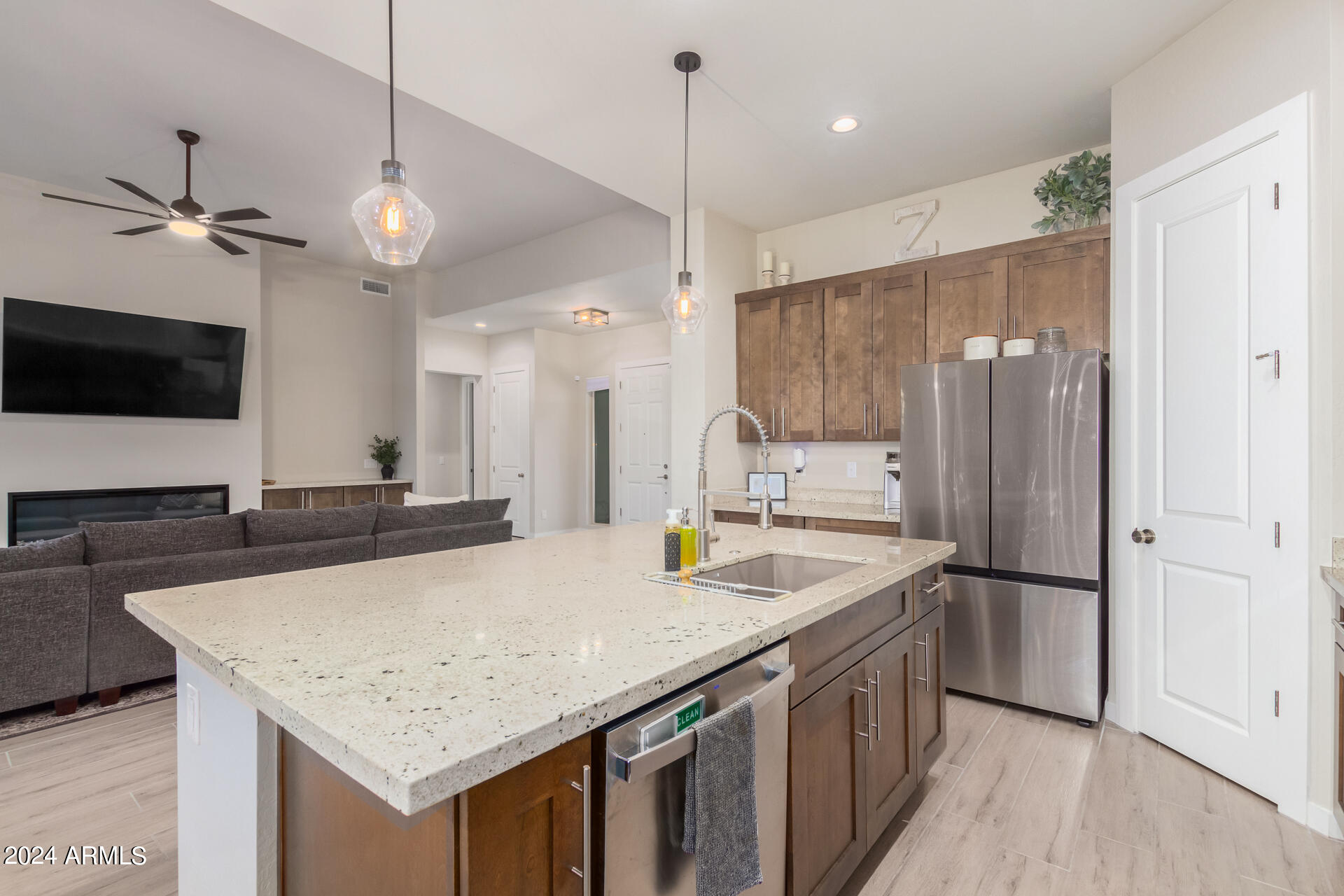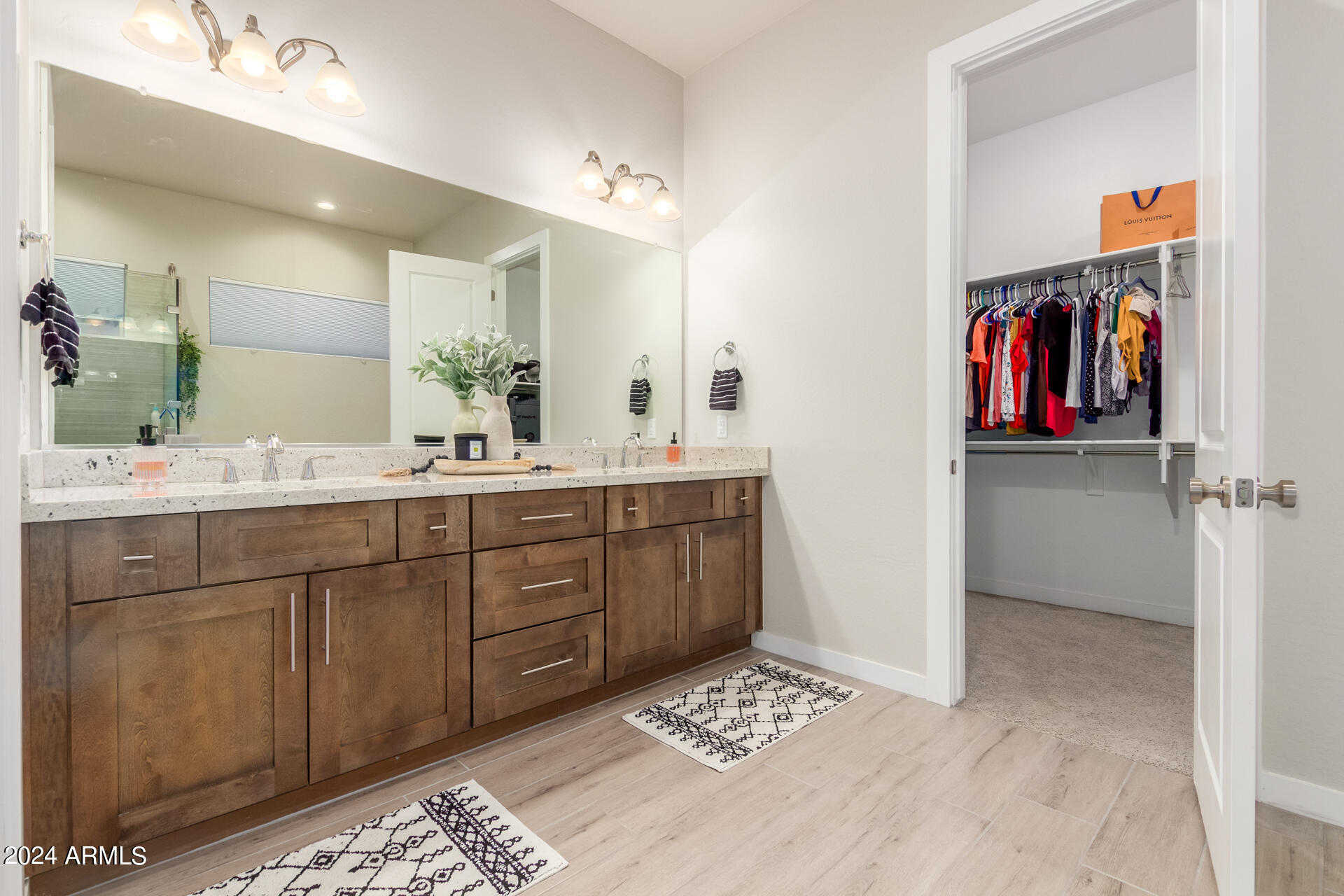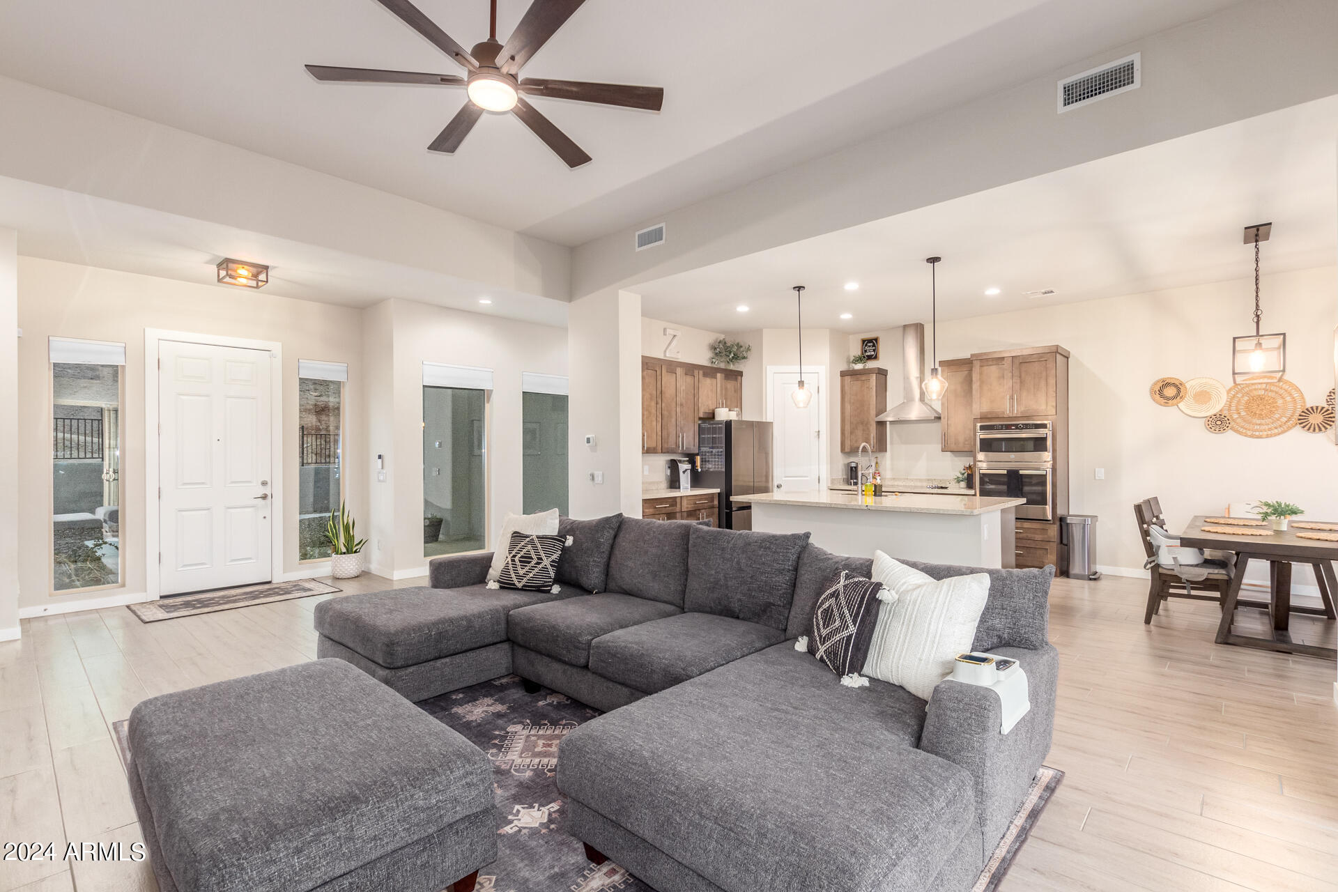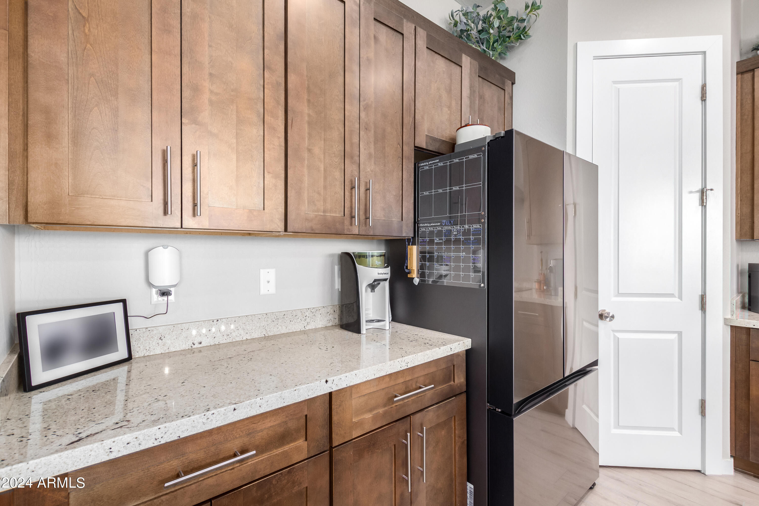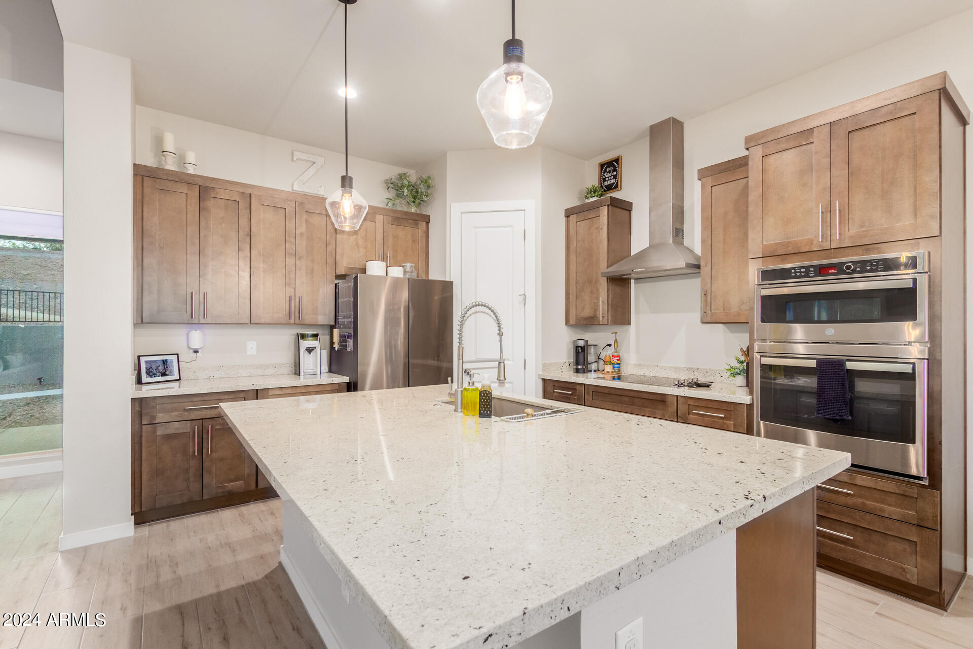 Explore this newly constructed Morgan Taylor built home nestled on a sprawling 1.13-acres bordering state land. Extra private lot, saguaro desert views for days, horse rights with room for stalls. Stone accents and a convenient extended 2-car garage. Incredible views from every room. Features wood-look tile floors and a soothing neutral palette. The great room, complete with an electric fireplace, offers a warm welcome. The kitchen boasts ample wood cabinetry, stainless steel appliances including wall ovens, a pantry, granite counters, and a center island illuminated by pendant lights above the breakfast bar. The primary suite is a serene retreat, highlighting large windows that frame the mountain views, a private bathroom with dual sinks, a soaking tub, and a walk-in closet. Must see! Outside, the paver patio provides a perfect backdrop for enjoying stunning sunsets or hosting lively barbecues. Make this tranquil haven yours today!