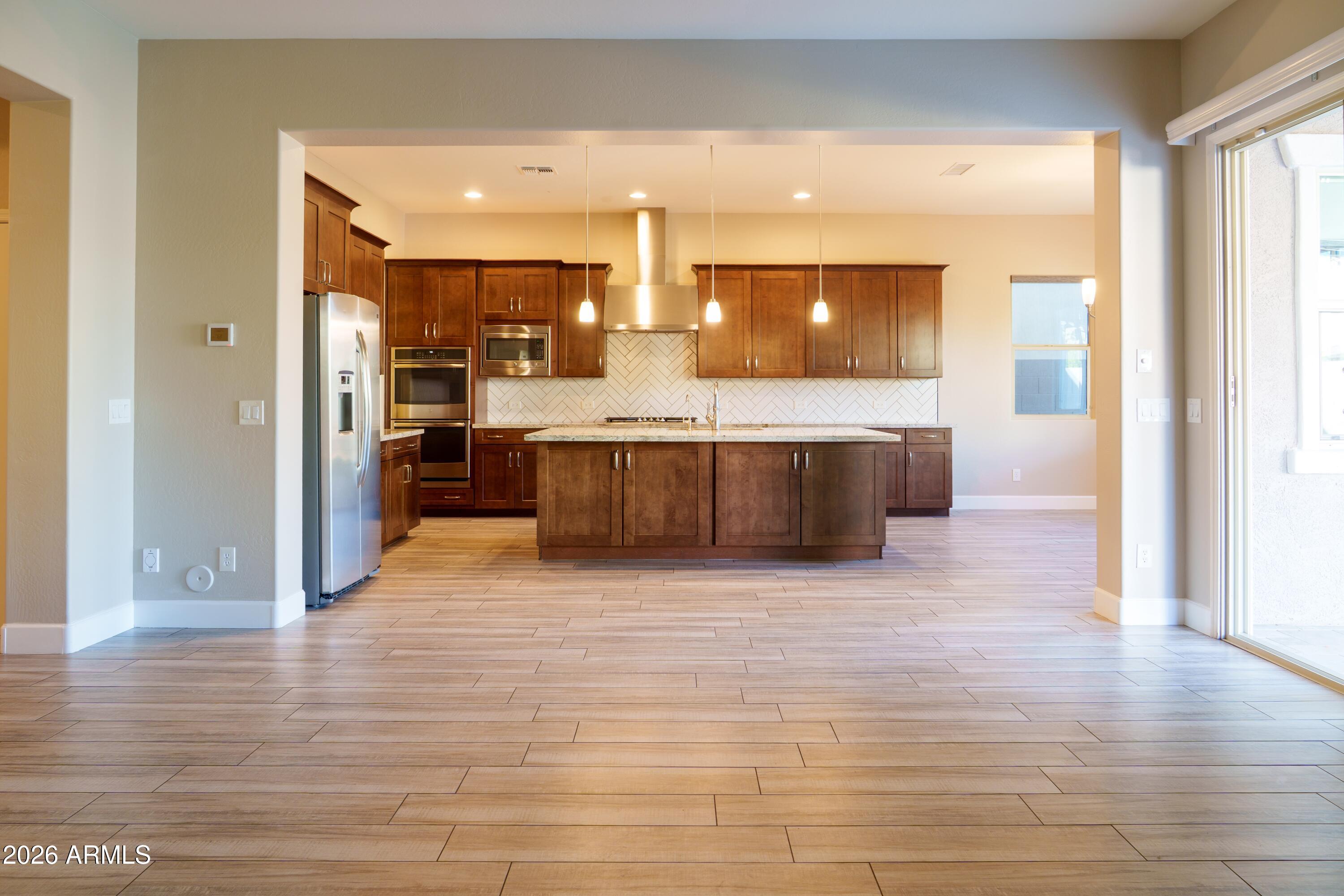 Beautiful home in the highly desirable Eastmark area of Mesa!This thoughtfully designed property features an open-concept floor plan filled with natural light, perfect for everyday living and entertaining. Recently refreshed with new carpet and fresh interior paint (2026).The kitchen offers modern cabinetry, quality finishes, a large island, stainless steel appliances, gas cooktop, and wall ovens. This property includes 4 bedrooms,3 bathrooms, a downstairs office,and a tandem 3-car garage. The primary suite features a walk-in rain shower and a spacious walk-in closet with direct laundry access. Enjoy low-maintenance landscaping and a private backyard with travertine tile, gas fire pit, and an extended pergola patio. Prime location near parks, schools, shopping, dining, and freeway access.