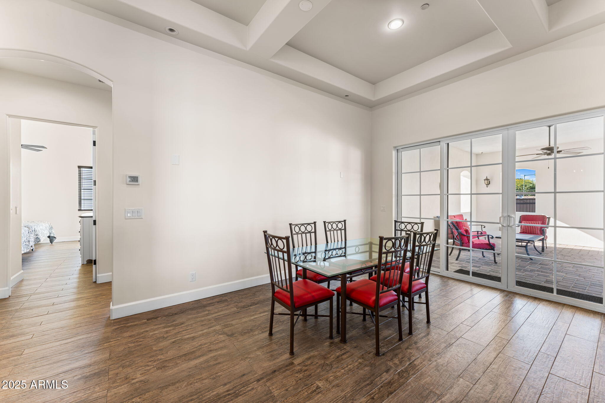 A rare opportunity, situated on over an acre within Scottsdale's sought-after Cactus Corridor, this gated custom estate offers over 6,300 sq. ft. of total living space across two homes. The main residence features six bedrooms and 4.5 baths, showcasing exquisite craftsmanship throughout - from the chef's kitchen with quartzite countertops, rich wood cabinetry, and Thermador appliances, to the coffered ceilings and hardwood floors that bring warmth and sophistication to every room. The inviting great room highlights a beautiful fireplace and expansive sliding doors that open to the entertainer's backyard.