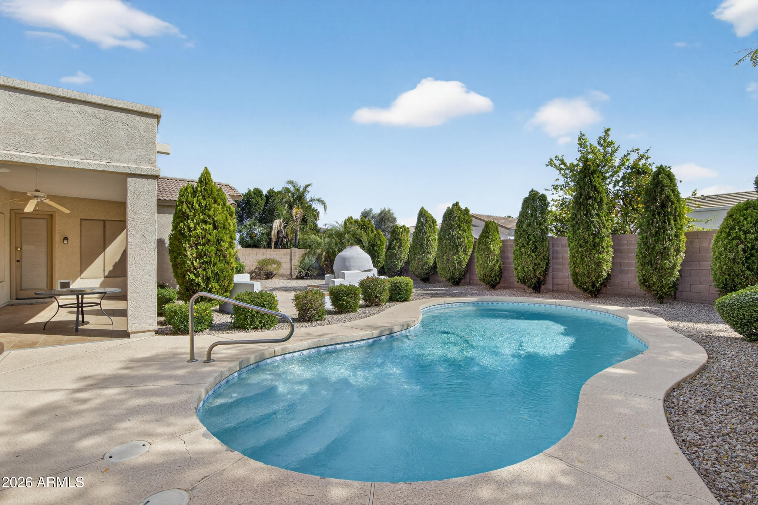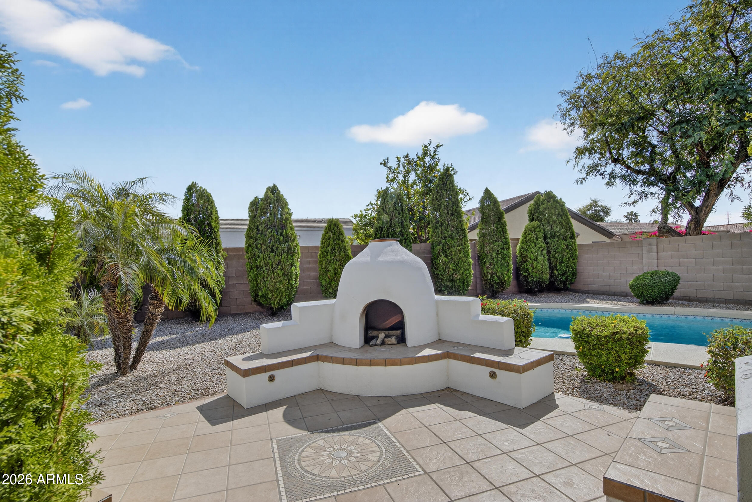 Step outside to an extended covered patio that provides a great space to relax or entertain beside the outdoor fireplace and crystal clear private pool.