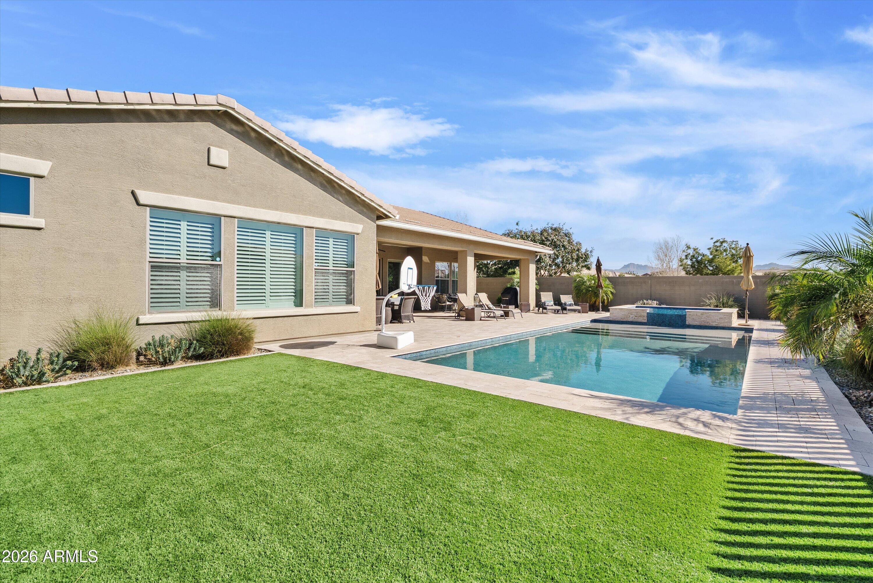 Step outside to your resort-style backyard retreat, complete with a pool, jacuzzi, and ample space to entertain or unwind. Whether hosting gatherings or enjoying quiet moments, this outdoor space was built for making memories.