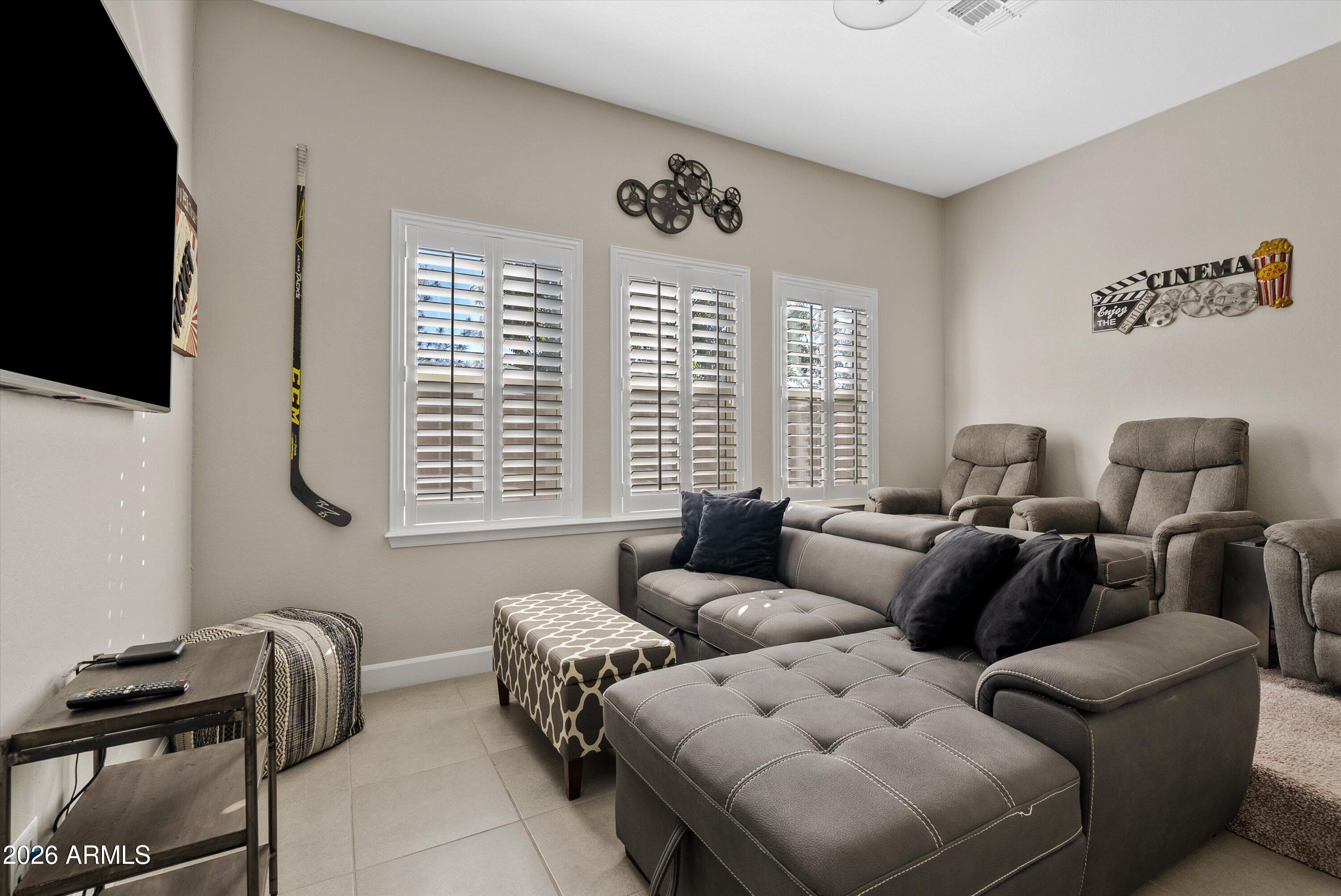 Designed with comfort and flexibility in mind, the home features two private en suites. Expansive living spaces flow effortlessly into a dedicated media room, creating the perfect setting for movie nights, game days, or relaxing evenings at home.