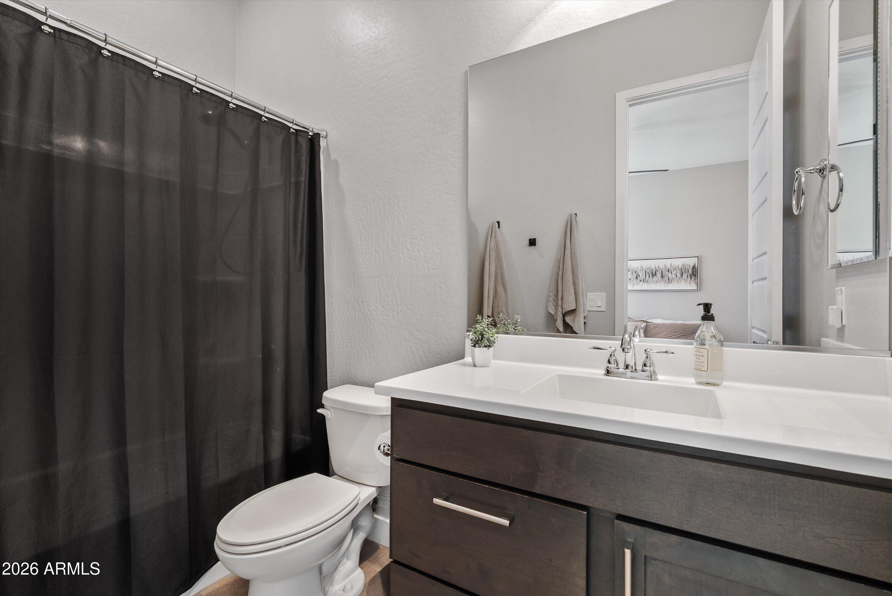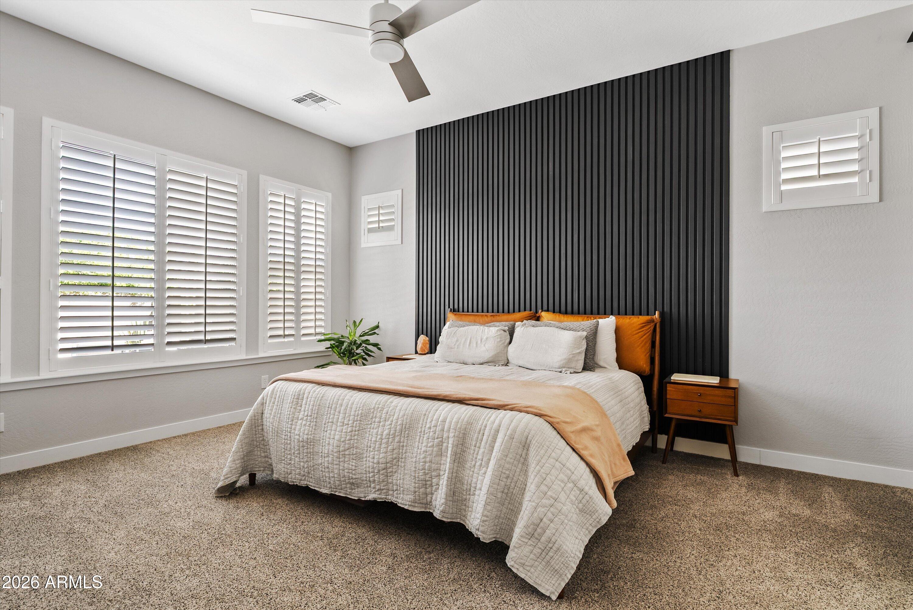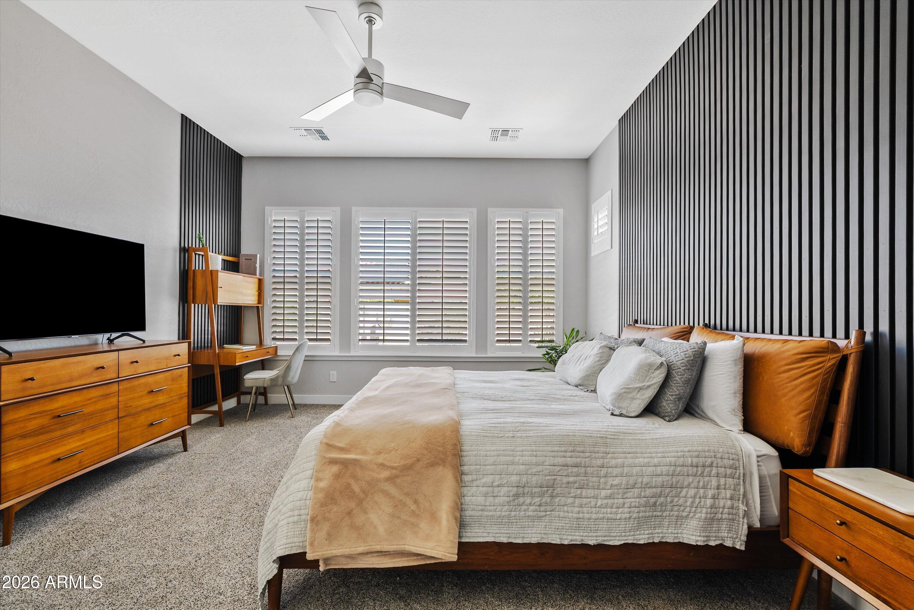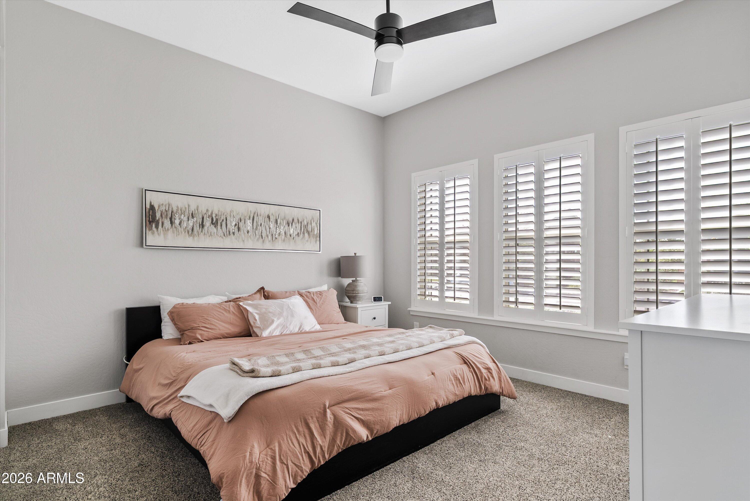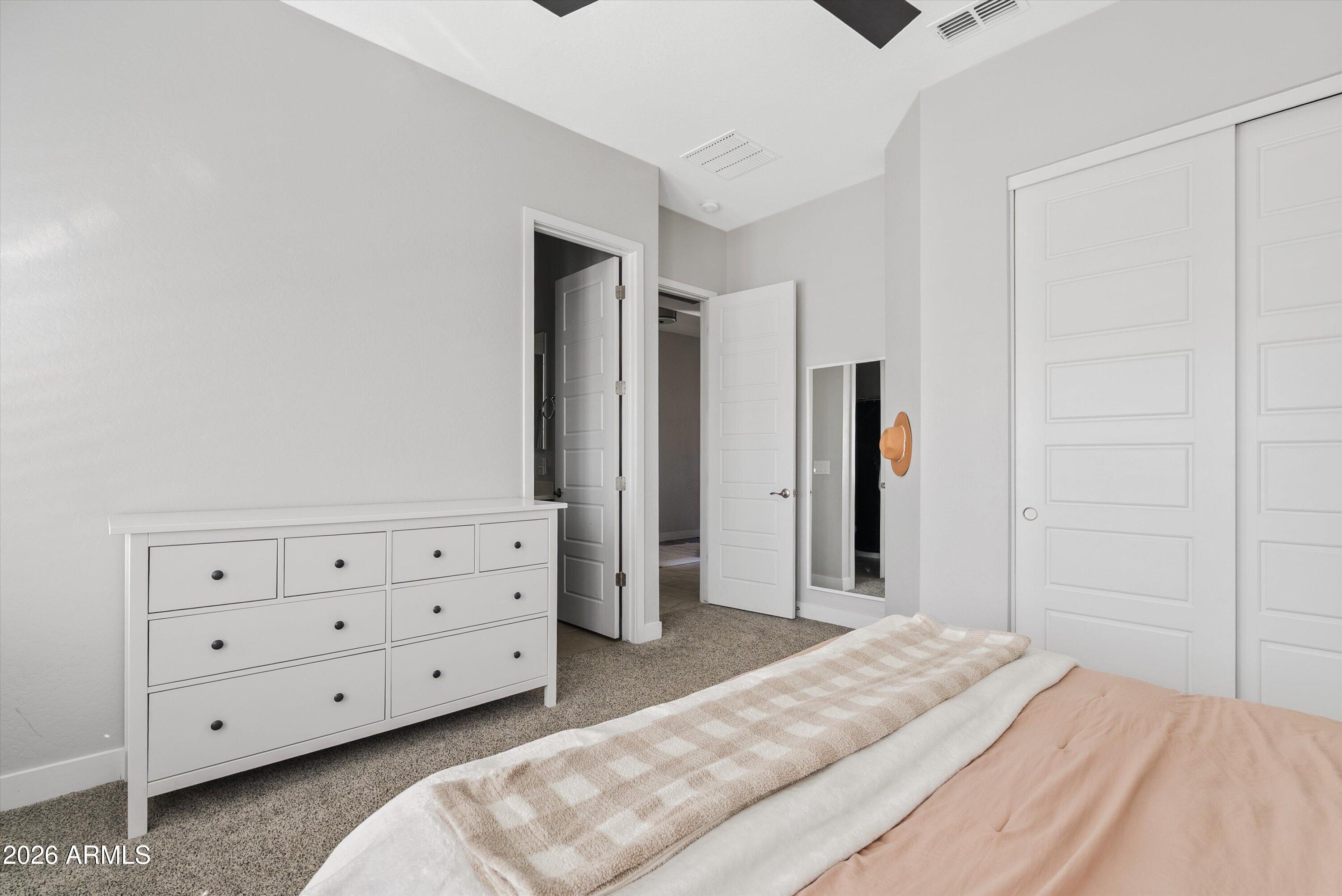 Located in the exclusive gated David Weekley community within Eastmark, this exceptional corner lot home offers luxury, privacy, and thoughtful design with stunning mountain views. The moment you drive through the gates, it feels like you've left Eastmark entirely. Wider streets, larger lots, and all single-story homes create a quiet, elevated experience you won't find anywhere else in the community. Flooded with natural light, the open-concept layout creates a bright, inviting atmosphere.