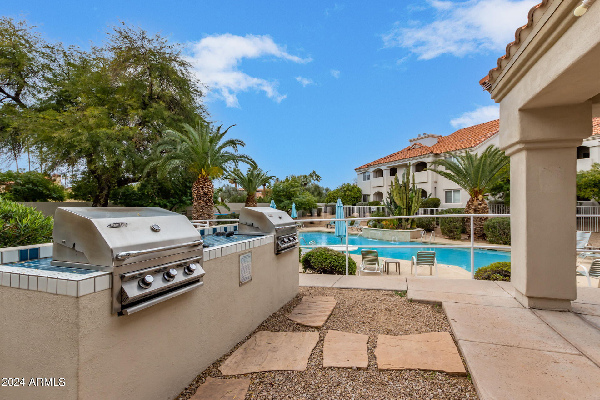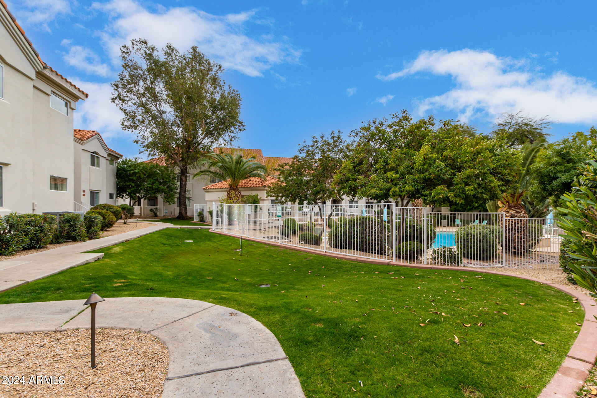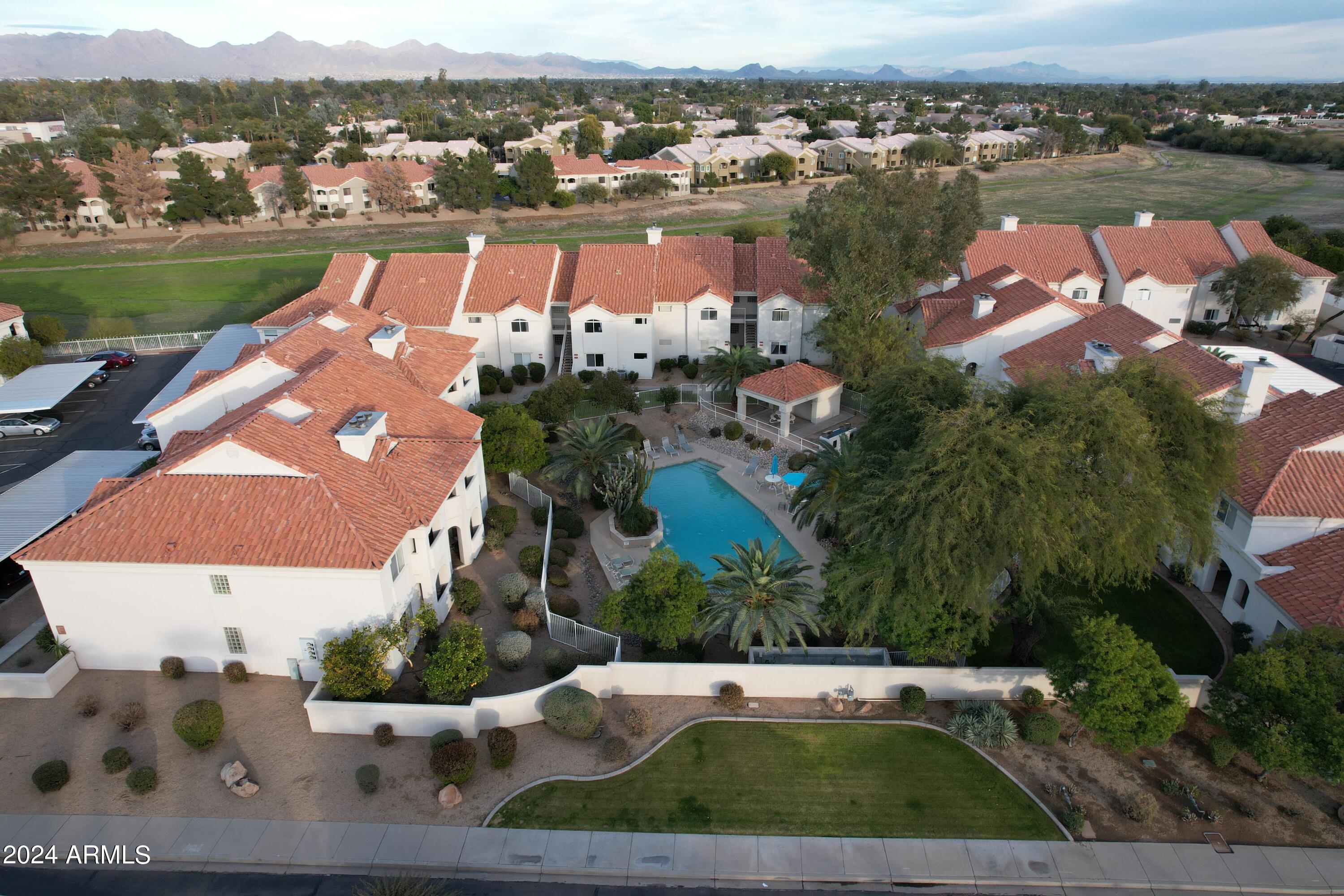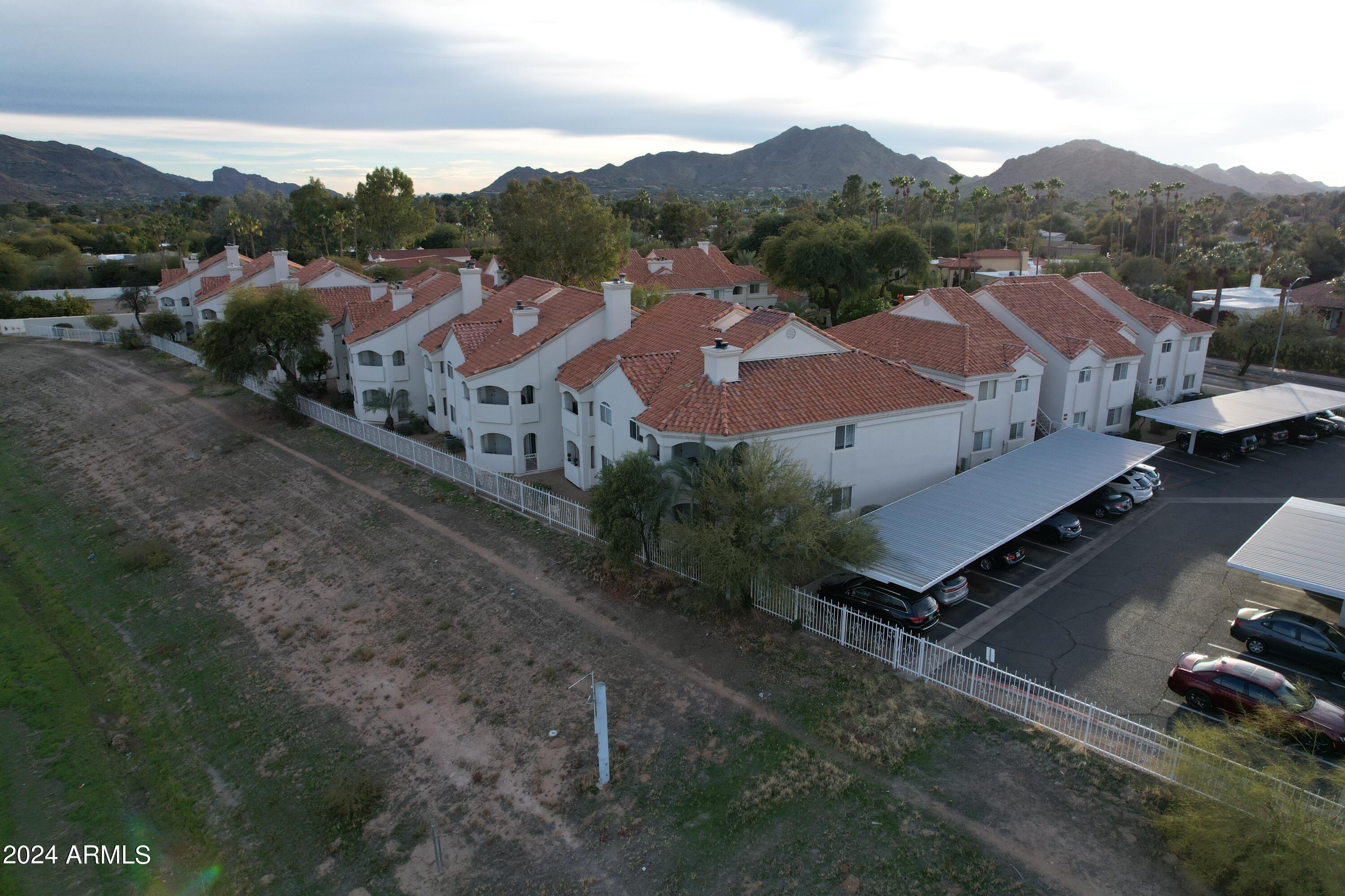 Welcome to Marbeya! A well kept, quiet, perfectly located subdivision in the luxurious 85253 zip code of Paradise Valley! If you are looking for a permanent home or home away from home look no further! This unit is located deep inside the gated subdivision just steps away from the community pool, spa, and bbq's. End unit so only one shared wall and a patio overlooking the Indian Bend wash. Step into this spacious unit and feel at home immediately with its warm custom color palette, soaring vaulted ceilings, and exquisite open floor plan. Master and guest quarters are on opposite ends with kitchen and living area in the middle so privacy when you need it but social space when you want it. The kitchen has been updated with SS appliances and the entire unit received a fresh coat of paint recently. In unit laundry on the large patio that faces straight east so you can sip your morning coffee and watch the sunrise over the McDowell mountains. Take in all the best dining, entertainment, golfing, hiking, shopping and so much more this area has to offer. With easy access to the 51 and 101 you can be anywhere in minutes. Looking for your next airbnb/vrbo? This subdivision has a proven track record with units renting from $200 to $500 a night depending on local events and time of year. Current CC&R's have a minimum 2 night stay. Seller is willing to sell fully furnished. Don't wait on this amazing unit in the perfect location."