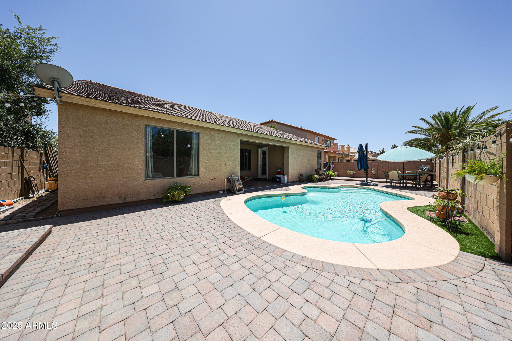 Buyer could not perform!!! Best Price in the Neighborhood! This stylish and energy-efficient single-story home delivers the space, comfort, and updates today's modern buyer is looking for. With 2,324 sq ft, you'll enjoy 4 spacious bedrooms plus a versatile den, perfect for a home office, gym, or easily a 5th bedroom. The open-concept design features vaulted ceilings, abundant natural light, and a kitchen at the heart of the home, complete with a center island, granite counter tops, ample storage, and a cozy breakfast nook for casual dining or weekend brunch.Step outside into your private backyard retreat with a sparkling pool, covered patio, and low-maintenance landscaping--a perfect space for relaxing, entertaining, or soaking in the Arizona sun. Enjoy long-term utility savings with fully owned solar panels , smart home potential, and a layout that fits your lifestyle whether that's working remotely, hosting gatherings, or simply enjoying peaceful nights in.