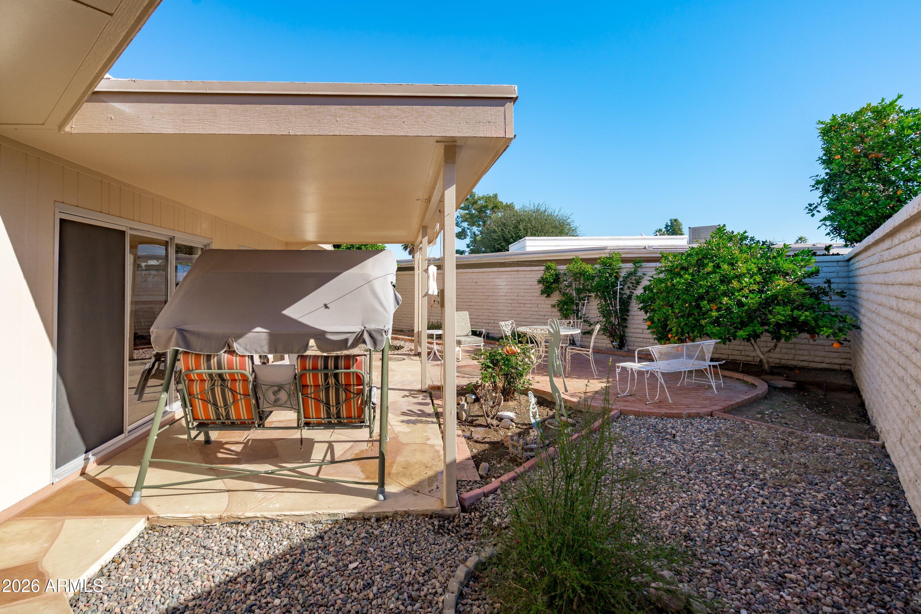 Located in Sun City, this well-designed home offers excellent exposure and a functional, spacious layout. Interior features include wood flooring, tile floors, and vaulted ceilings that create a bright, open feel. The home includes a loft-style space and large bedrooms, offering flexibility for guests, hobbies, or a home office. The kitchen features refinished cabinets and a true eat-in dining area with ample space for everyday living. Enjoy outdoor relaxation on the private patio, while the wood exterior adds charm and character. Additional highlights include a 2.5-car golf cart garage with off-the-street storage. Conveniently located near Sun City recreation centers, golf, shopping, and dining.
