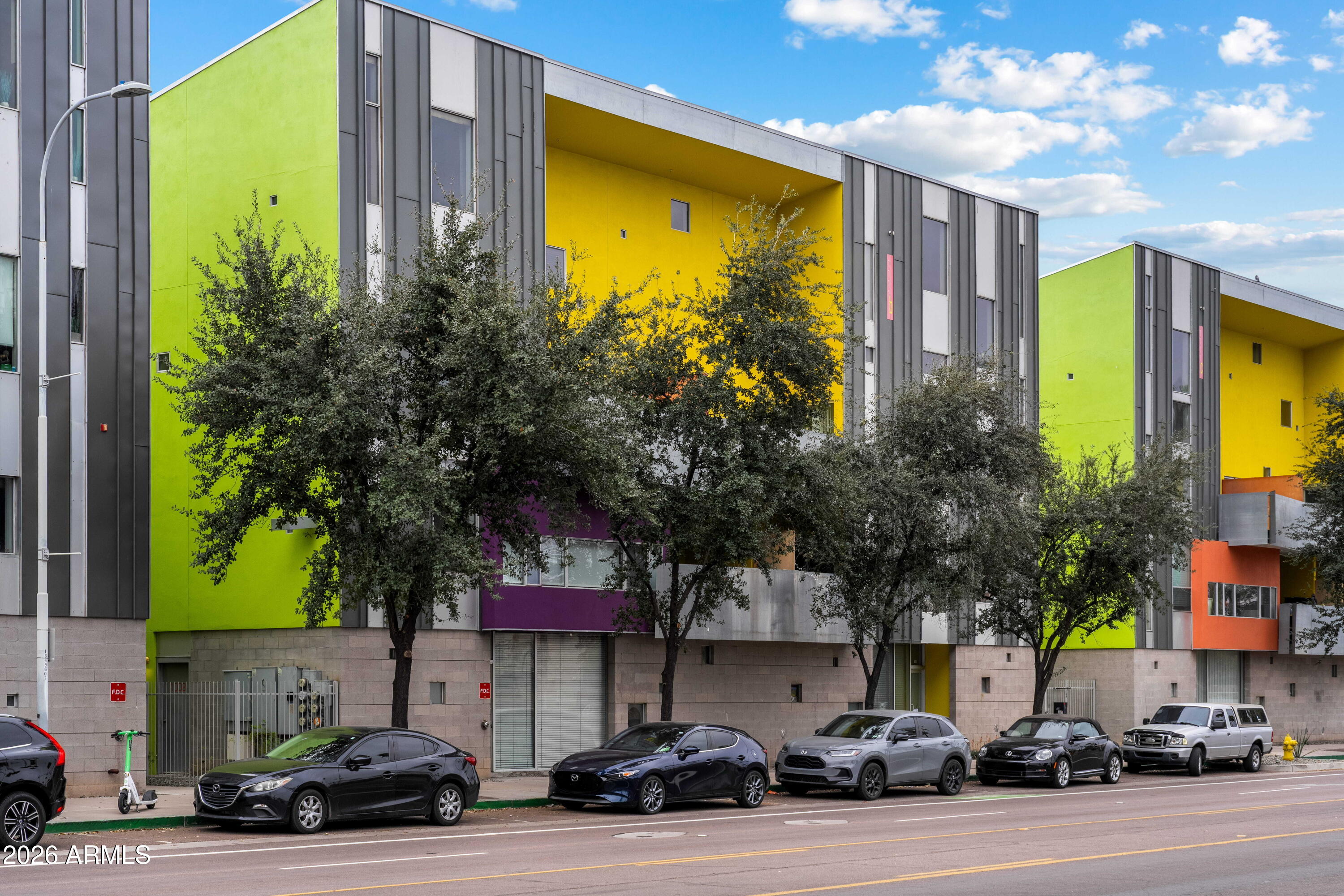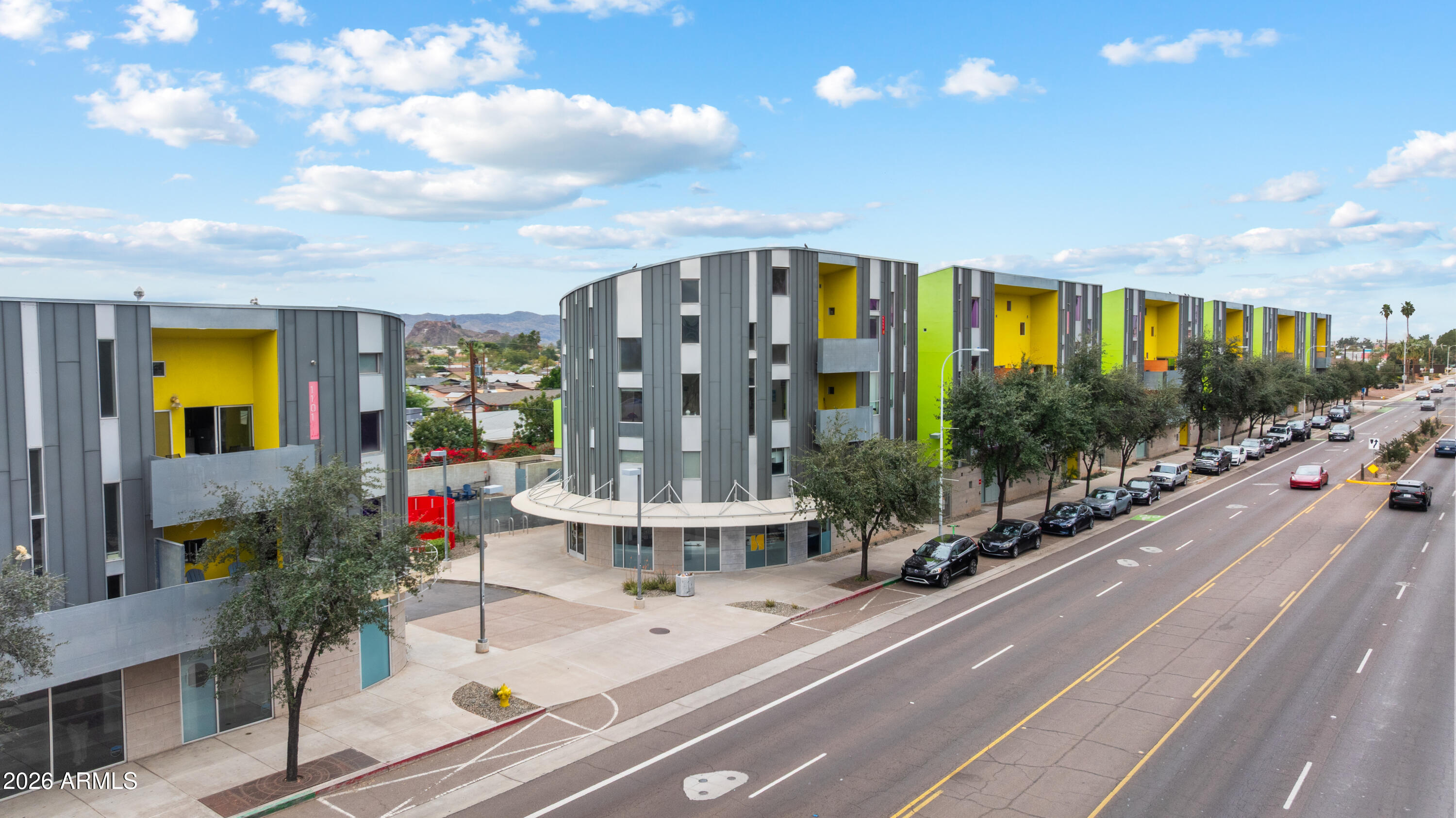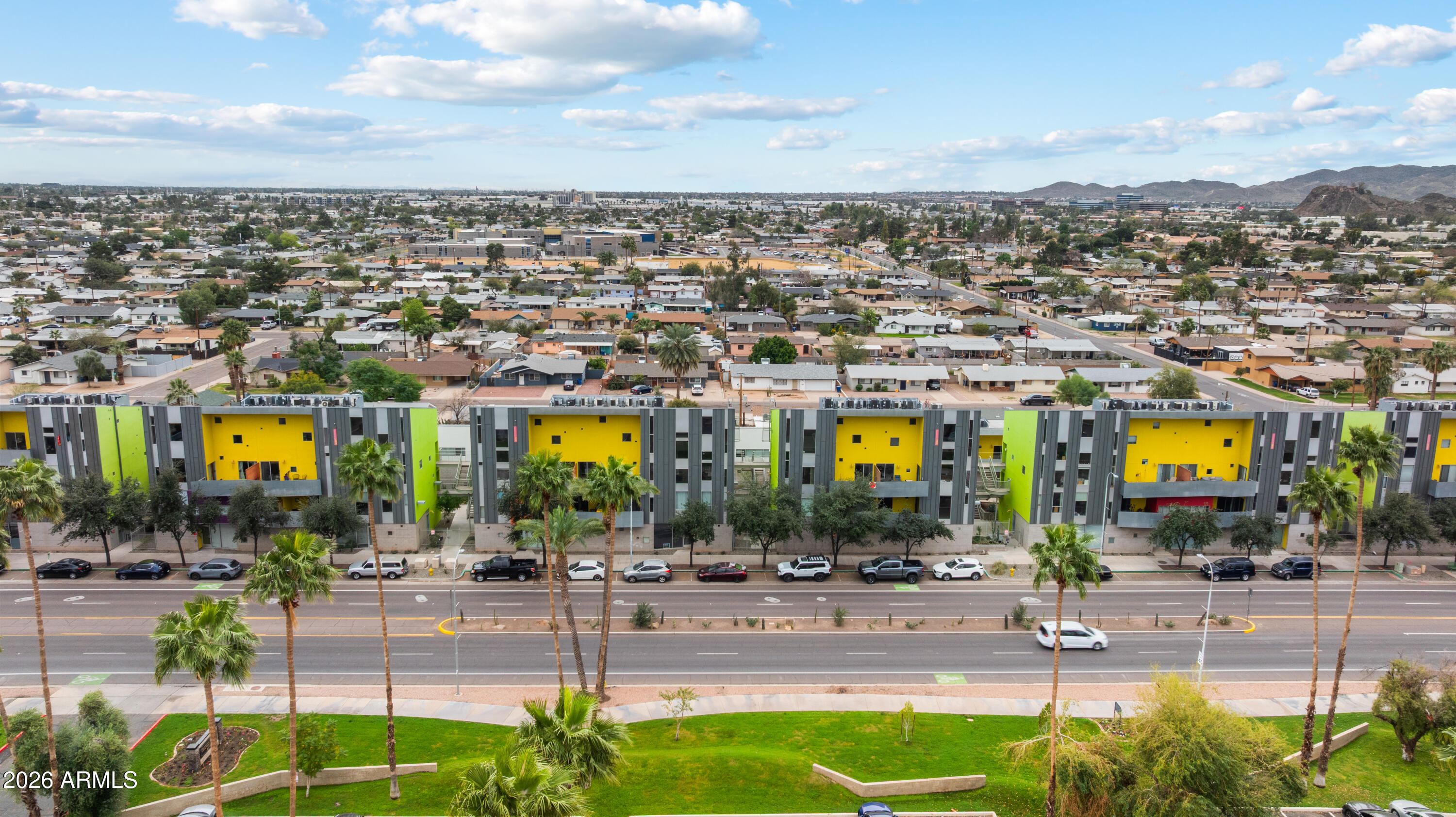 MidCentury Modern townhouse in a gated Tempe community designed by renowned architect Will Bruder. This light-filled interior unit features ground-floor entry with a full bedroom and bath downstairs, plus an open loft and spacious primary en-suite upstairs. No upstairs neighbor. Private outdoor patio just steps from the pool, spa, and fitness center. Chic kitchen and bathrooms reflect classic MCM design. Includes underground parking, storage, and a 1-year-old A/C. HOA covers water, sewer, trash, roof repair/replacement, and common areas. Near ASU, Sky Harbor, Tempe Town Lake, Mesa Riverview, and Cubs Spring Training. Ideal lock-and-leave or investment opportunity with architectural character and walkable convenience.