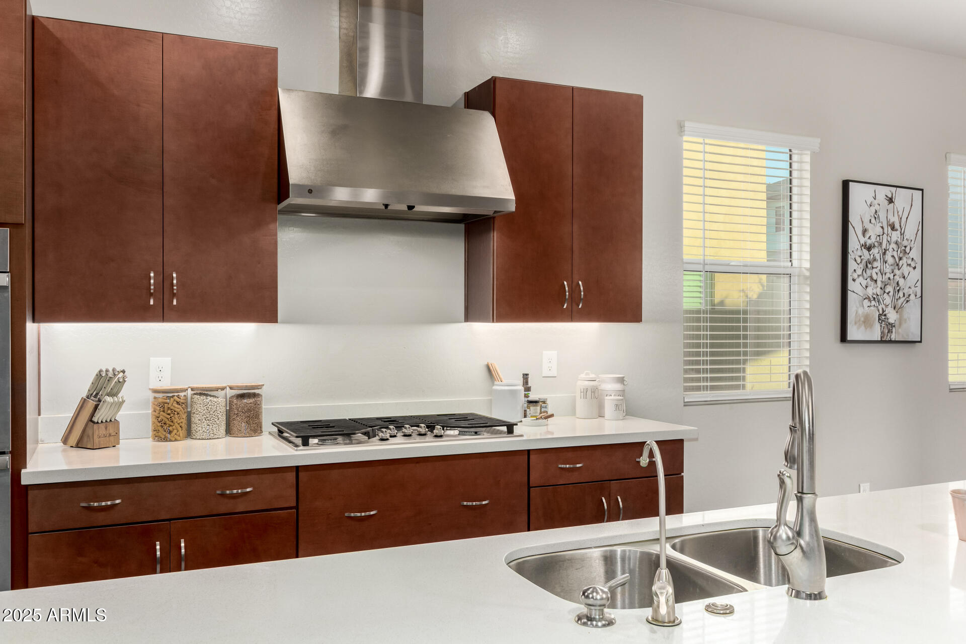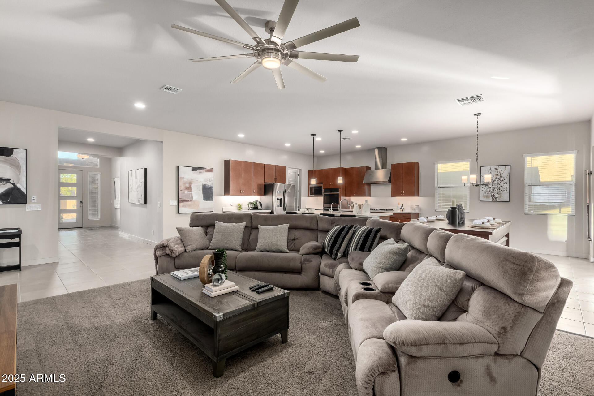 Stunning single-level home in a gated community near South Mountain offering the rare combination of newer construction, a true Next Gen suite, a private pool, and incredible mountain views. The bright open-concept layout is ideal for everyday living and entertaining, featuring a chef's kitchen with quartz countertops, stainless appliances, a large island with breakfast bar, abundant cabinetry, and a walk-in pantry. A separate den with double doors provides excellent flex space for an office or media room. The standout feature is the Next Gen suite, perfect for multi-generational living or extended guests, with a full-size fridge, sink, microwave, dishwasher, and plenty of cabinets and counter space creating a private retreat with amazing versatility. All framed by gorgeous mountain views living in the backyard oasis with a covered patio and sparkling pool, all framed by South Mountain views.