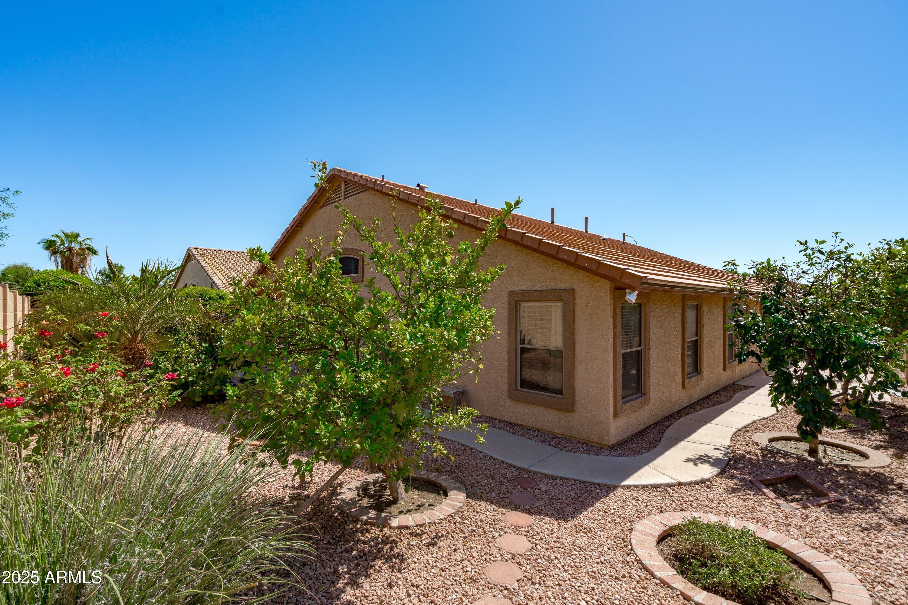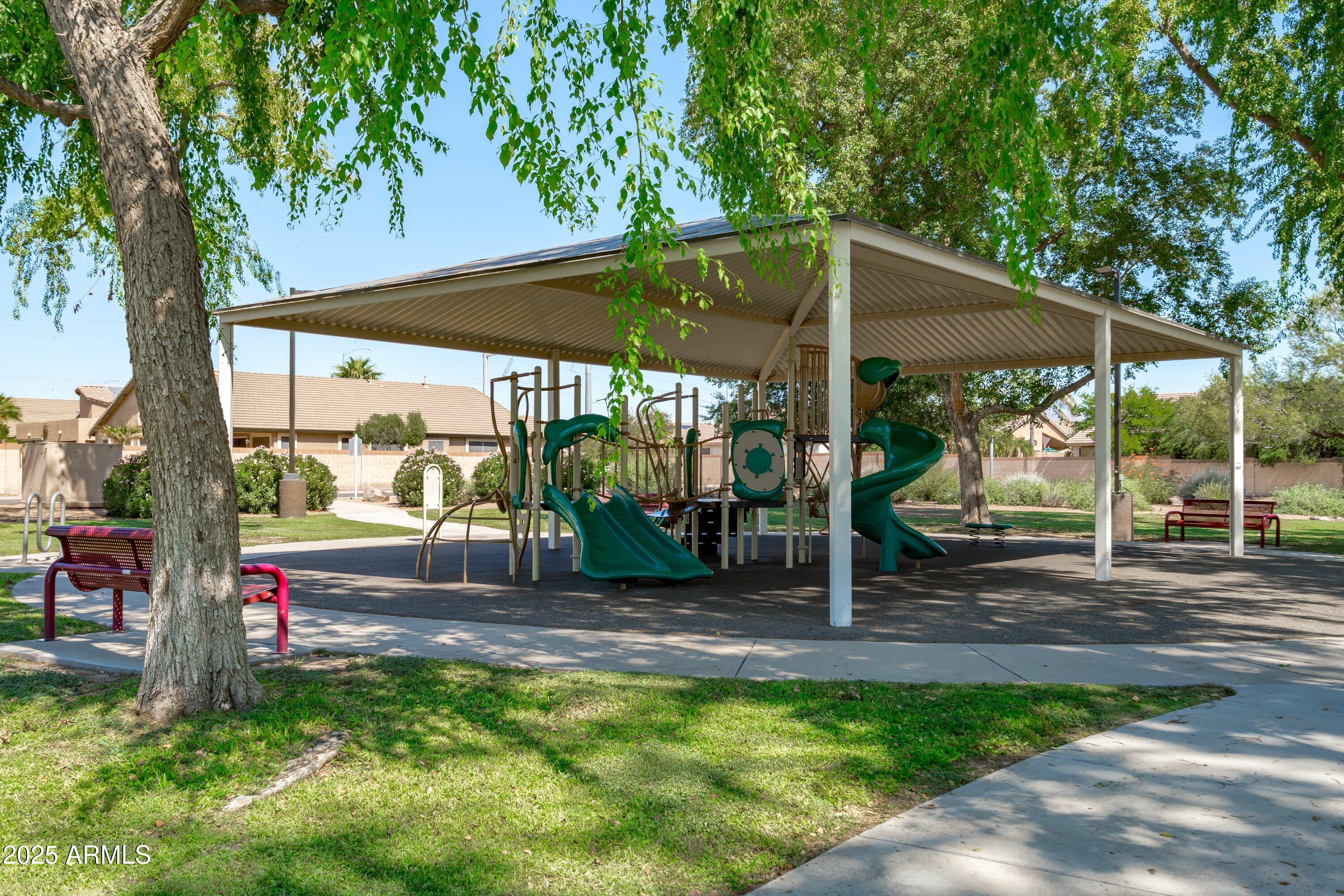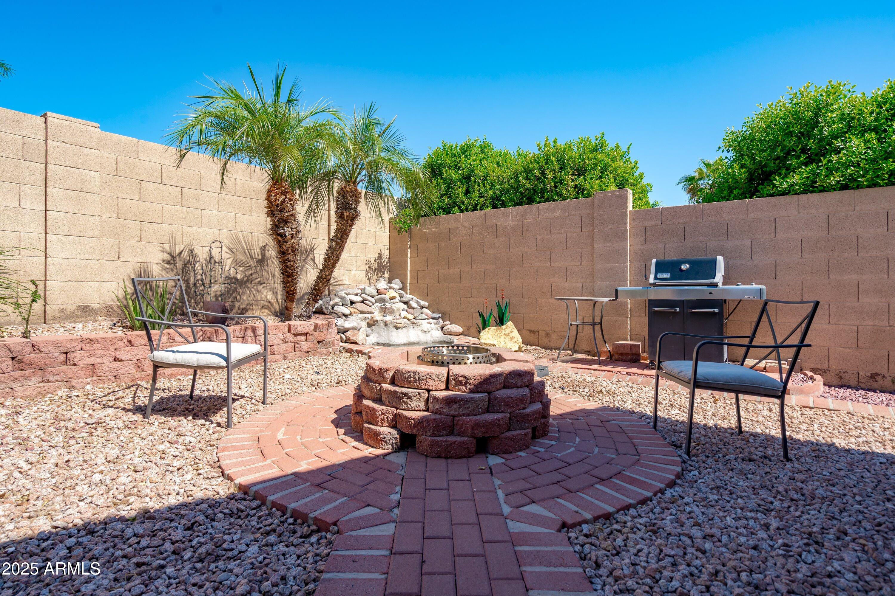 This stunning 4-bedroom, 2-bath residence in the Gilbert school system has vaulted ceilings, a 3-car garage, RV gate, and a welcoming front porch with north/south exposure. It offers peace of mind with a new roof and newer HVAC units. The inviting eat-in kitchen provides the perfect gathering place with ample wood cabinetry, sleek SS appliances, a large pantry, and an island with a breakfast bar for casual dining. The family room has sliding glass doors leading to the backyard for seamless indoor-outdoor living with a covered patio for al fresco dining, a water feature and a cozy firepit perfect for evenings under the stars. The RV gate has a dedicated pad perfect for recreational toys or a boat. Designed for comfort and convenience, this property combines thoughtful updates with practical features that make it a standout choice.