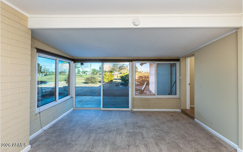 Welcome to this beautifully refreshed single-story home in the heart of Sun City, perfectly positioned directly on the golf course--a true golfer's dream. Featuring two bedrooms and two bathrooms, this home has been thoughtfully updated with new carpet and fresh interior paint throughout, creating a light, clean, and move-in-ready feel. Enjoy seamless indoor-outdoor living with an enclosed Arizona sunroom, ideal for morning coffee, entertaining, or simply taking in the breathtaking golf course views and unforgettable sunsets. The low-maintenance yard allows you to spend more time enjoying life, while outdoor firepits set the stage for cozy winter evenings under the stars. A truly rare and standout feature of this home is the attached live-in care casita--the only property of it's kind... complete with a private entrance, kitchenette, and its own bathroom. Perfect for live-in care, extended family, guests, or anyone seeking privacy while remaining close. Residents of Sun City enjoy an exceptional active-adult lifestyle with access to clubhouses, pools, spa/jacuzzi, tennis courts, and miles of biking and walking paths, plus countless social and recreational opportunities. This is a one-of-a-kind opportunity combining comfort, privacy, and resort-style living in one of Sun City's most desirable settings.