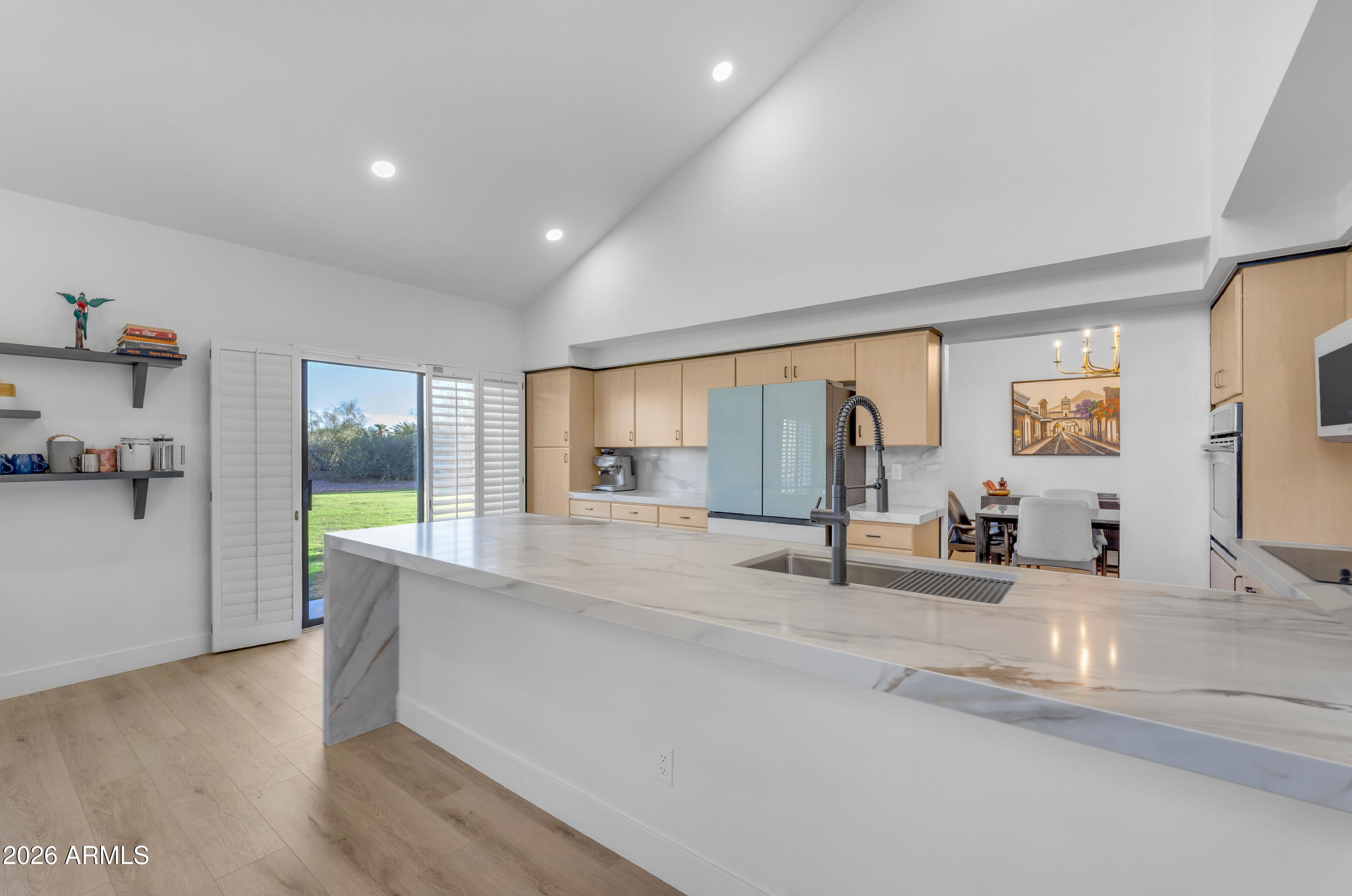 Outdoors, the extended covered patio with skylight overlooks the sprawling lot, offering endless possibilities to create your dream backyard oasis. With no HOA, this property offers rare flexibility in Scottsdale. Build a guest casita, a pool, a sport court, add additional structures, or store all your toys with ease. This level of freedom, paired with RV parking and generous lot size, is increasingly hard to find in a prime spot.