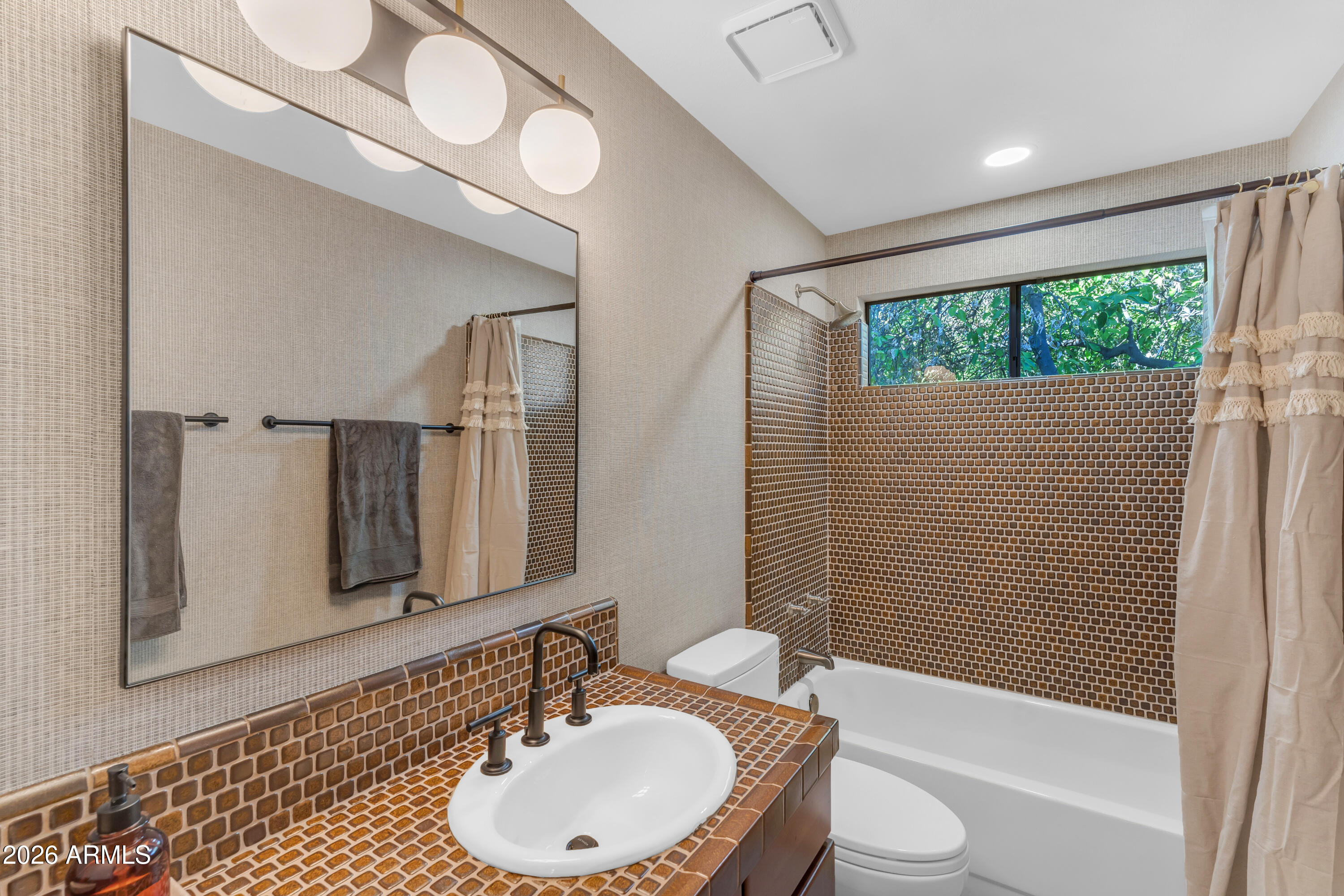 Nestled on an expansive cul de sac lot in the coveted Buenavante neighborhood of Scottsdale, this beautifully remodeled 3 bedroom, 2.5 bathroom residence delivers the perfect balance of warmth, sophistication, and modern comfort, all framed by mountain views, lush surroundings, and 14 foot ficus hedges that create exceptional backyard privacy on this already oversized lot. From the moment you arrive, mature green landscaping, shade trees, and a welcoming front patio set the tone for relaxed mornings and easy neighborhood connection.