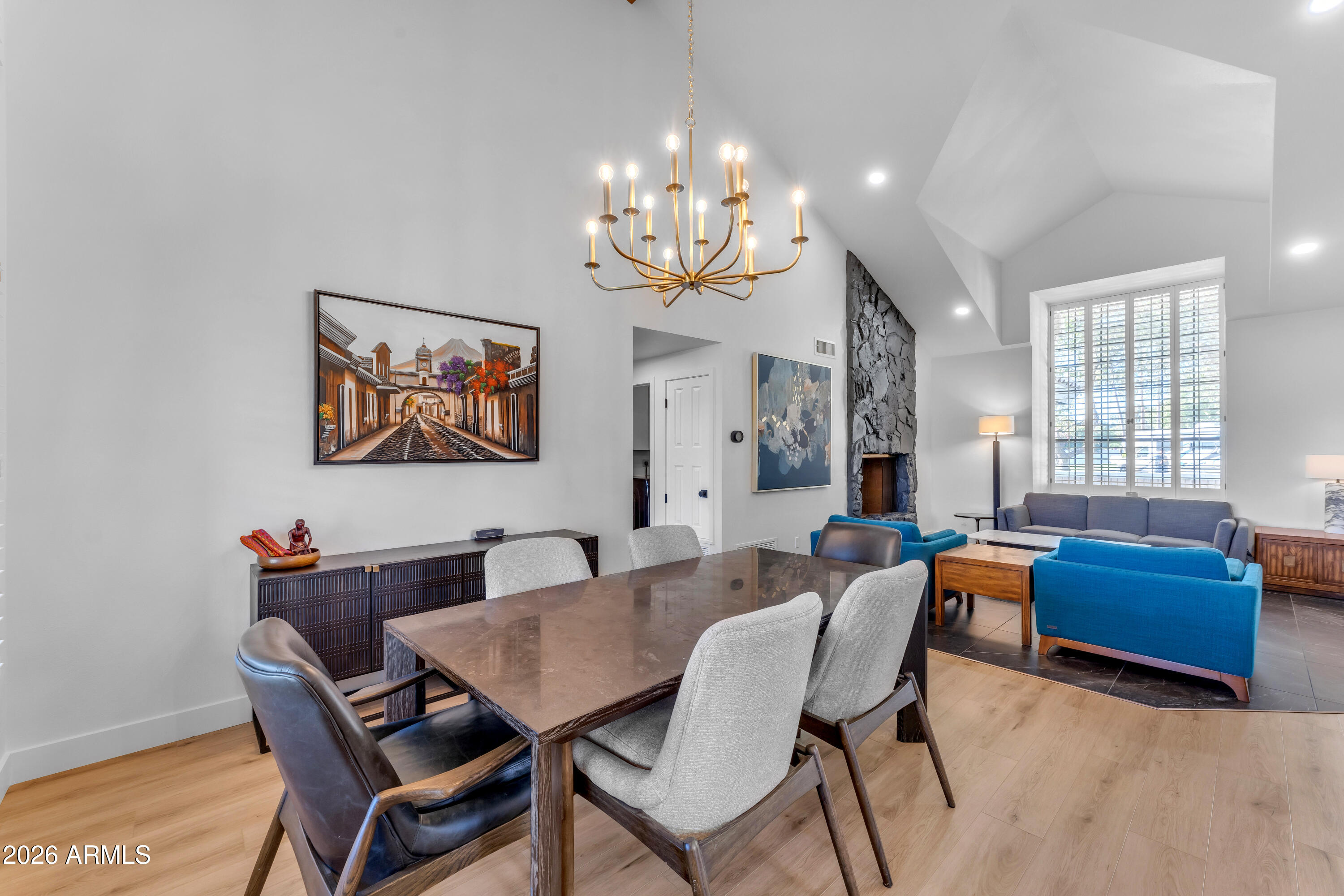 The formal dining area makes a statement of its own, featuring a textured accent wall and designer light fixture that set the stage for memorable meals and celebrations.
