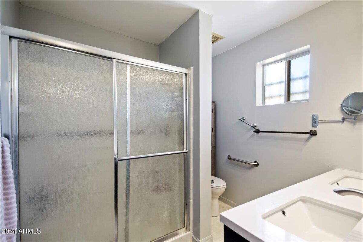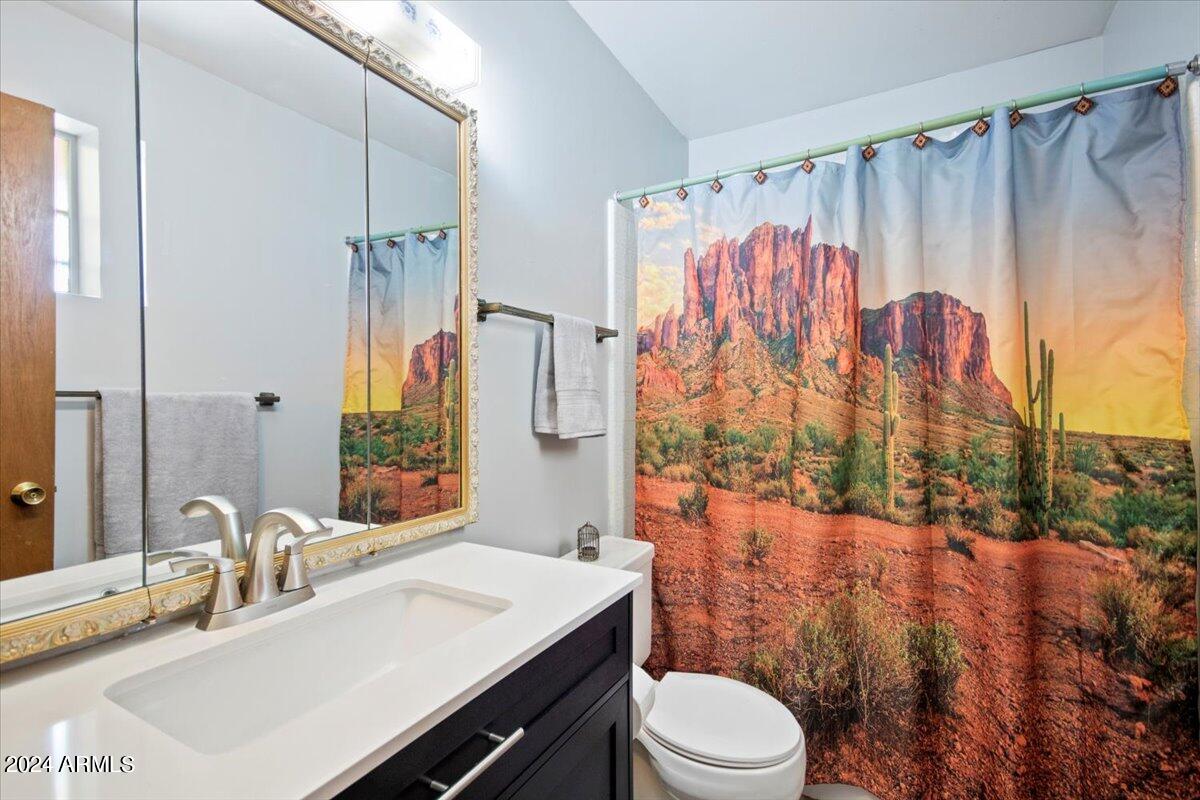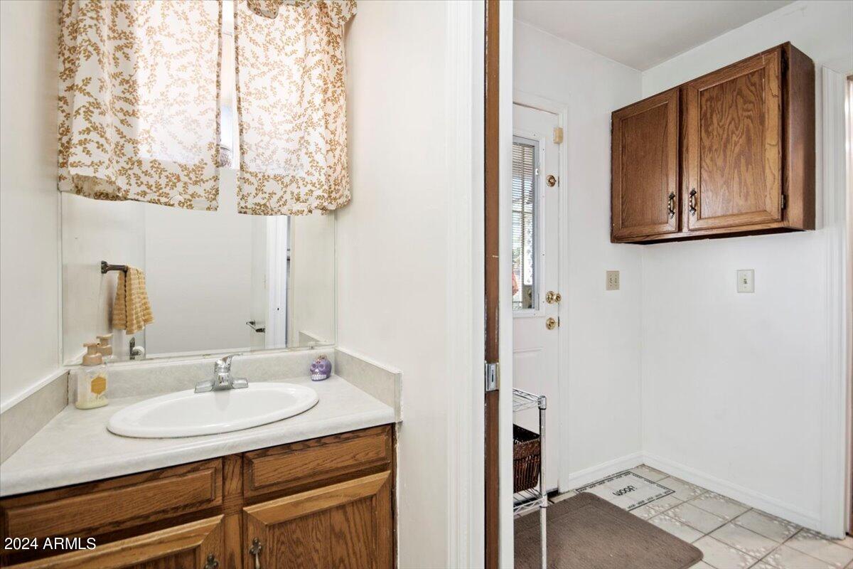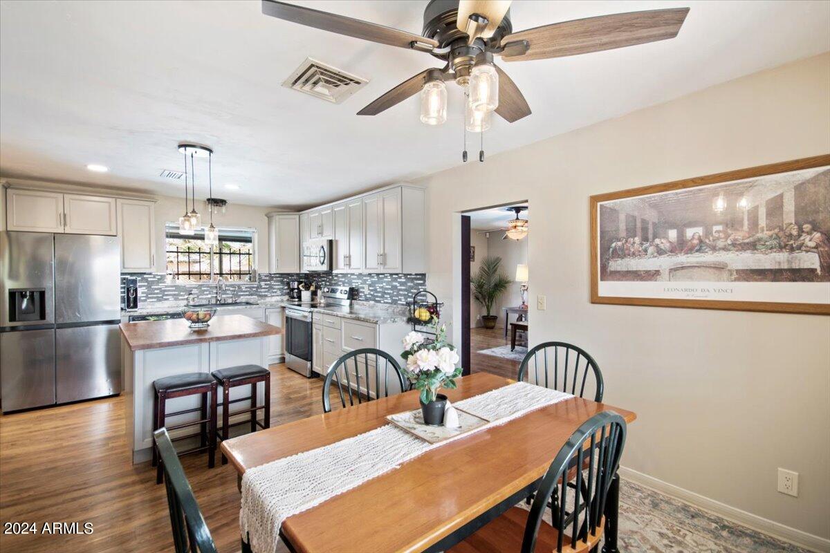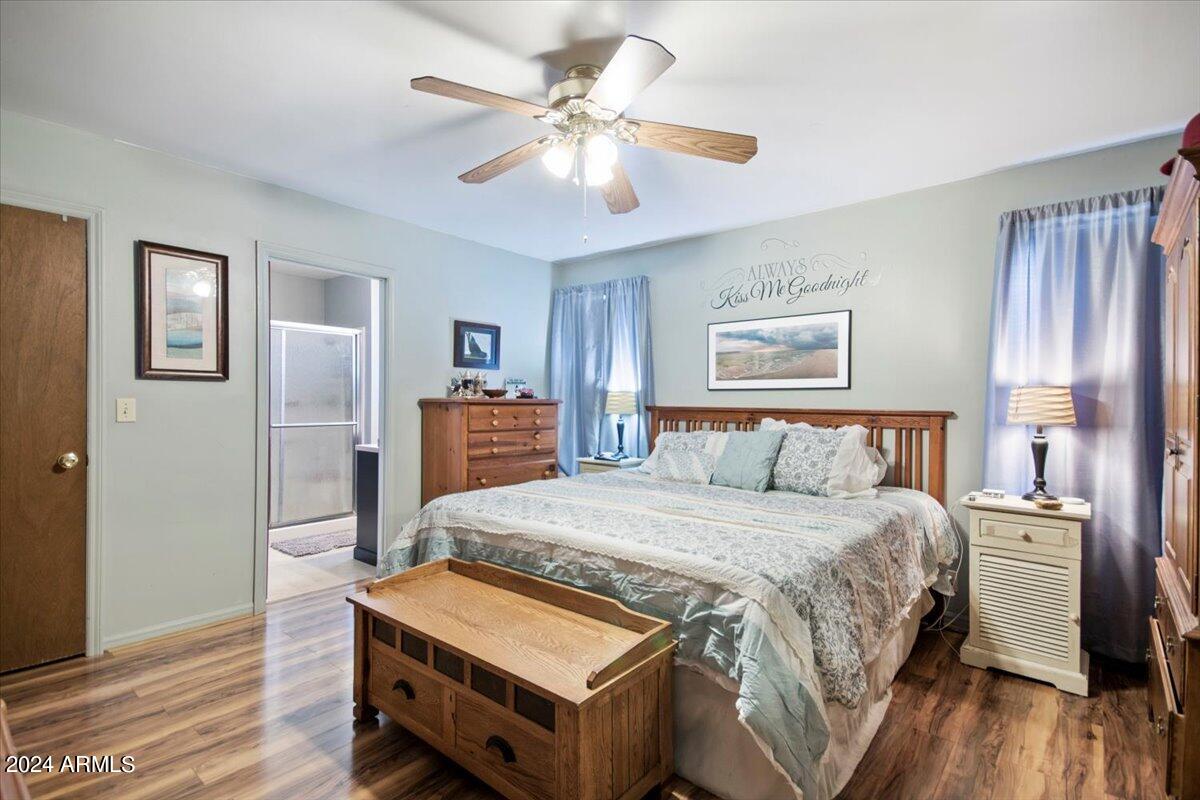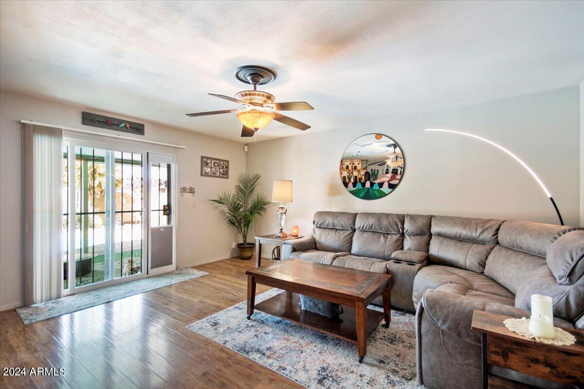 Welcome to your personal oasis in the +55 Velda Rose Estates! This updated 2 bedroom, 2.5 bath home boasts the warmth of new wood laminate flooring that flows seamlessly throughout. The spacious living room offers a cozy ambiance, perfect for relaxing. Prepare to be impressed by the fully remodeled kitchen, complete with a sleek island with a butcher block counter, ideal for culinary enthusiasts and casual dining alike. Step outside into your private backyard oasis, where a sparkling dive pool beckons on warm Arizona days. Mature landscaping creates a tranquil backdrop, while the covered patio provides a shady retreat. Indulge in the beauty of the front patio and yard accompanied by three citrus trees, including two vibrant orange trees and a grapefruit tree. The primary bedroom features a walk-in shower and newly updated double-sink vanity. The 2-car garage provides convenience and ample storage space. Experience the epitome of desert living! Additional updates include new kitchen cabinets, new laminate countertops, new kitchen backsplash, new kitchen sink and faucet, new kitchen appliances, three new kitchen light fixtures, and new kitchen island with storage; new laundry cabinets, new bathroom vanities, new bathroom faucets, fresh paint in all bathrooms, pool has been repainted, and installation of pool umbrellas. Roof replaced in 2021, only 3 years old! Also, the whole home is equipped with a water filtration system with reverse osmosis.