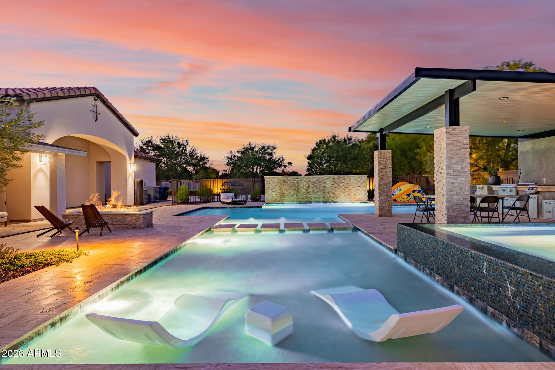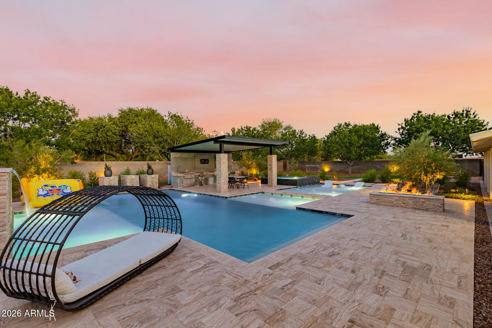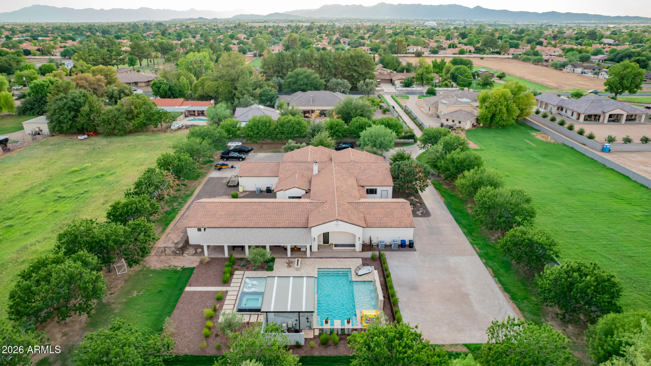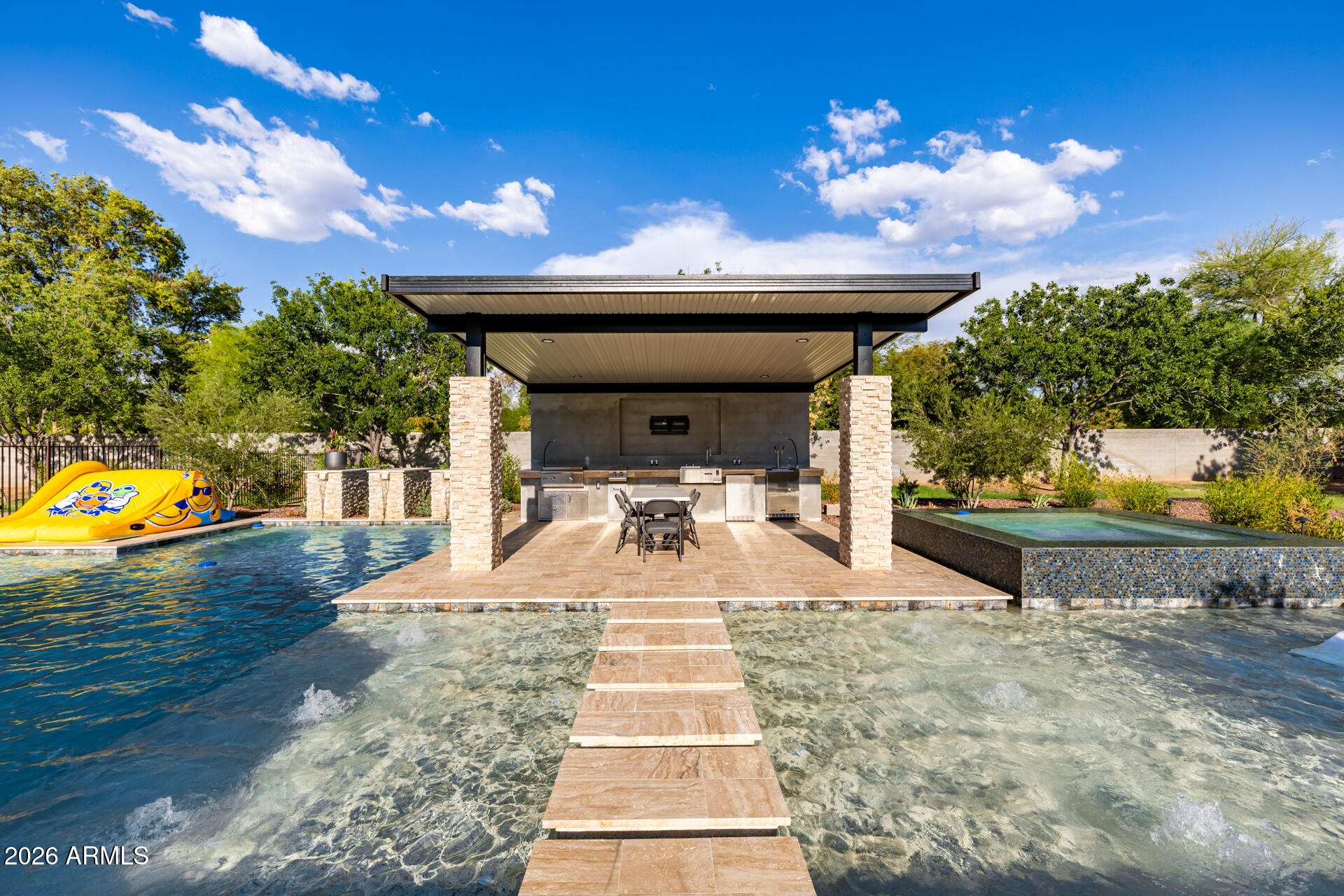 The guest house has a full-size indoor basketball/pickleball court with a full kitchen, bathrooms, and two bedrooms adds a unique and practical feature to the property. The resort-style pool is BRAND NEW with a covered sitting area and built-in BBQ enhancing the luxurious, resort-like feel of the compound. This property truly offers a comprehensive package for luxury living and entertaining.