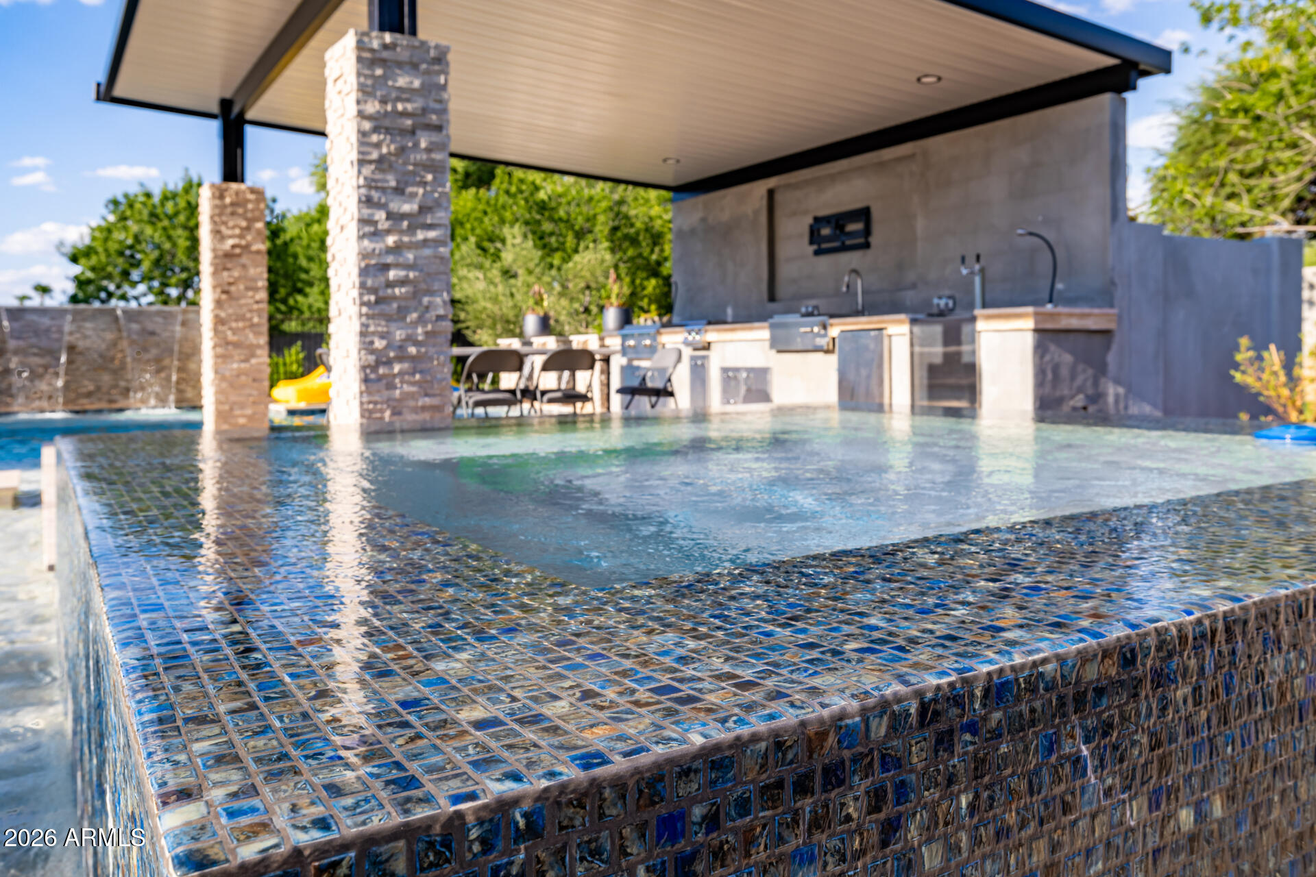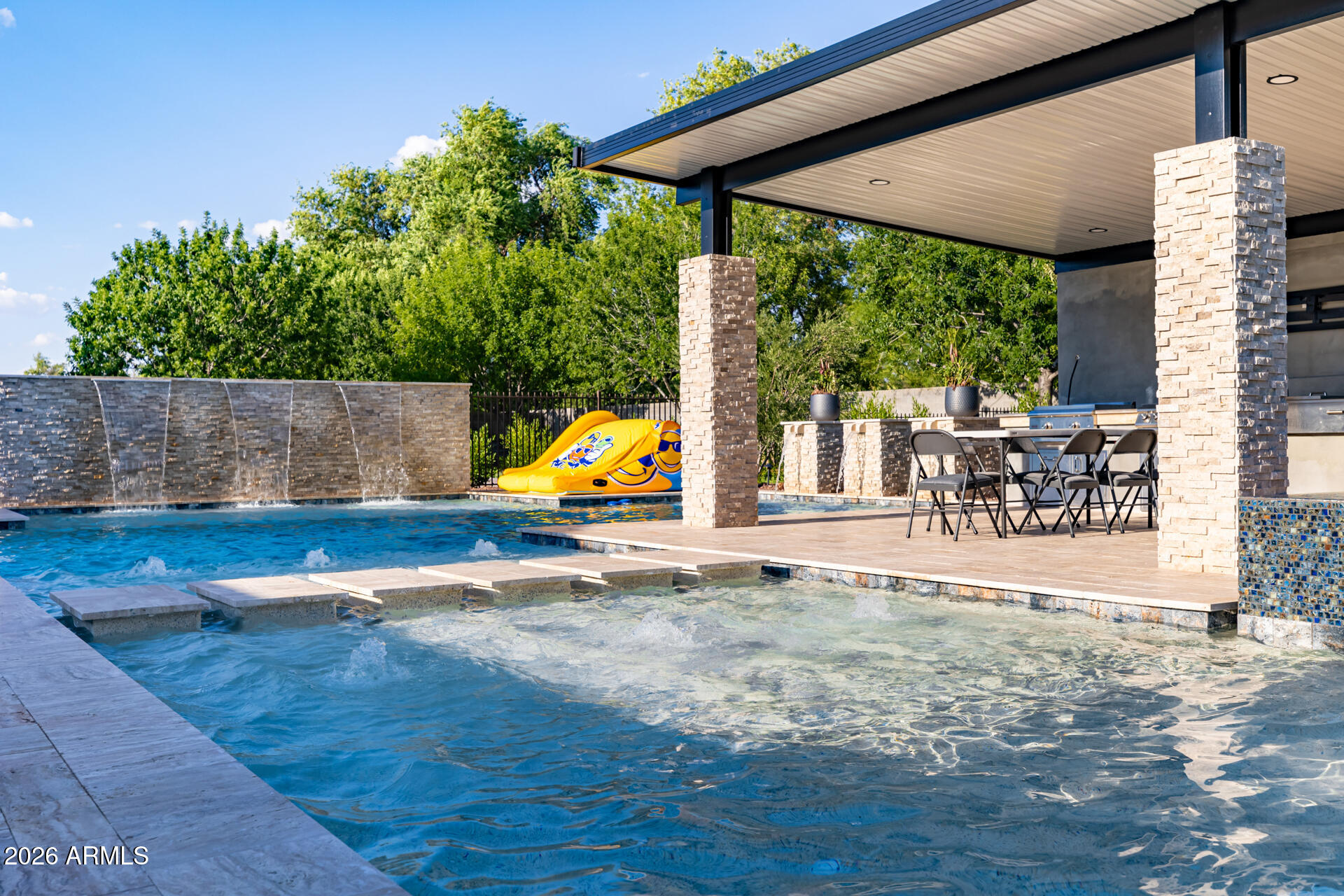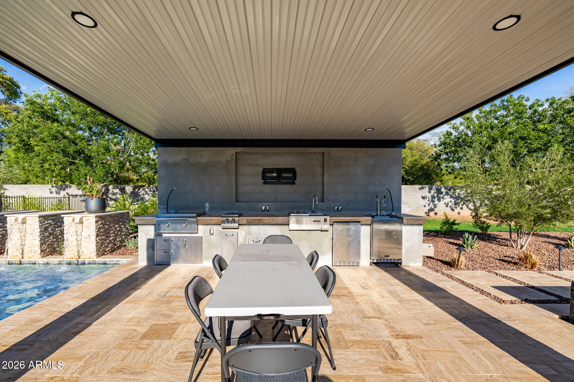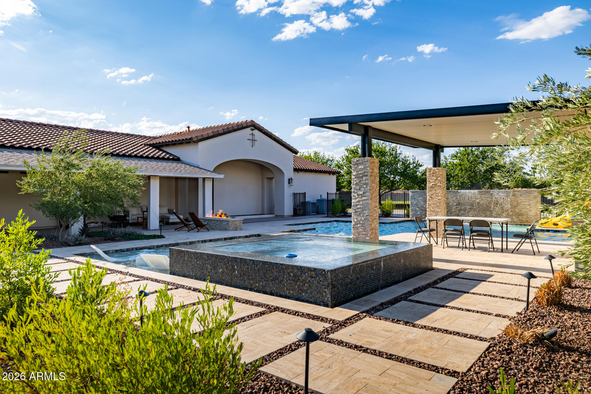 The guest house has a full-size indoor basketball/pickleball court with a full kitchen, bathrooms, and two bedrooms adds a unique and practical feature to the property. The resort-style pool is BRAND NEW with a covered sitting area and built-in BBQ enhancing the luxurious, resort-like feel of the compound. This property truly offers a comprehensive package for luxury living and entertaining.