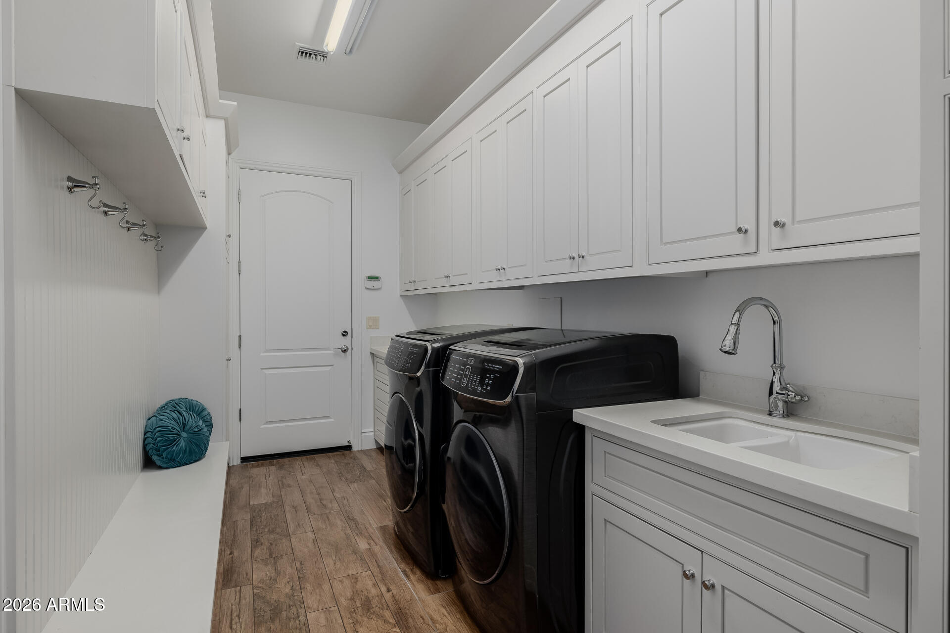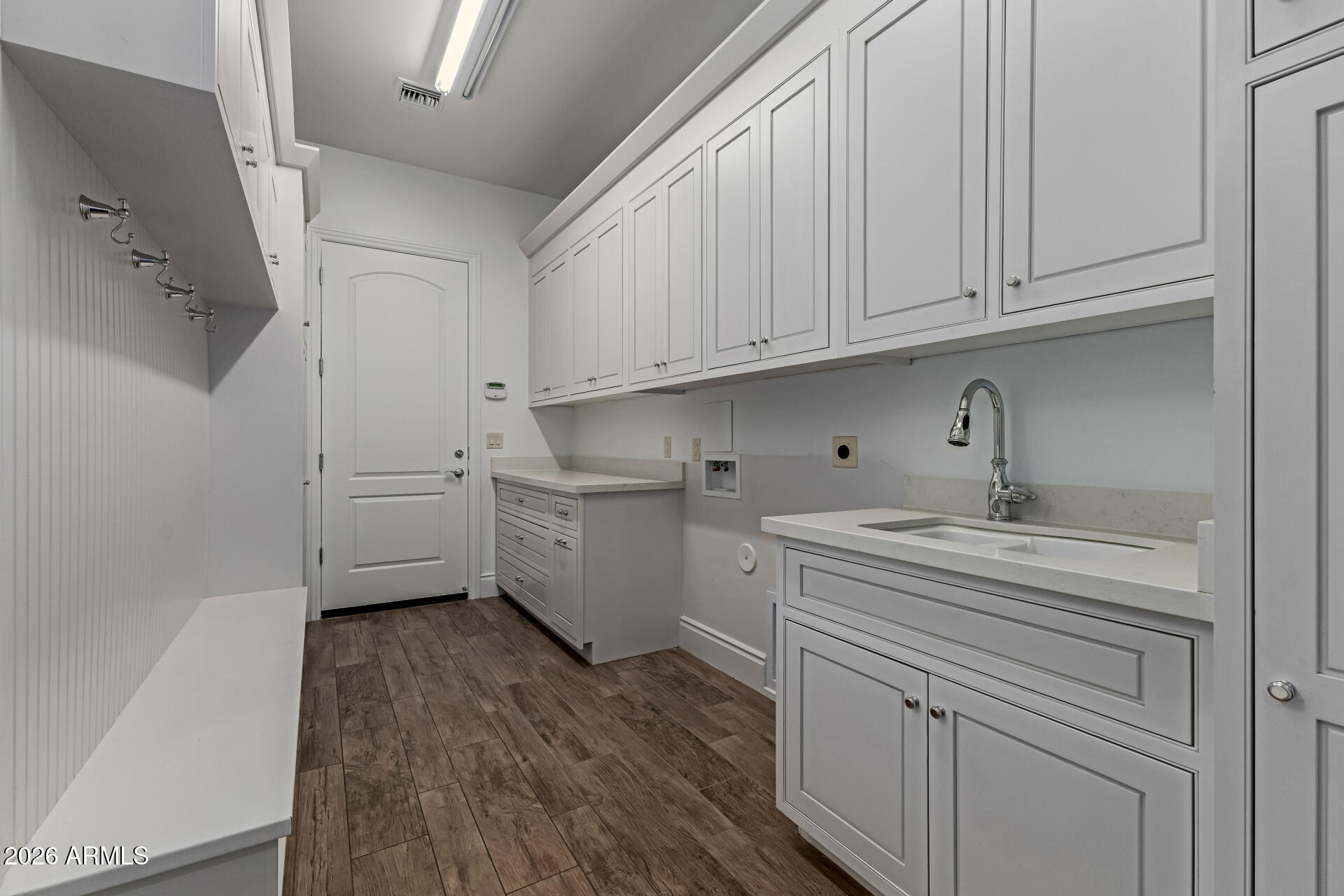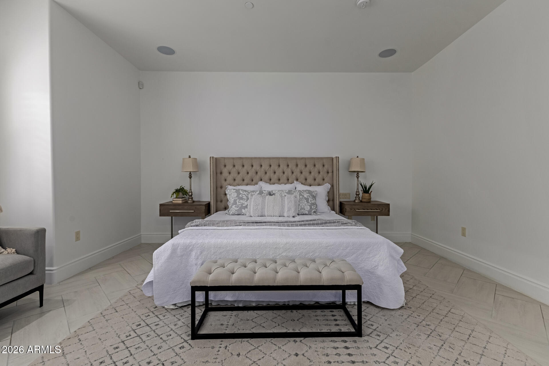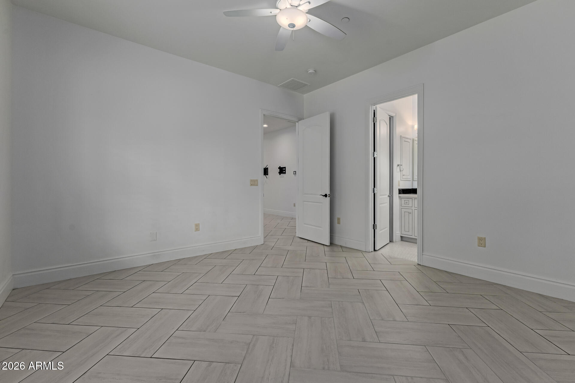 The primary suite is particularly impressive, with dual vanities, toilet rooms, a multi-head shower, extensive built-in storage, and direct laundry access. The second residence adds a recreational dimension with indoor basketball and pickleball courts, along with a guesthouse or man cave that includes a full kitchen, TV room, and extra beds.