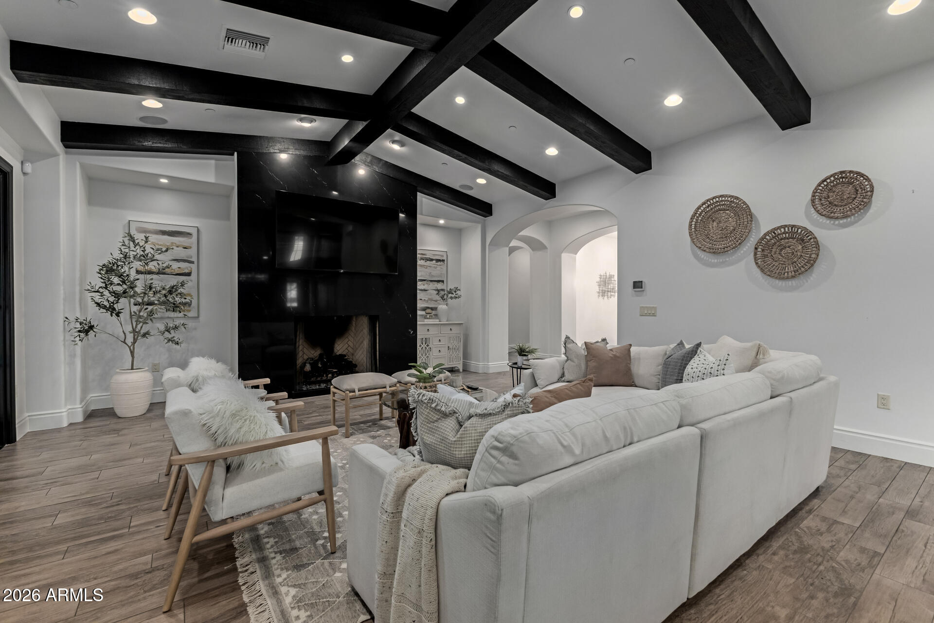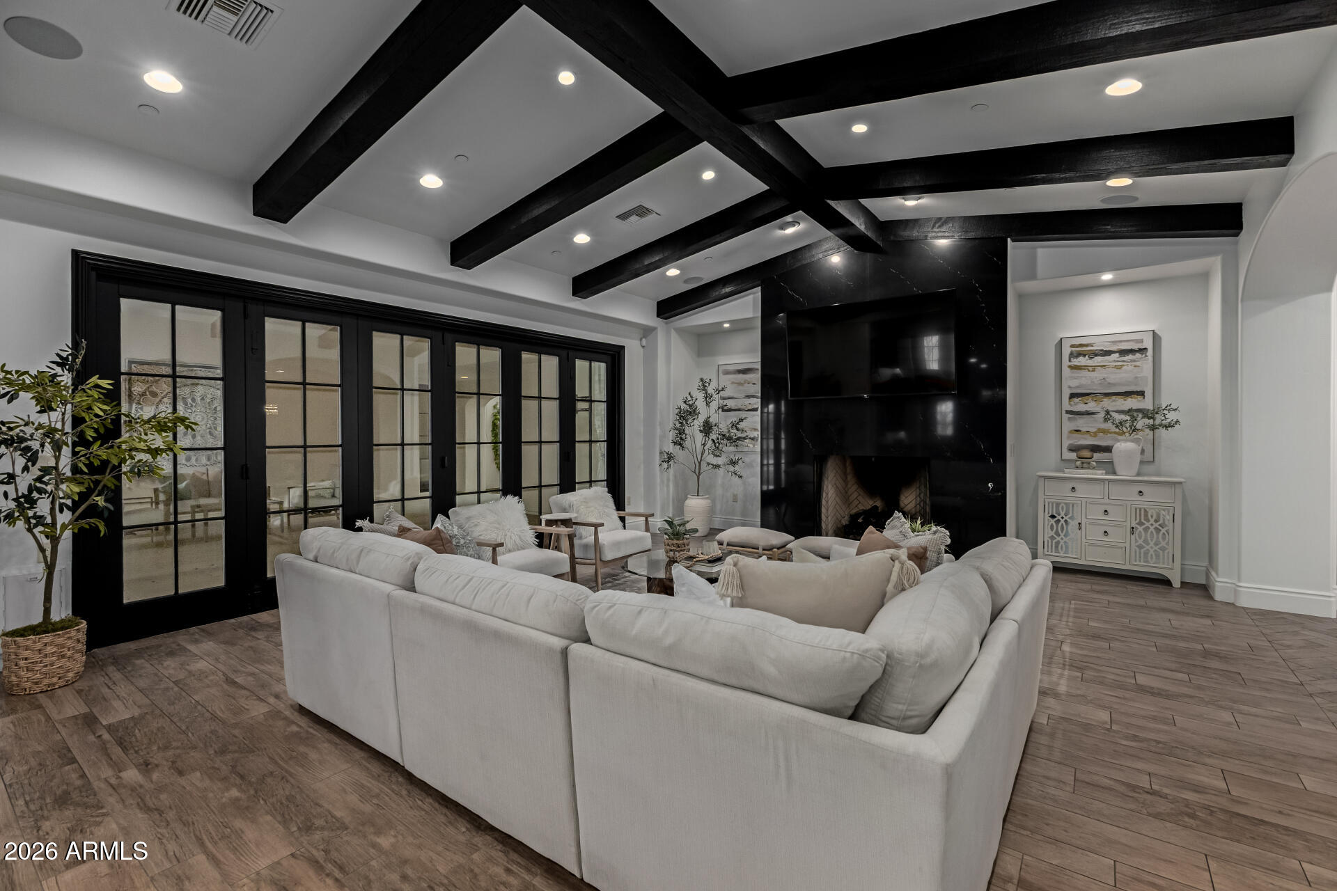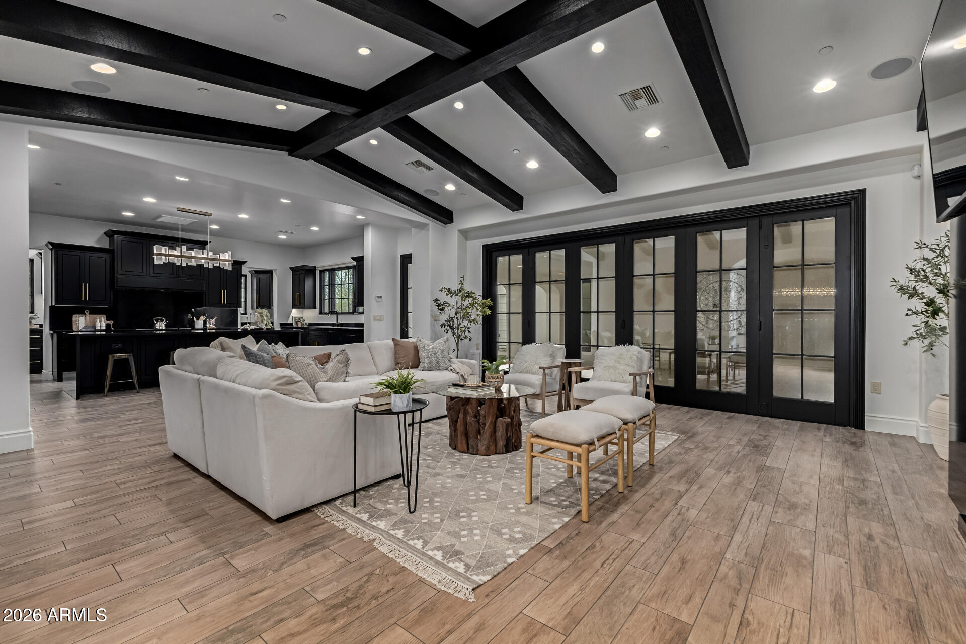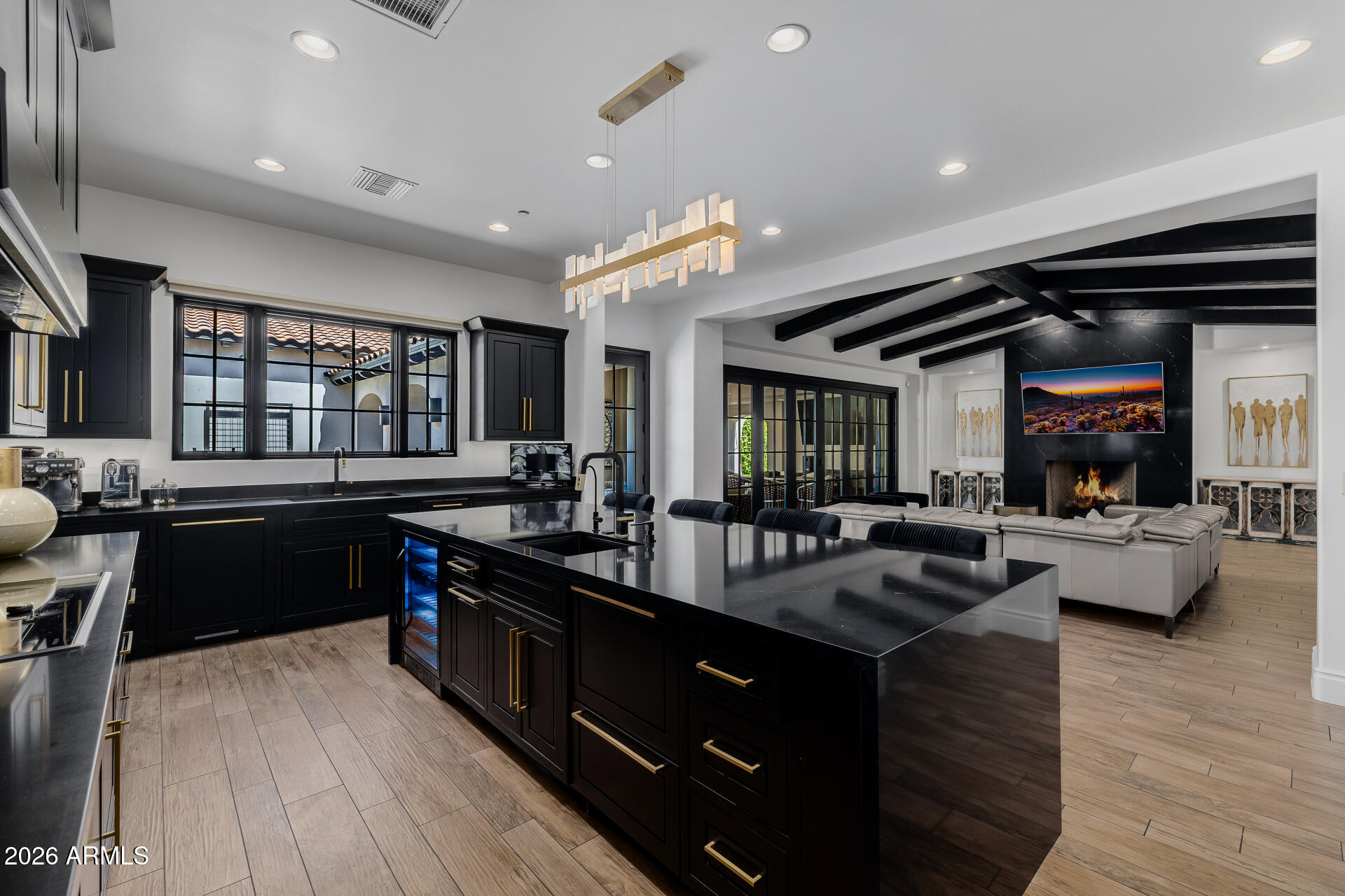 WOW this DREAM compound offers INDOOR SPORTS COURT. Luxurious living with spacious residences and top-notch amenities and it's one of a kind!! The main house features impeccable finishes: recently remodeled it offers a chef's kitchen, a butler's kitchen, large pantry, new flooring, vaulted ceilings with custom beam work and so much more. Main house featured 4 large bedrooms each having private baths, formal and casual living spaces, and two private office spaces, it seems ideal for both family life and professional needs.