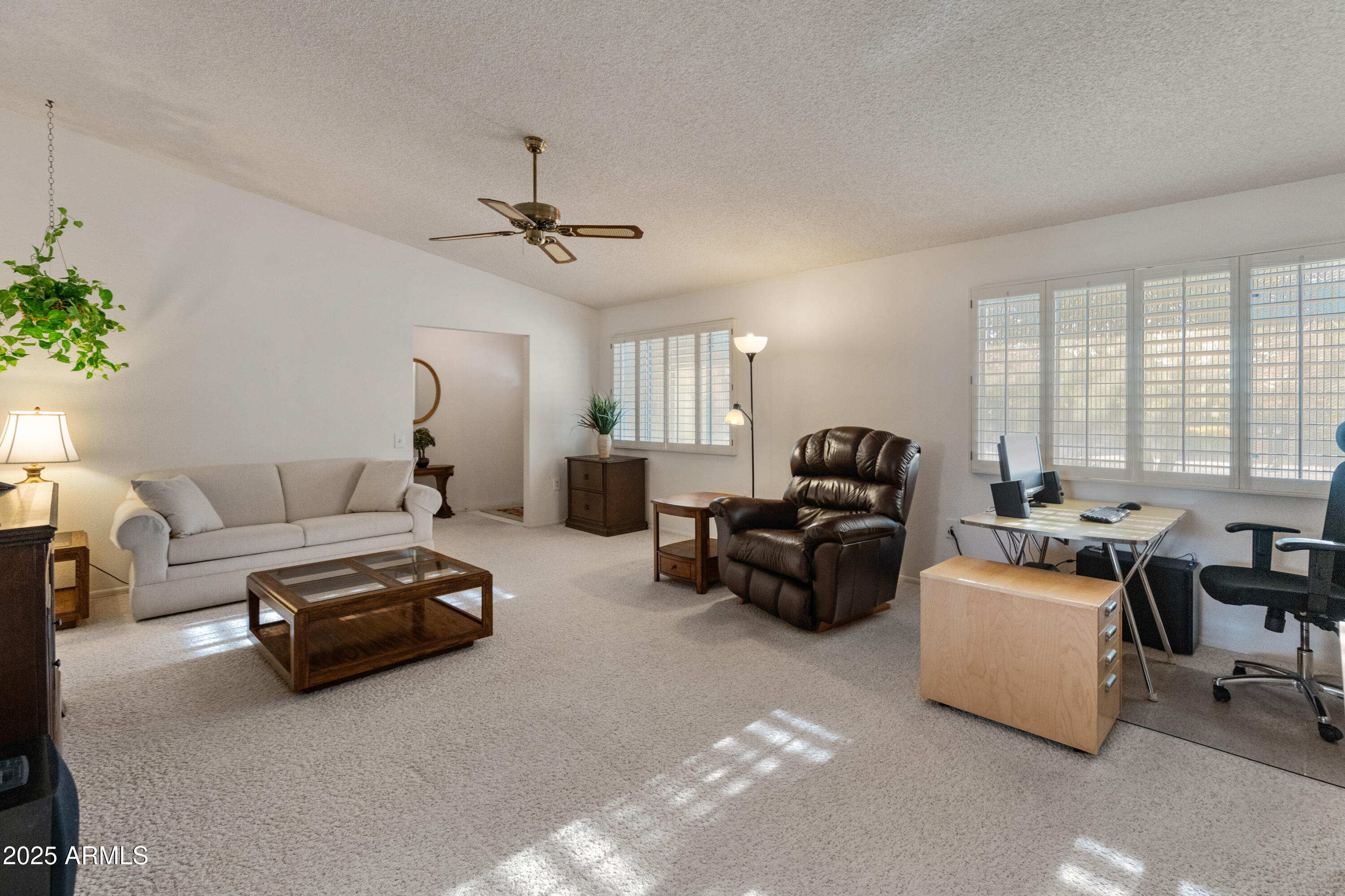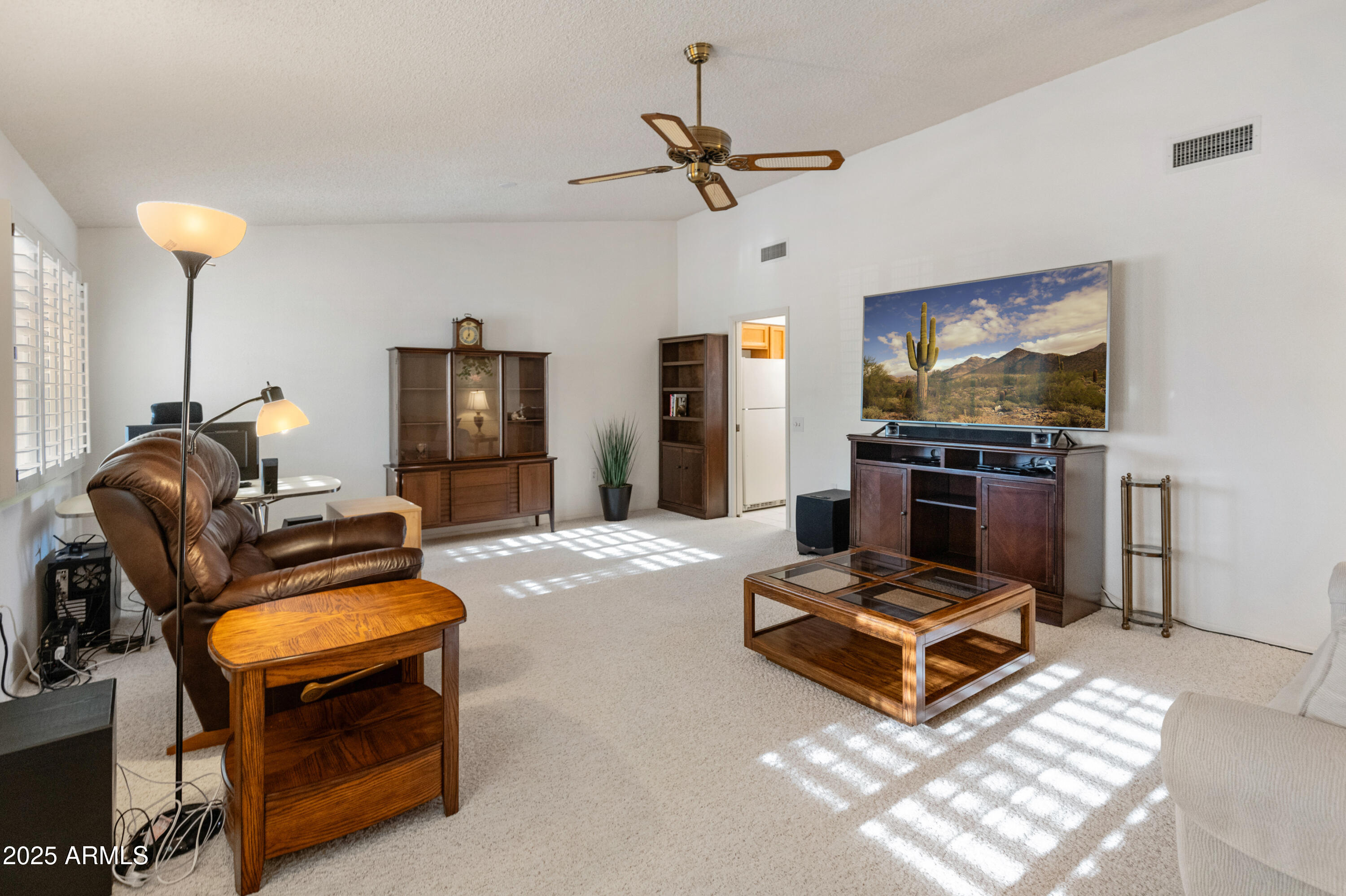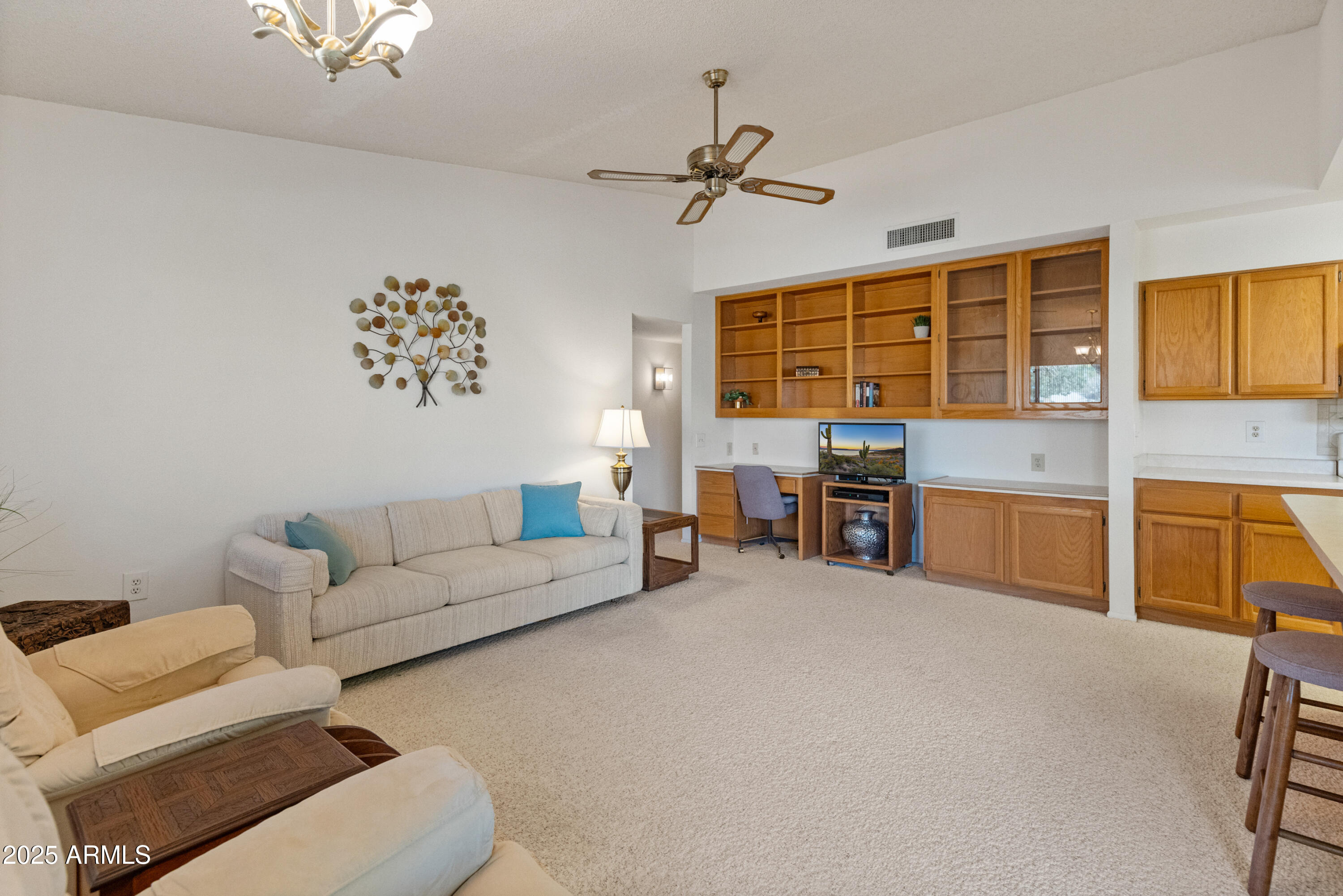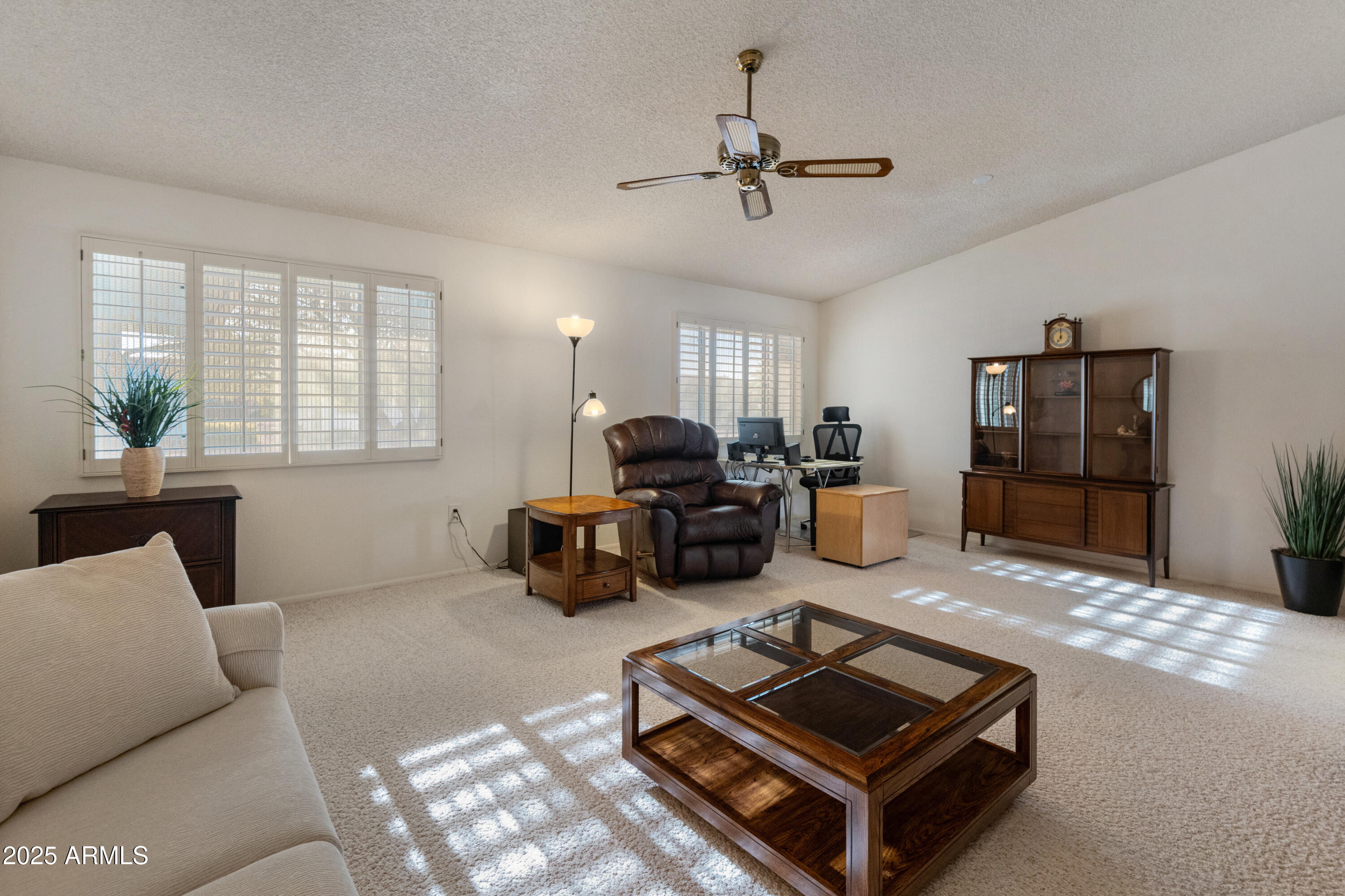 Discover this spacious, well-maintained one owner home in the sought-after 55+ community of Sun City West! Nestled on a large lot, this immaculate property offers 2,000+ sq. ft. of living space with vaulted ceilings and an open floor plan. Highlights include a generous living and formal dining area, bright eat-in kitchen with breakfast bar, and cozy family room with built-ins. The primary suite features dual sinks, private bath and walk-in closet, while the guest bedroom also offers a walk-in closet. Enjoy an oversized laundry room, ceiling fans throughout, covered screened patio, North/South exposure, and a 2-car garage with built-ins. No HOA and low taxes! Resort-style amenities include 7 golf courses, 5 pools, spas, pickleball, tennis, bowling, crafts, a clubhouse, and more.