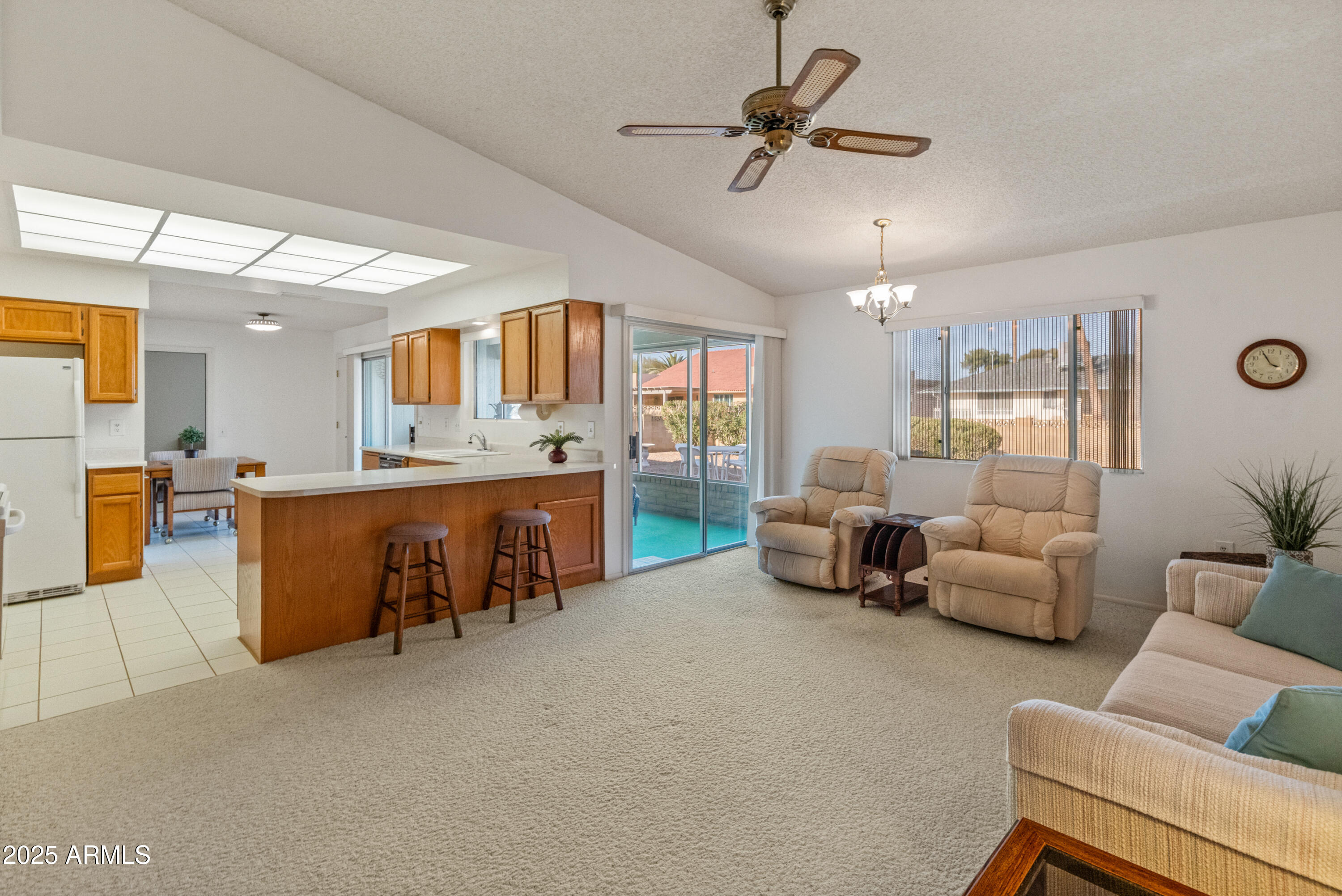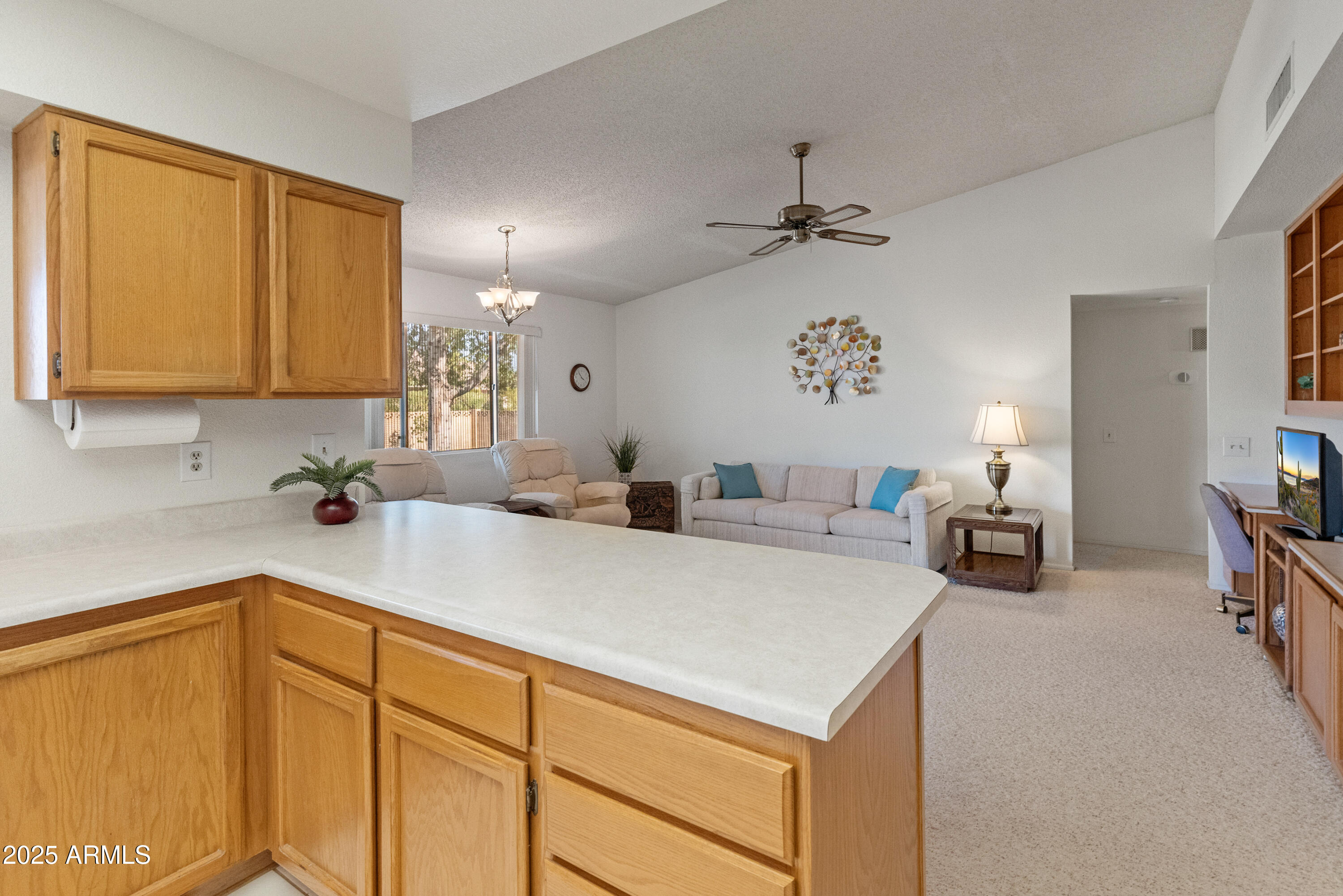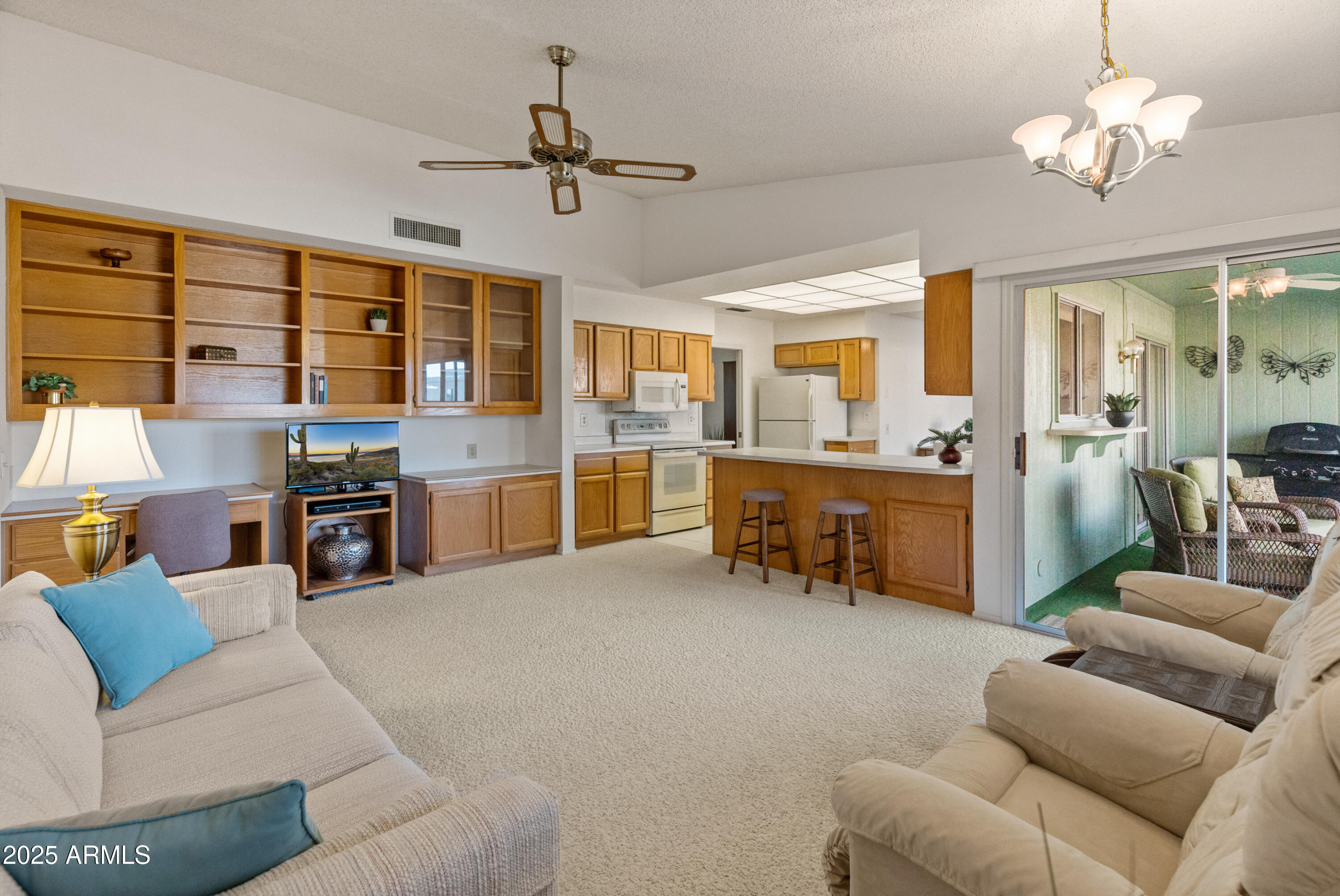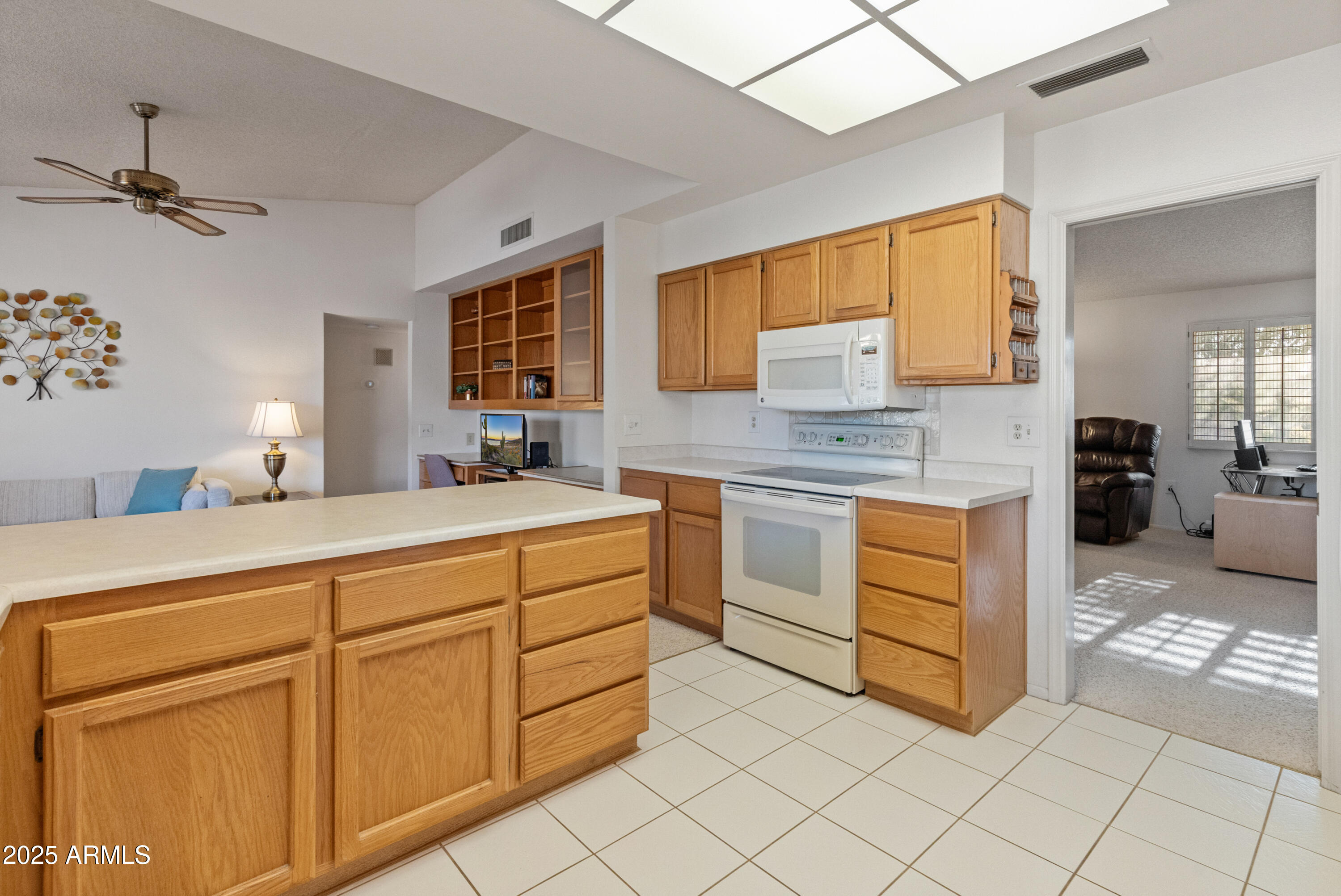 Discover this spacious, well-maintained one owner home in the sought-after 55+ community of Sun City West! Nestled on a large lot, this immaculate property offers 2,000+ sq. ft. of living space with vaulted ceilings and an open floor plan. Highlights include a generous living and formal dining area, bright eat-in kitchen with breakfast bar, and cozy family room with built-ins. The primary suite features dual sinks, private bath and walk-in closet, while the guest bedroom also offers a walk-in closet. Enjoy an oversized laundry room, ceiling fans throughout, covered screened patio, North/South exposure, and a 2-car garage with built-ins. No HOA and low taxes! Resort-style amenities include 7 golf courses, 5 pools, spas, pickleball, tennis, bowling, crafts, a clubhouse, and more.