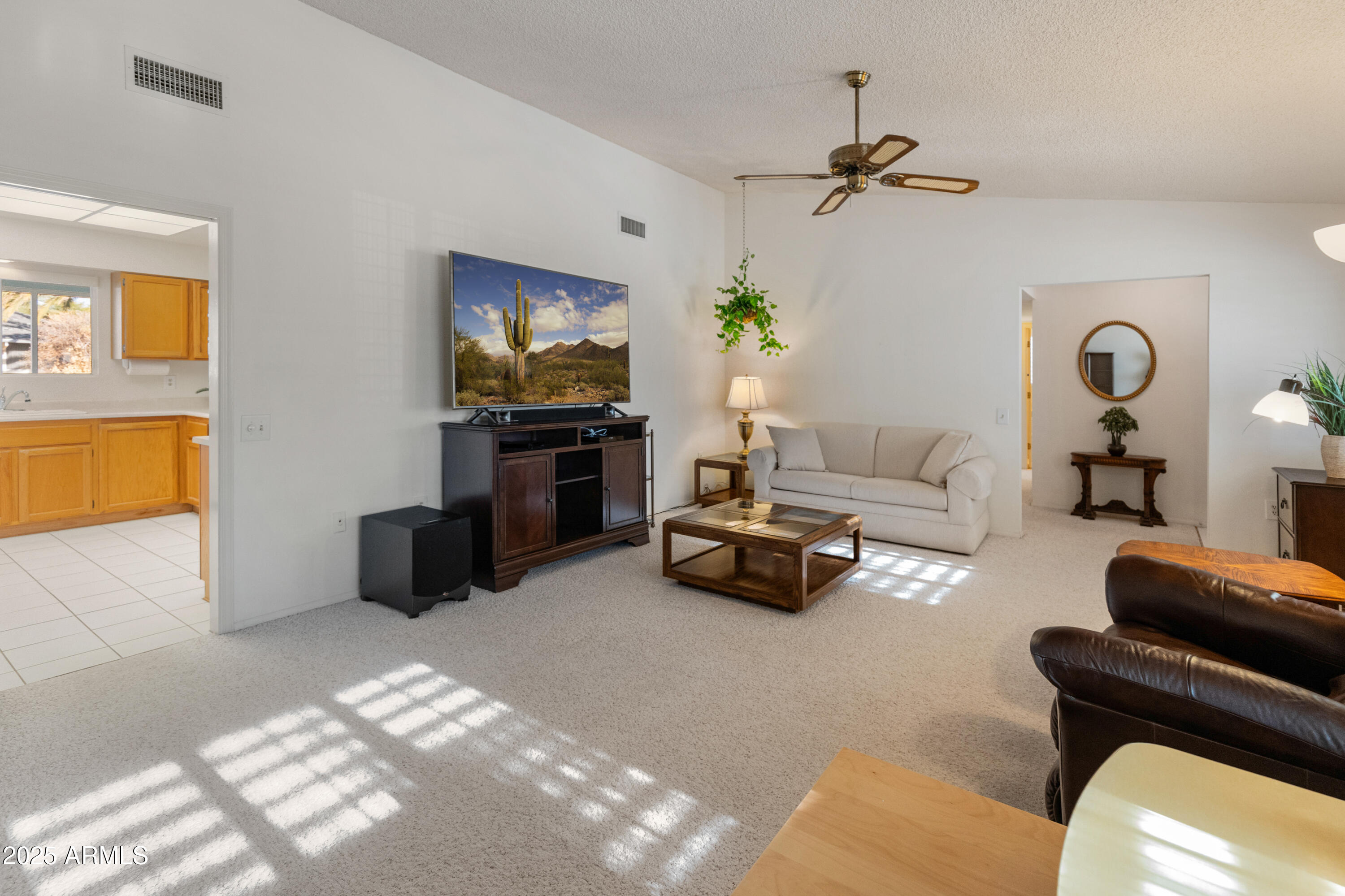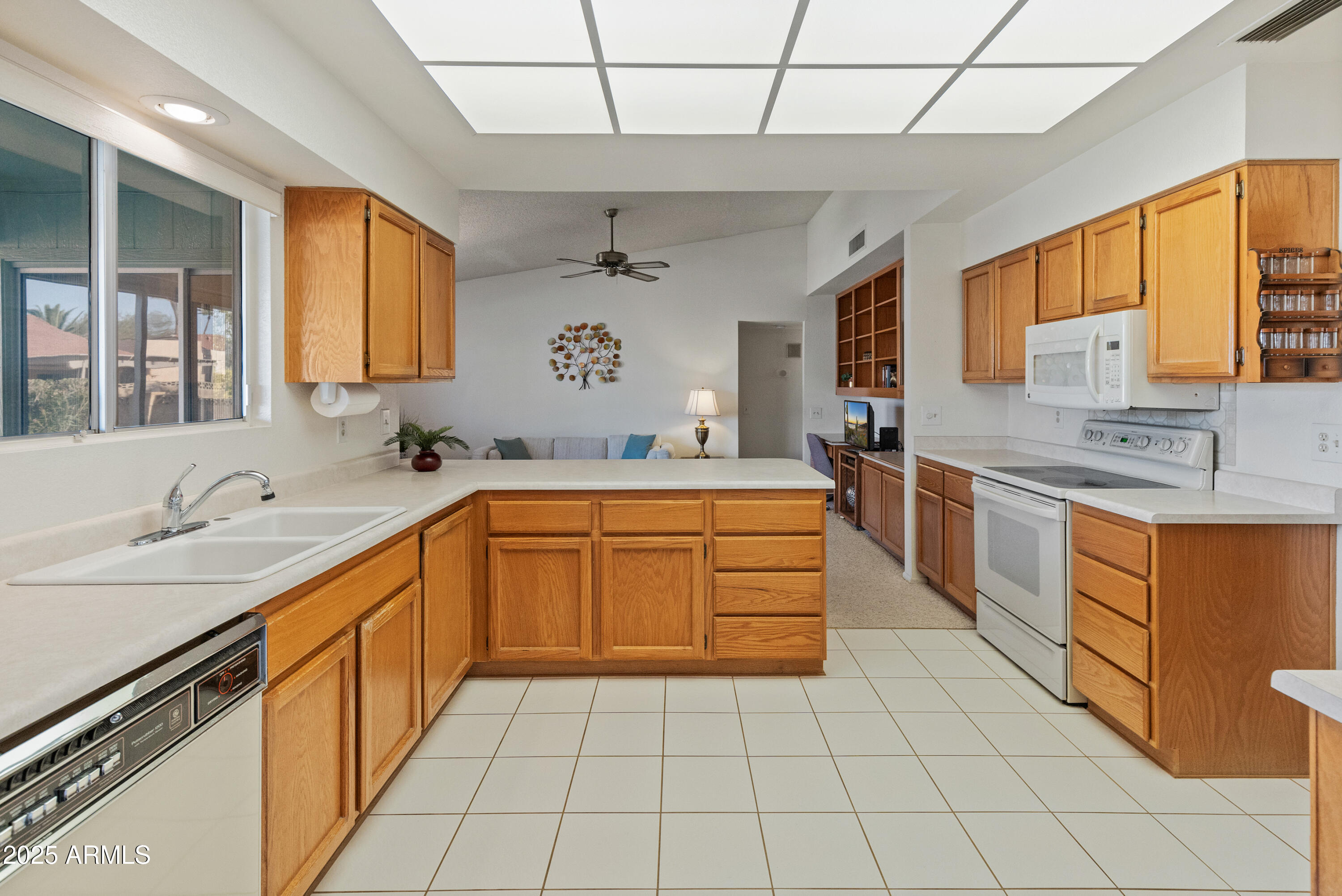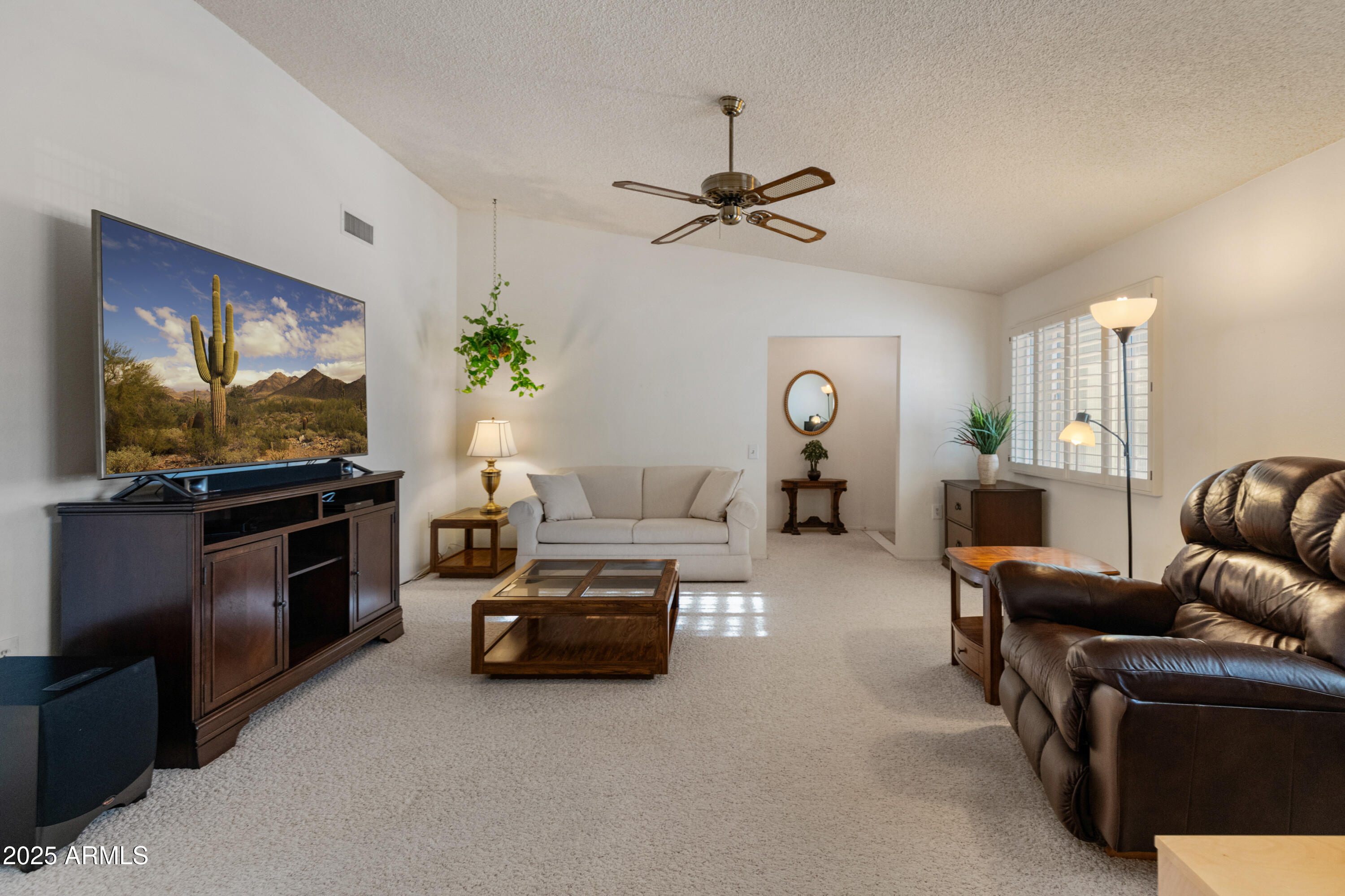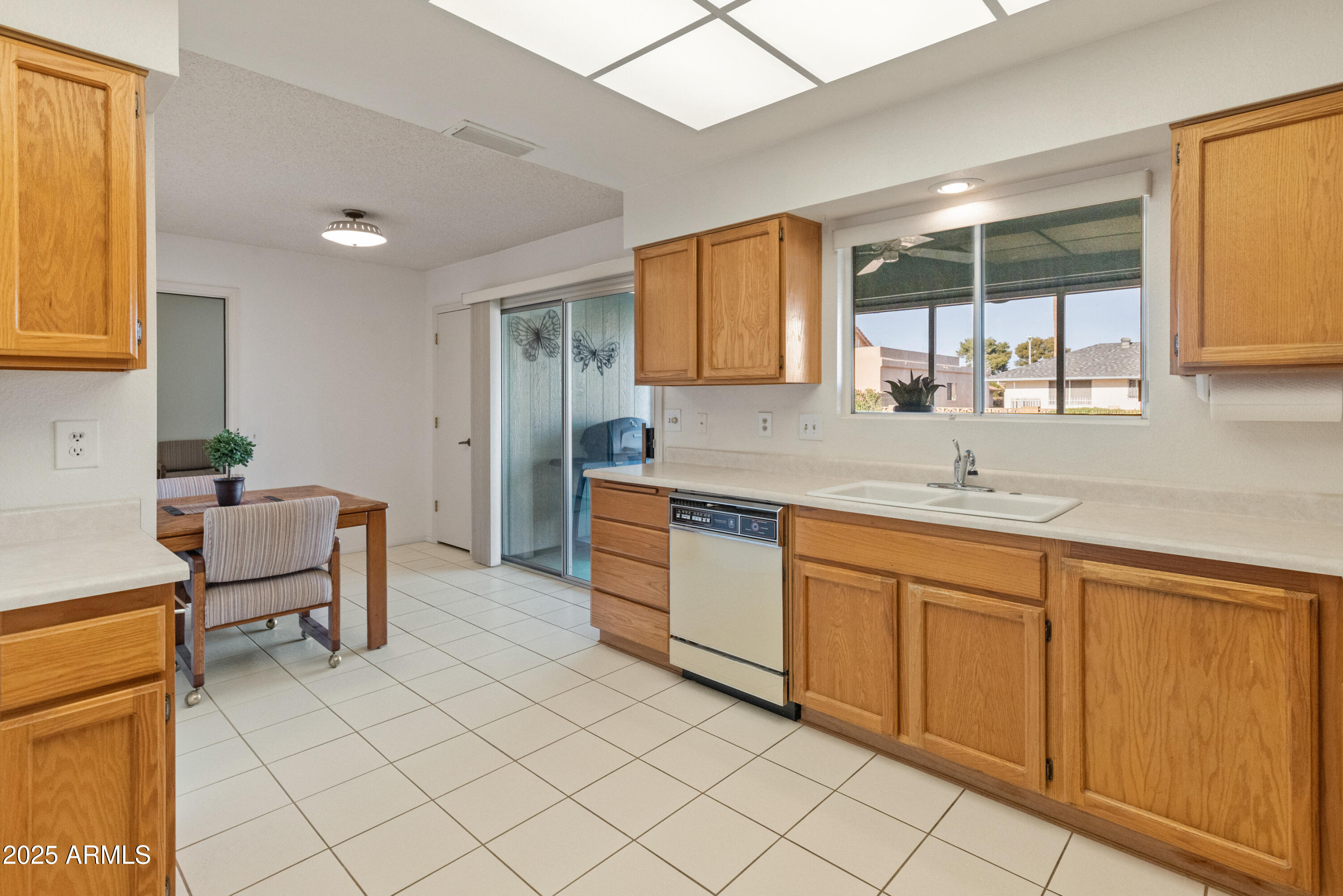 Discover this spacious, well-maintained one owner home in the sought-after 55+ community of Sun City West! Nestled on a large lot, this immaculate property offers 2,000+ sq. ft. of living space with vaulted ceilings and an open floor plan. Highlights include a generous living and formal dining area, bright eat-in kitchen with breakfast bar, and cozy family room with built-ins. The primary suite features dual sinks, private bath and walk-in closet, while the guest bedroom also offers a walk-in closet. Enjoy an oversized laundry room, ceiling fans throughout, covered screened patio, North/South exposure, and a 2-car garage with built-ins. No HOA and low taxes! Resort-style amenities include 7 golf courses, 5 pools, spas, pickleball, tennis, bowling, crafts, a clubhouse, and more.