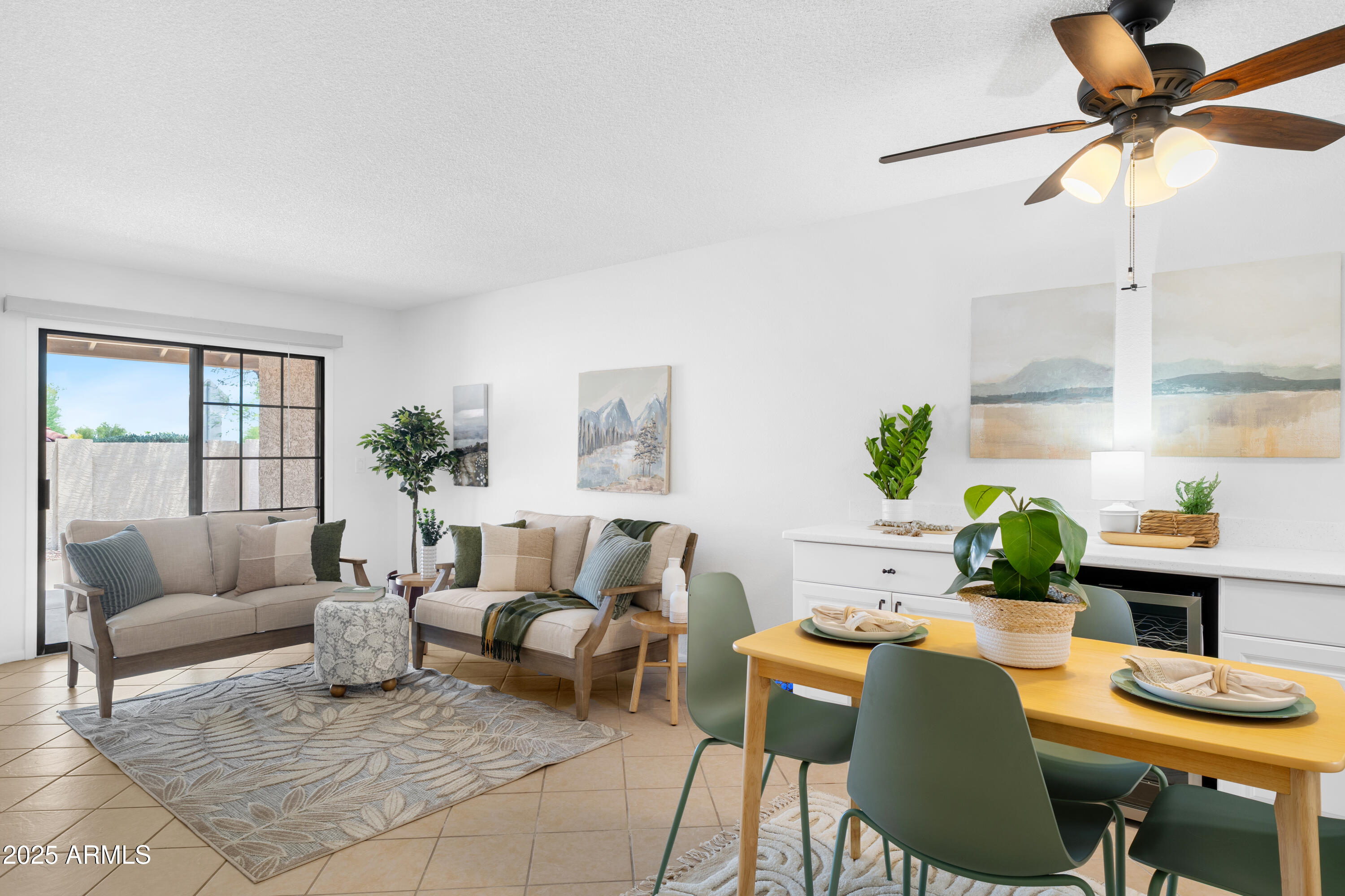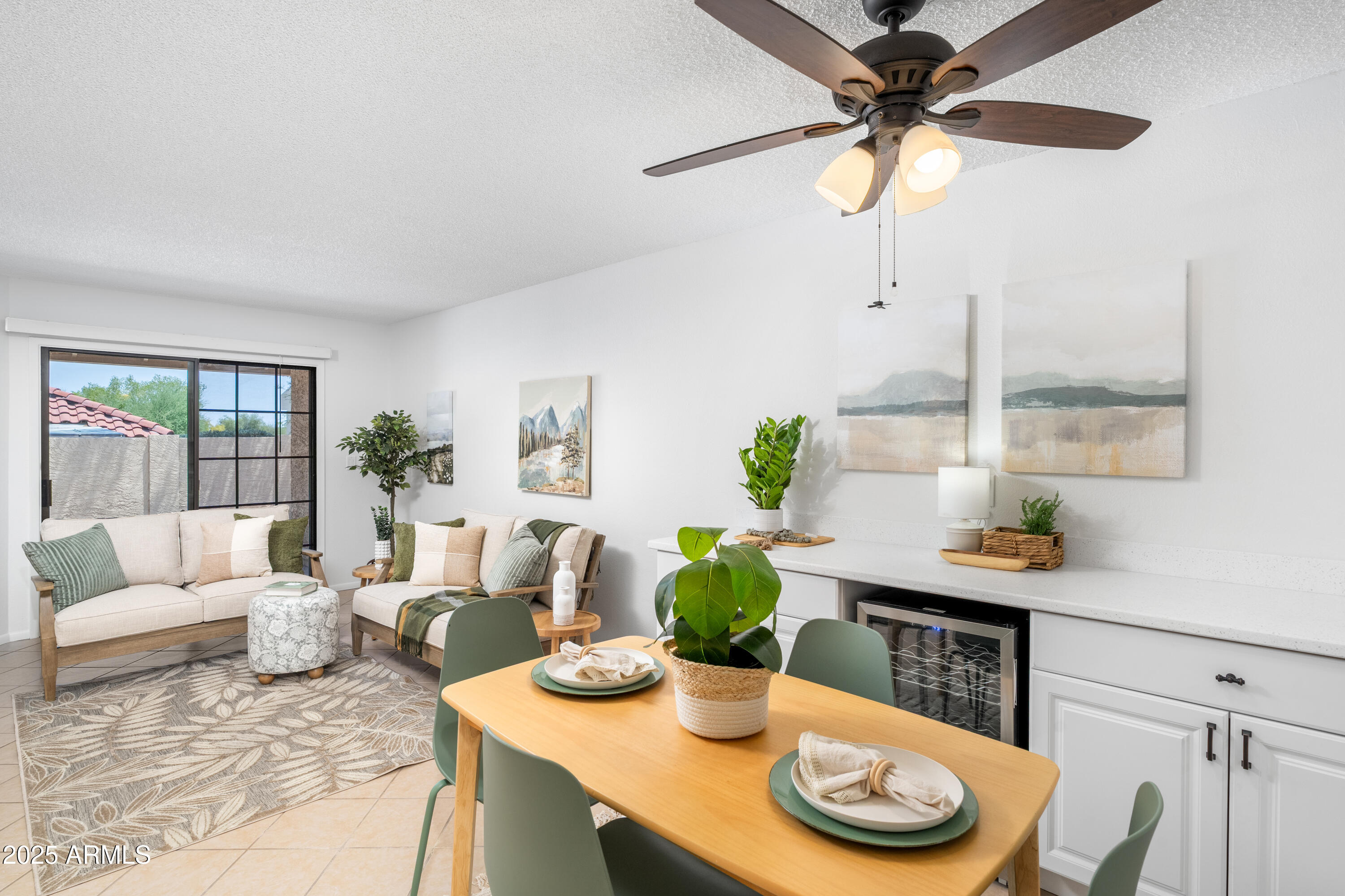 Welcome to your peaceful retreat in one of the desirable 55+ communities! Tucked at the end of a quiet cul-de-sac, this updated single-level home offers 2 bedrooms, 2 bathrooms, and a spacious lot. The kitchen features extended countertops, updated lighting, and a wine fridge--perfect for cooking or entertaining. The primary suite includes a large walk-in shower, dual vanities, and a generous walk-in closet. Enjoy low-maintenance living with a 2-car garage, covered patio, and easy access to nearby shopping, dining, golf, and scenic walking paths. This home blends privacy, comfort, and convenience--ideal for those seeking an active, connected lifestyle in Phoenix. HOA Recreation fee includes Golf, Pickleball, and Tennis use, as well as community pool & spa.
