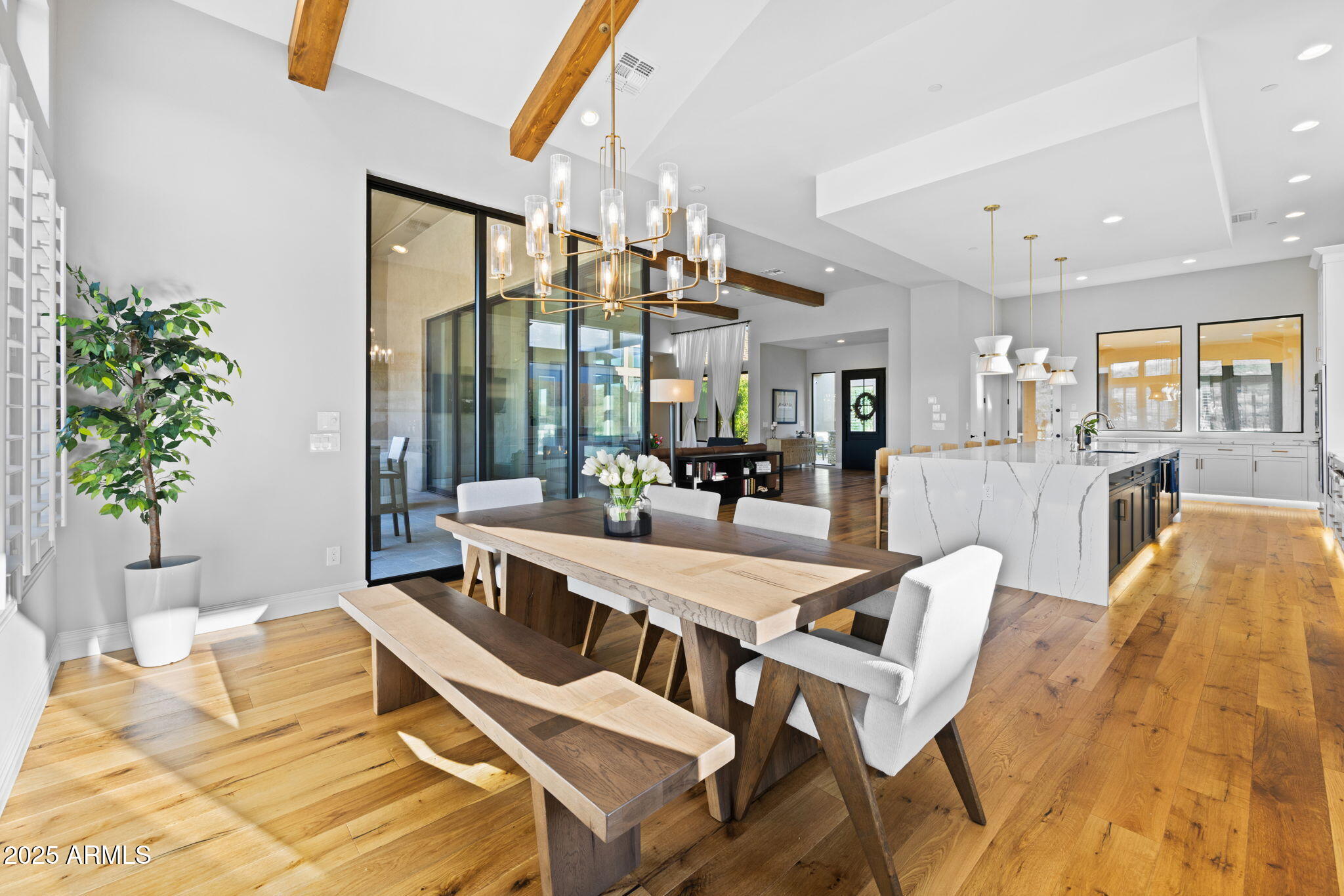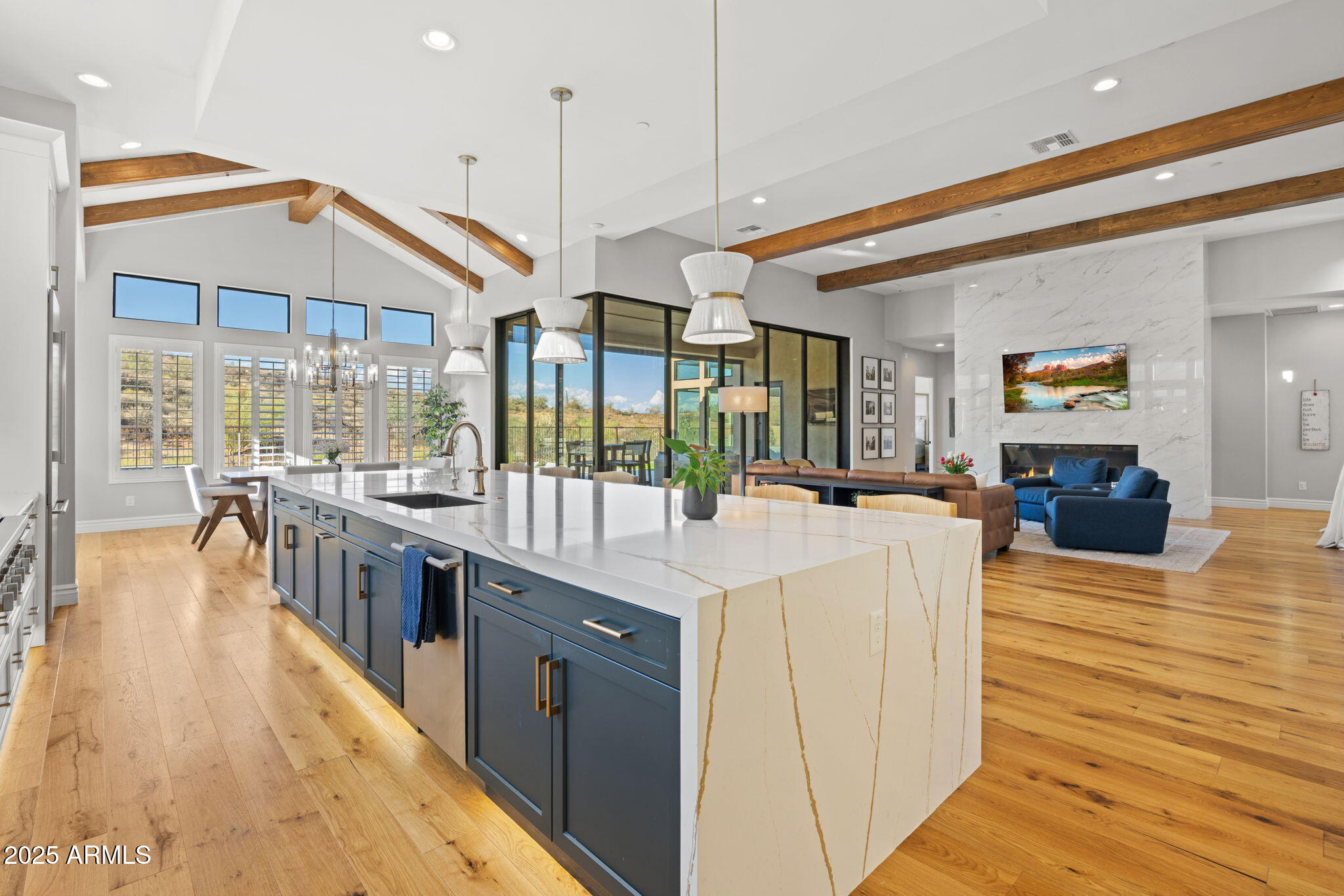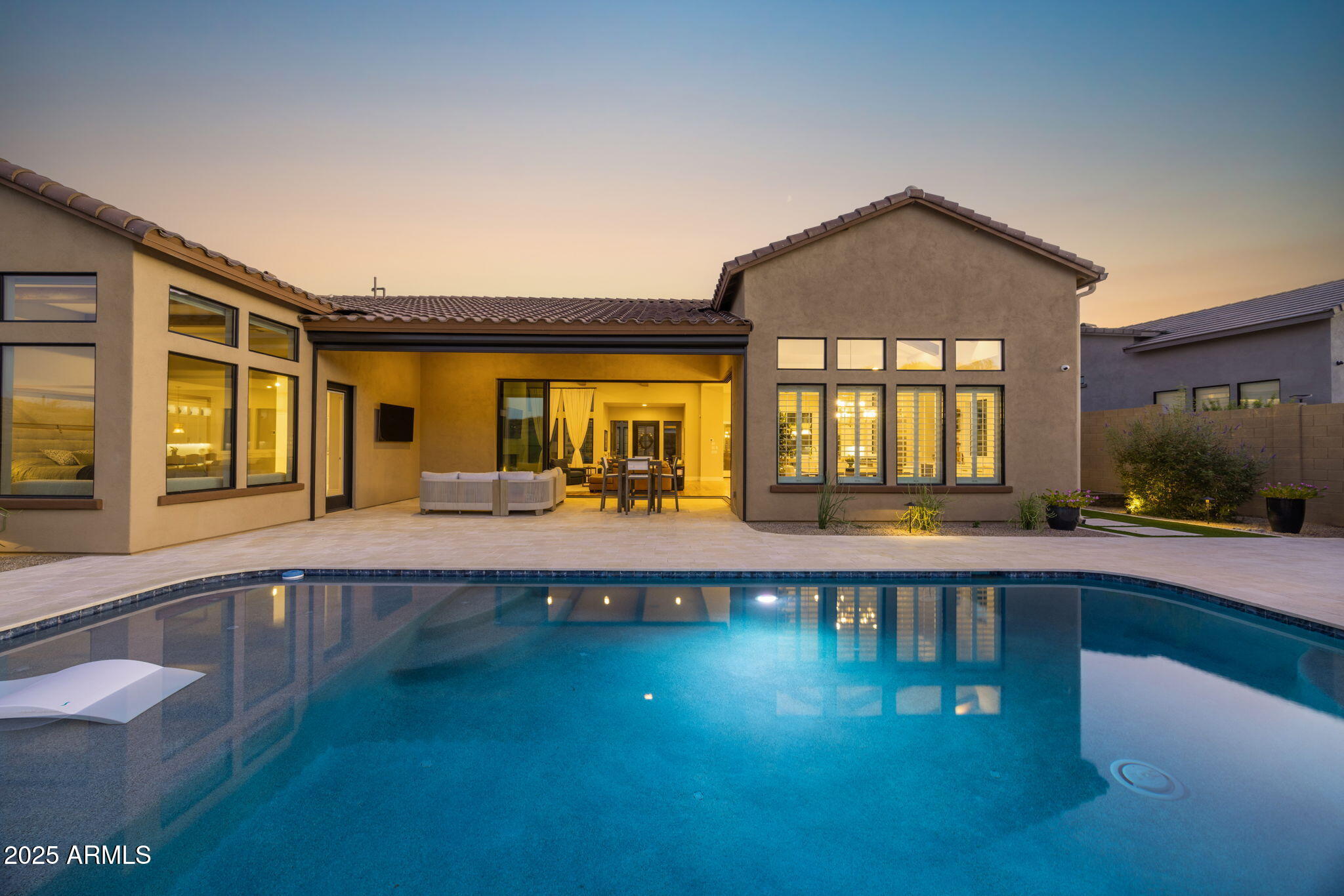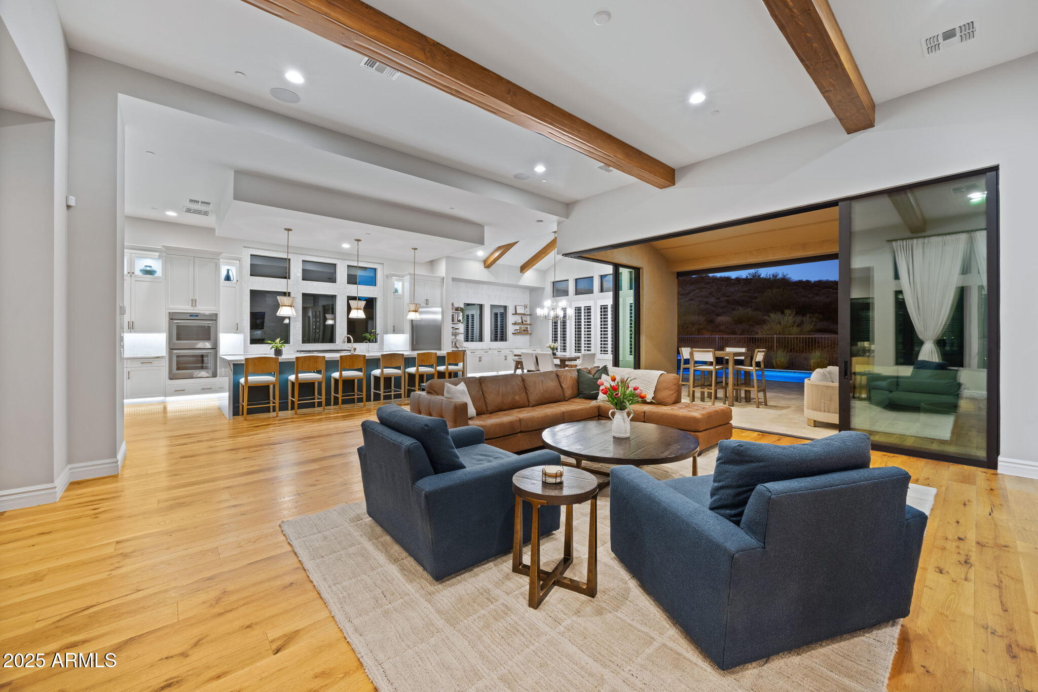 Designed with a bright, open-concept floorplan, this newer-built home showcases nearly $300,000 in top-tier upgrades and custom finishes that complement both contemporary and traditional styles. There is a $30k Control 4 surround sound system to enjoy The seamless indoor-outdoor layout of the home. Sliding glass doors from the living area to your expansive backyard retreat that is complete with a sparkling pool, built-in BBQ, and multiple lounge areas, all perfectly positioned to capture breathtaking 180deg+ mountain vistas. Inside, the gourmet kitchen is a true showstopper with abundant counter space, and a flowing connection to the dining and living areasperfect for entertaining. The main home offers 3 en-suite bedrooms, including a luxurious primary suite with its own sitting area and panoramic views, dual custom walk-in closets, and a beautifully appointed spa-style bath. A dedicated office and versatile flex space provide room for a gym, playroom, or secondary living area. You'll also appreciate the mudroom conveniently located near the expansive 4-car garage. Adding versatility and privacy, the detached casita features a separate living area, full bedroom, and bathideal for guests, multigenerational living, or a private studio.