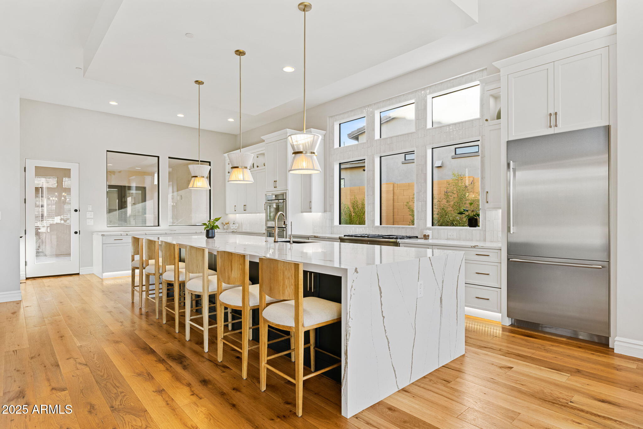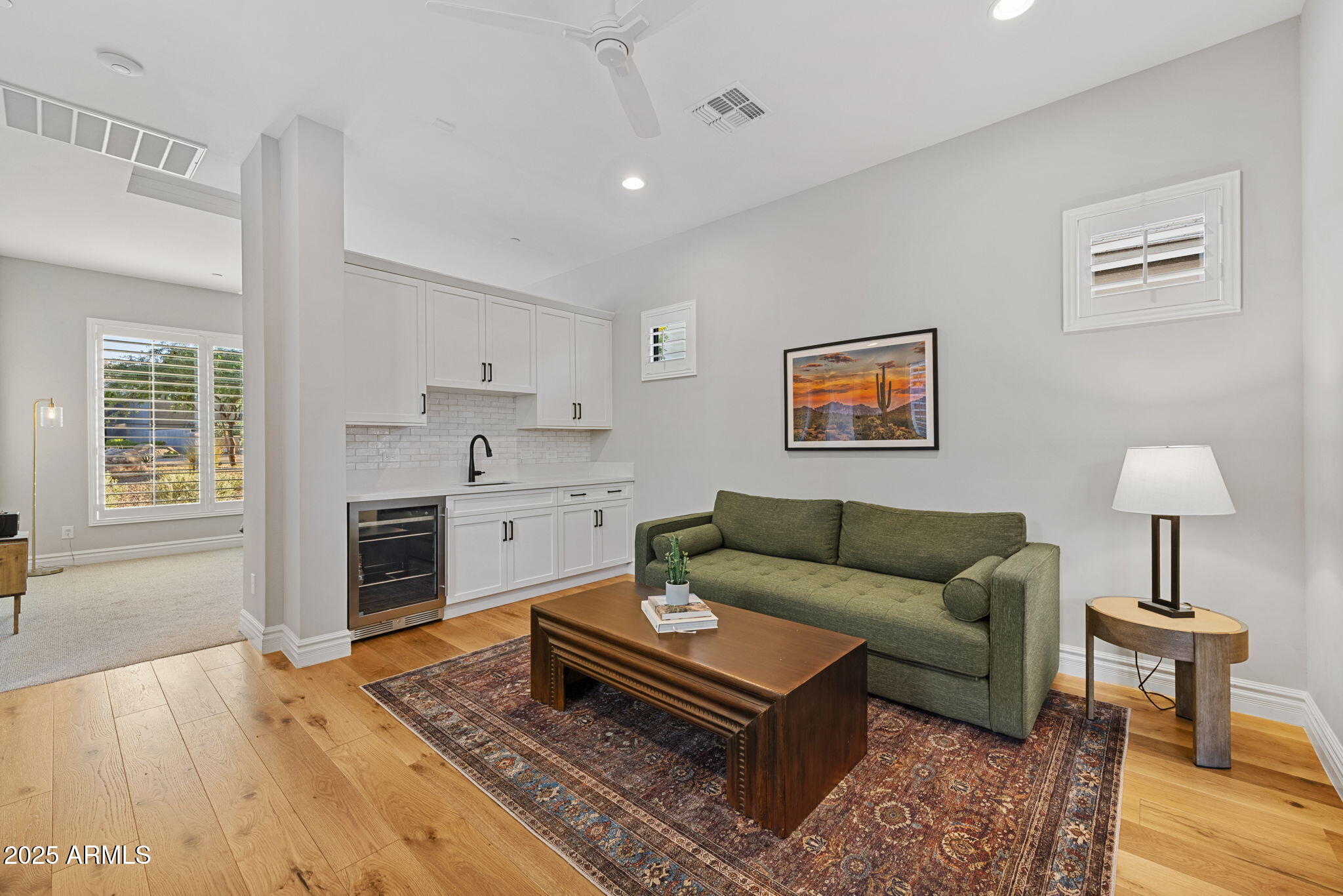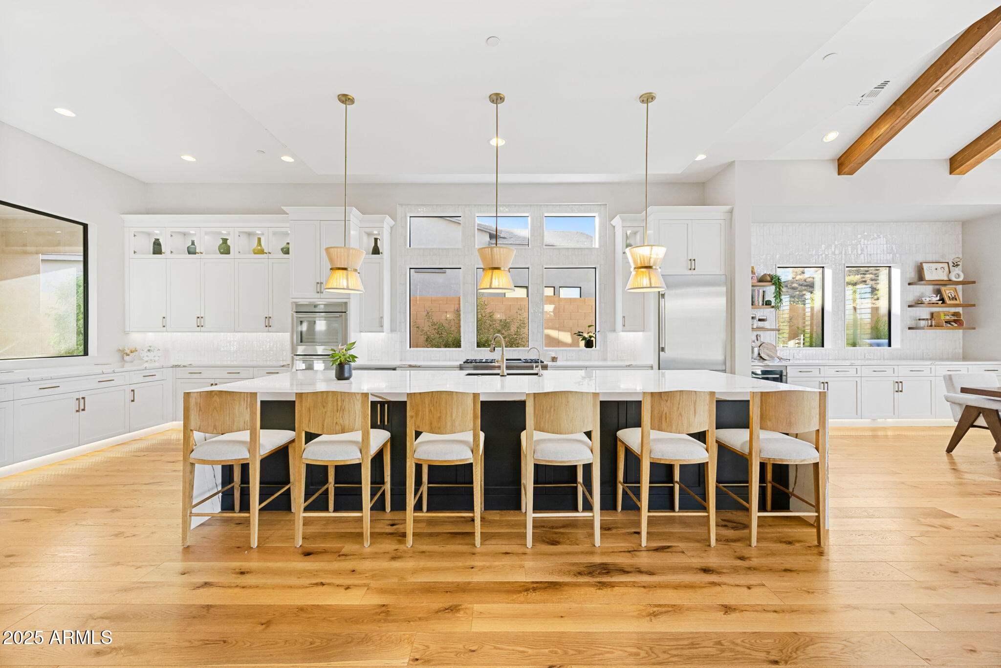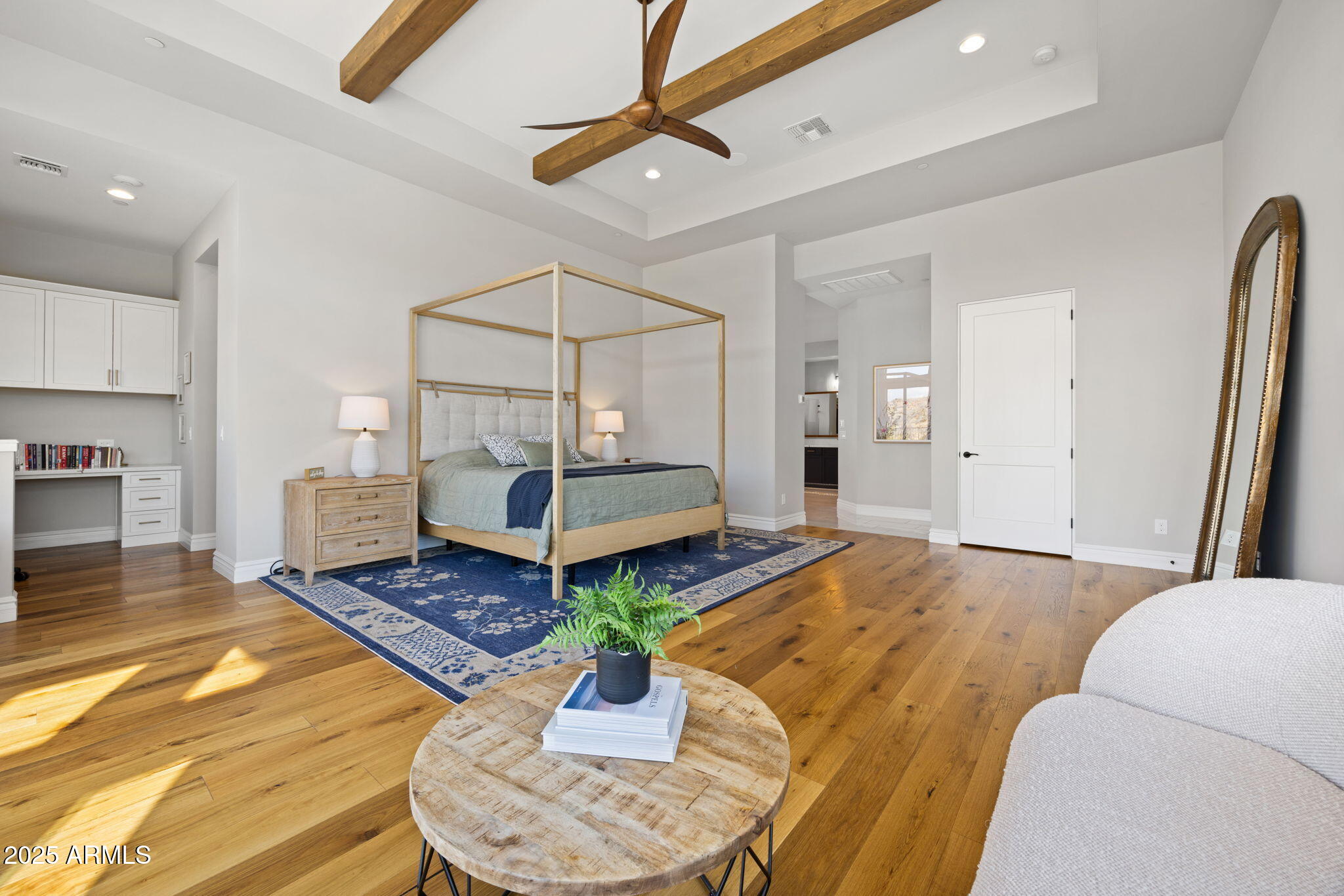 Designed with a bright, open-concept floorplan, this newer-built home showcases nearly $300,000 in top-tier upgrades and custom finishes that complement both contemporary and traditional styles. There is a $30k Control 4 surround sound system to enjoy The seamless indoor-outdoor layout of the home. Sliding glass doors from the living area to your expansive backyard retreat that is complete with a sparkling pool, built-in BBQ, and multiple lounge areas, all perfectly positioned to capture breathtaking 180deg+ mountain vistas. Inside, the gourmet kitchen is a true showstopper with abundant counter space, and a flowing connection to the dining and living areasperfect for entertaining. The main home offers 3 en-suite bedrooms, including a luxurious primary suite with its own sitting area and panoramic views, dual custom walk-in closets, and a beautifully appointed spa-style bath. A dedicated office and versatile flex space provide room for a gym, playroom, or secondary living area. You'll also appreciate the mudroom conveniently located near the expansive 4-car garage. Adding versatility and privacy, the detached casita features a separate living area, full bedroom, and bathideal for guests, multigenerational living, or a private studio.
