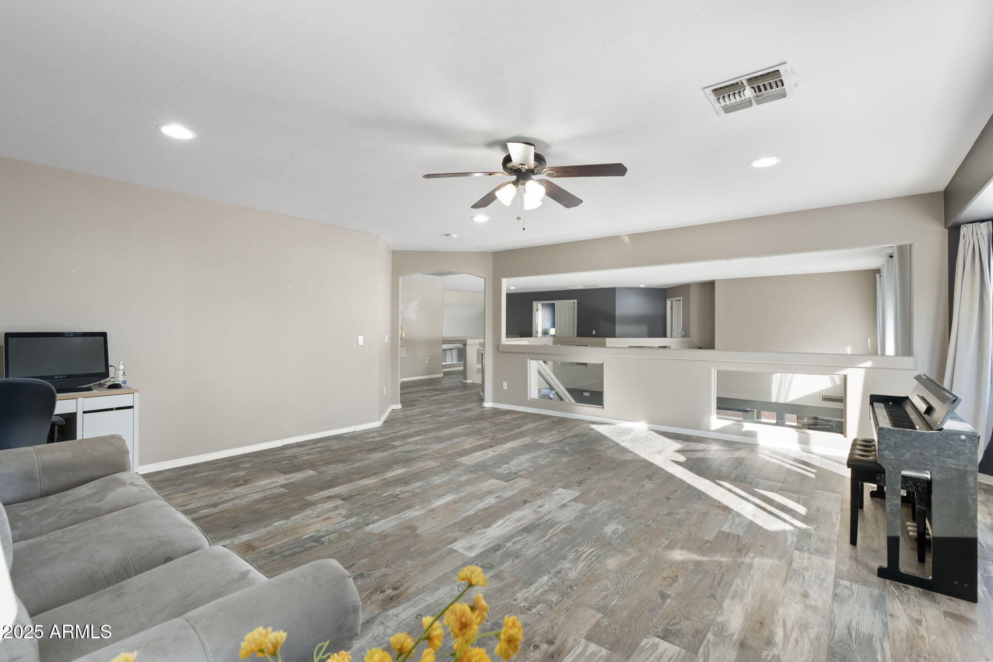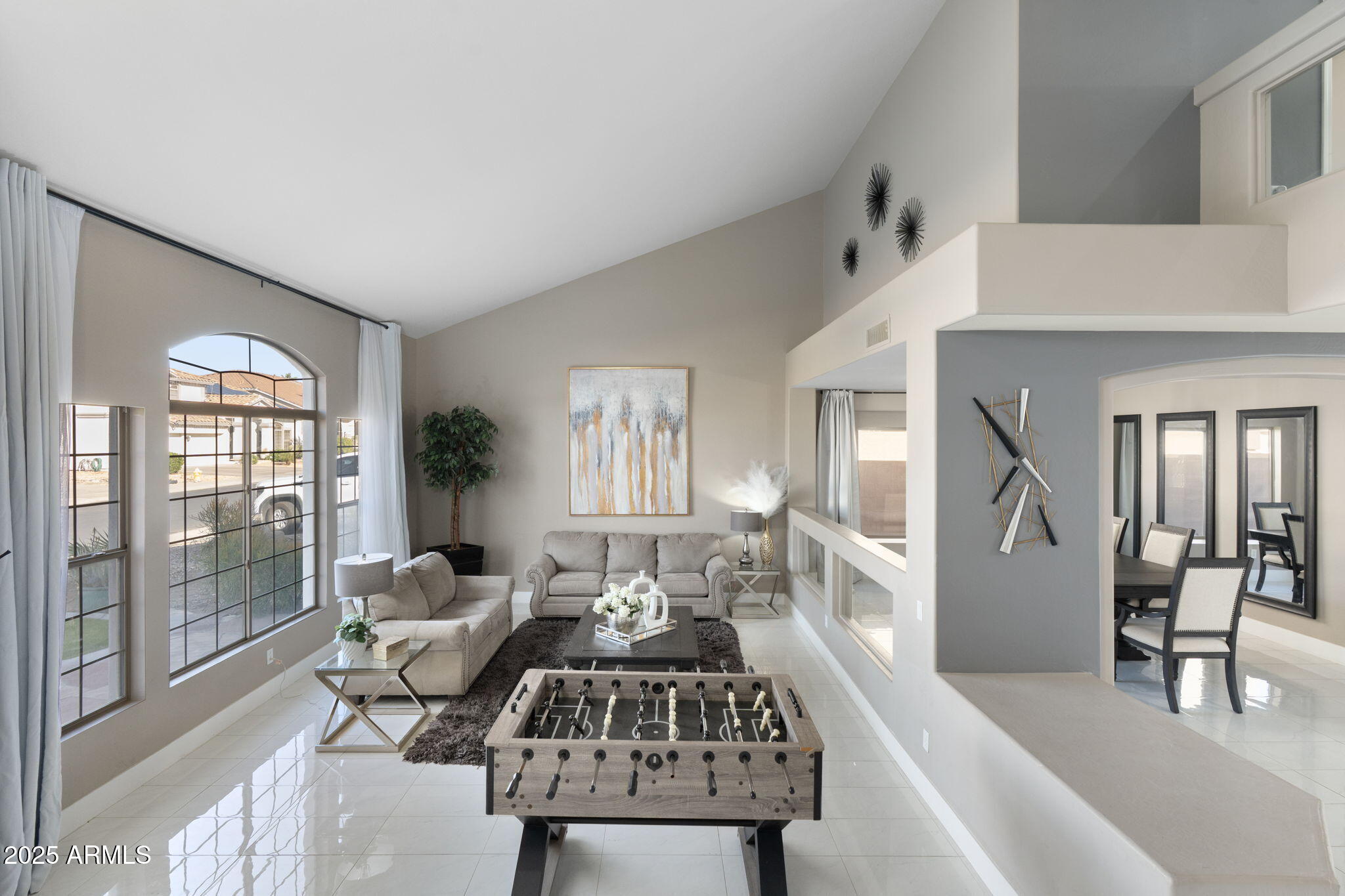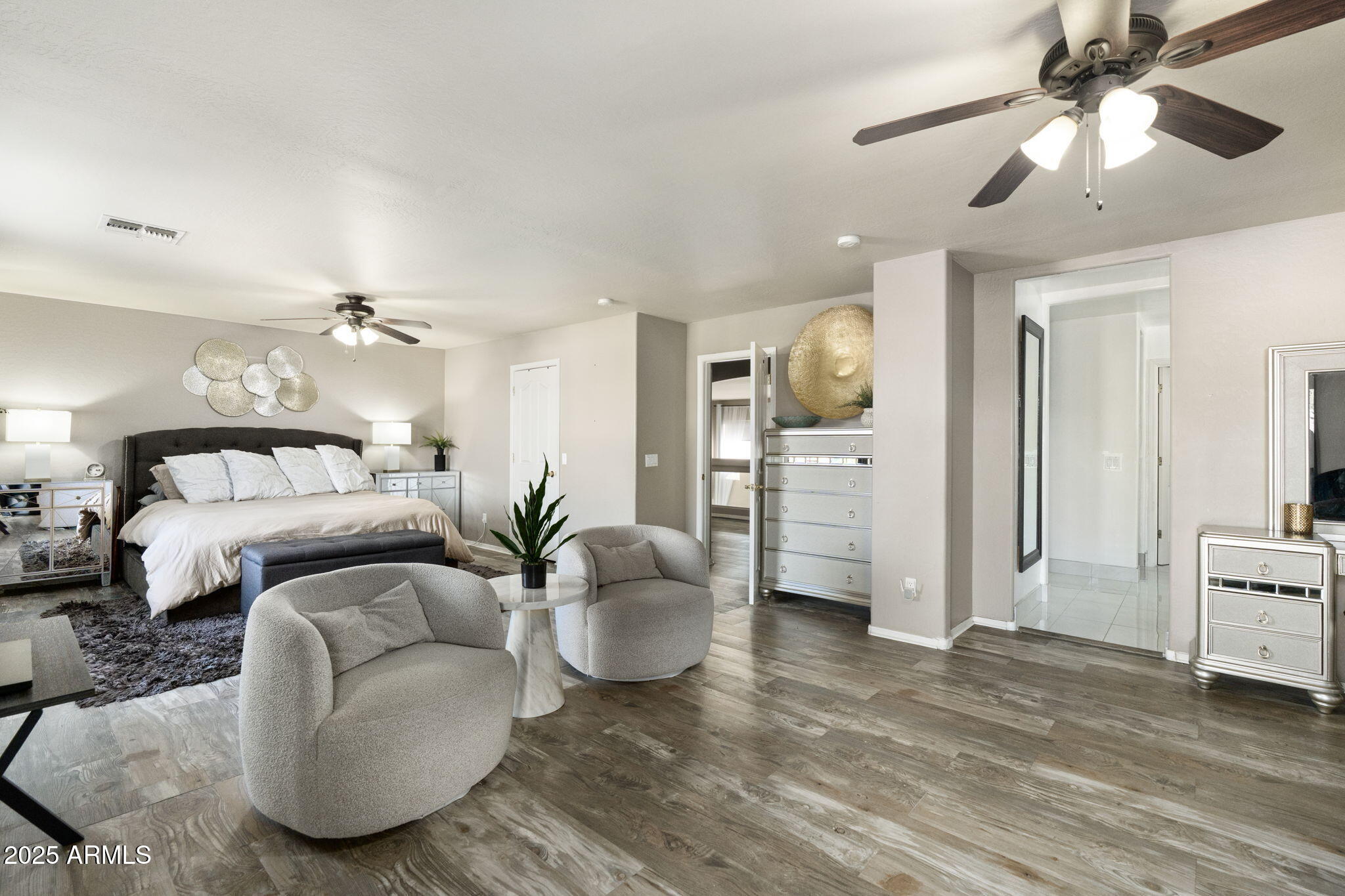 Experience refined living in this BEAUTIFULLY UPDATED Litchfield Park residence, perfectly positioned inside an exclusive GATED COMMUNITY. Flooded with natural light and enhanced by soaring EIGHTEEN FOOT CEILINGS, this home blends modern finishes, thoughtful enhancements, and resort-style outdoor living to create a truly elevated lifestyle. NEW TILE FLOORING (2023) on the main level and NEW MODERN LAMINATE FLOORING (2023) upstairs bring a cohesive, updated feel throughout the home. Every bedroom features its OWN PRIVATE BATHROOM, a rare luxury that provides exceptional comfort for family and guests.