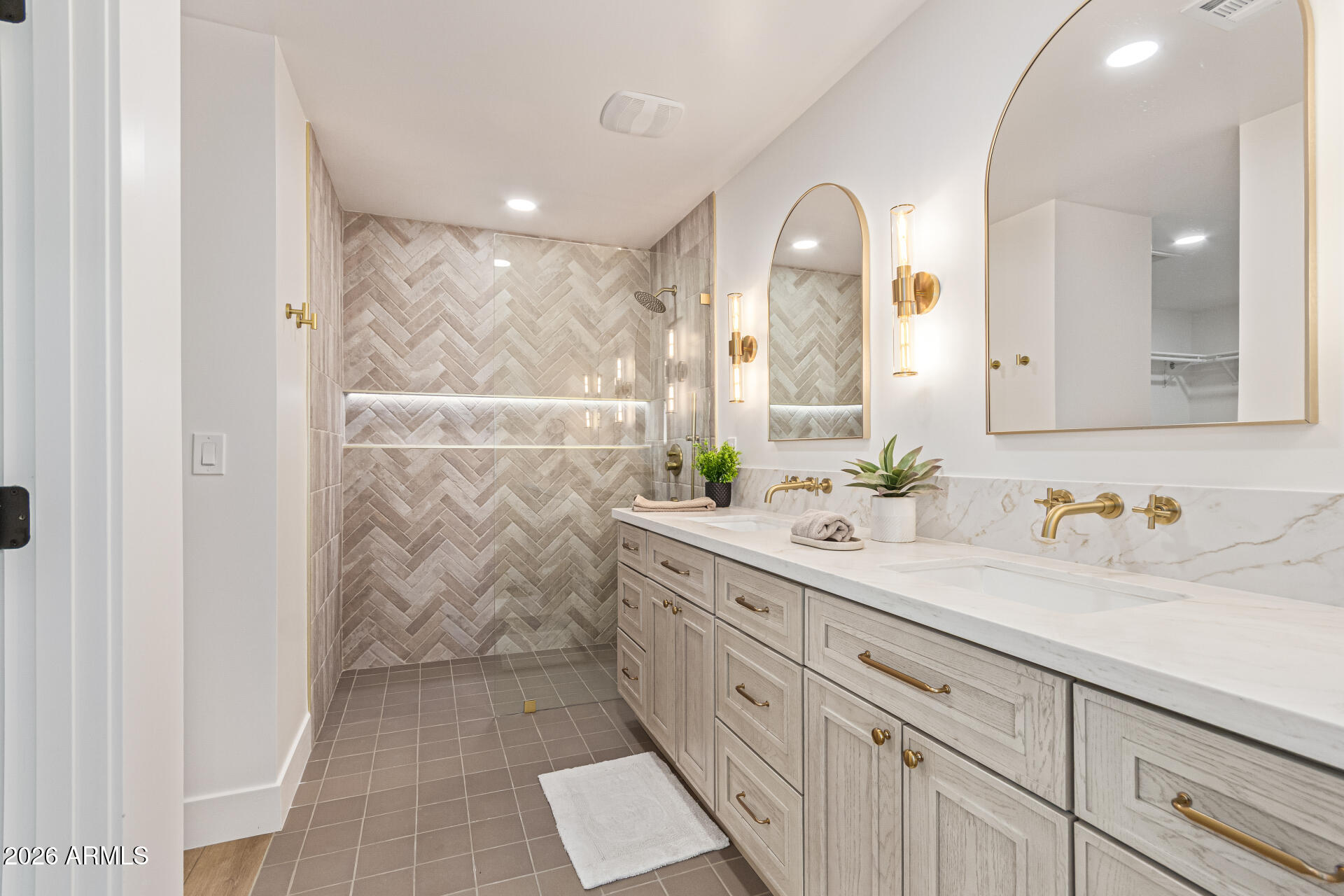 E X Q U I S I T E Golf Course Residence. Inside, you'll find a perfectly flowing layout showcasing clean lines in favor of a sleek & modern design. Soothing palette, recessed lighting t/o, & wide plank vinyl flooring are features you'll love! The stunning New kitchen boasts quartz counters, natural oak shaker cabinets, SS custom appliances, pendant lighting, under cabinet plugs & large custom island. End your busy day in one of the Two primary luxurious master suites. Lavish spa-like bathrooms, custom vanities, expansive custom showers with large rain shower heads. Large custom closets in each room. Spend relaxing afternoons in the expansive backyard, plenty of space for entertaining! N/S Exposure. Endless views.... This home is a 10!!!