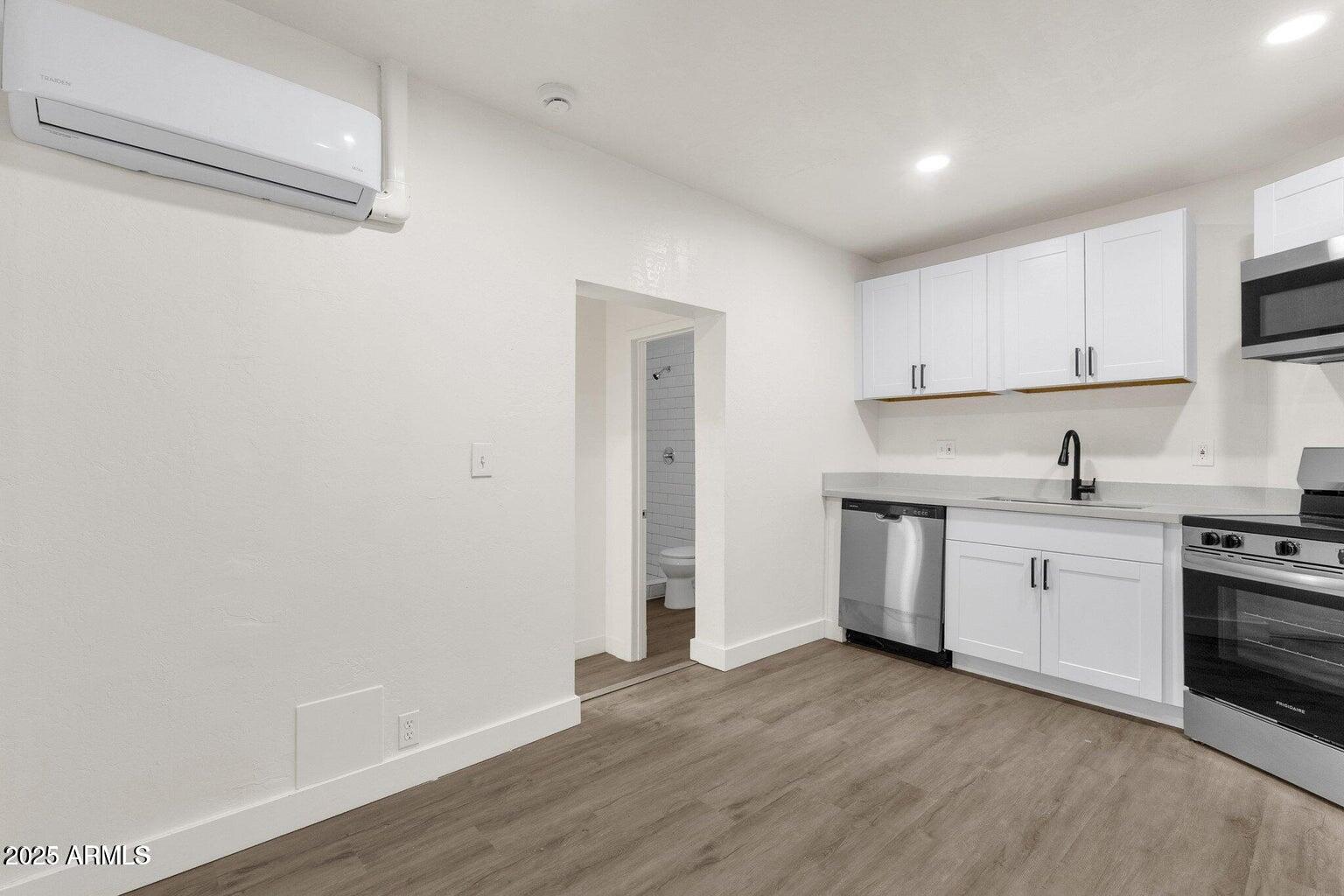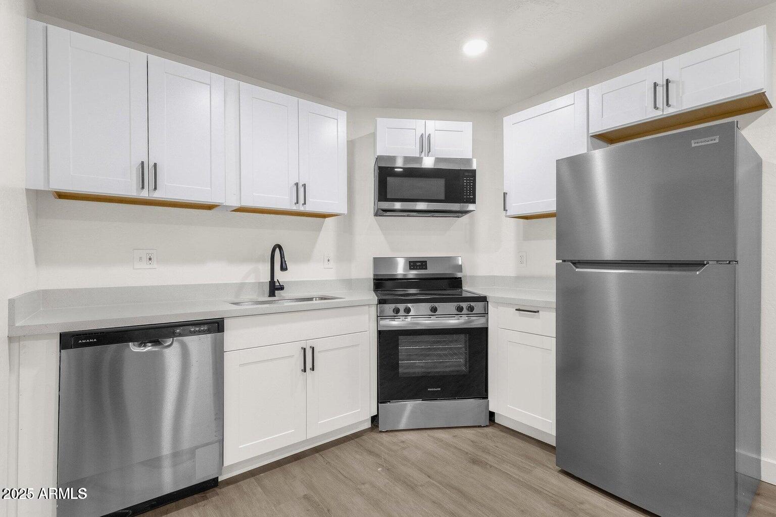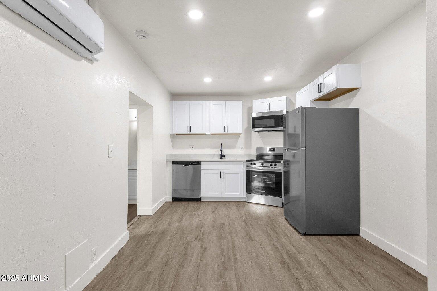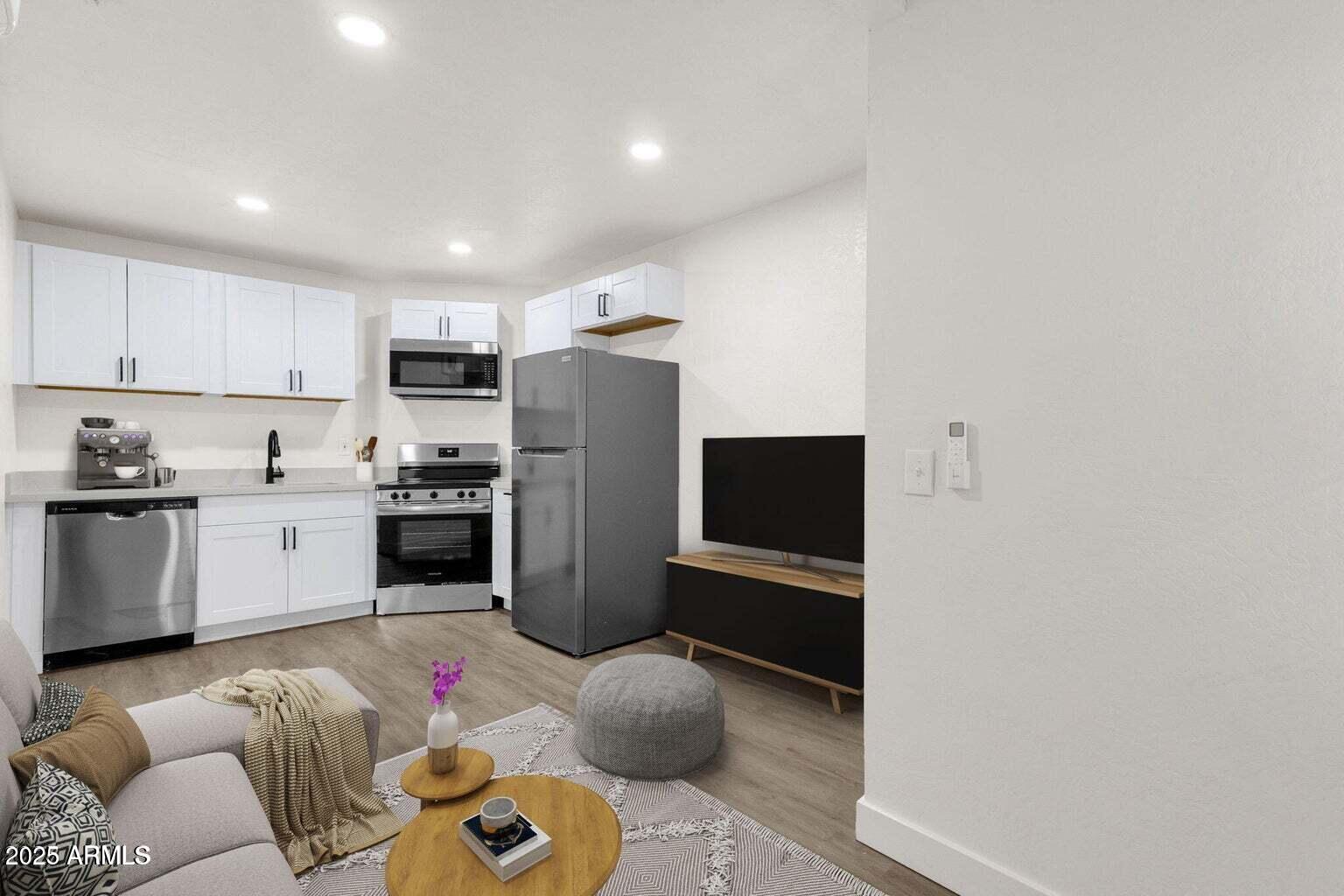 Fully updated in 2025, this stylish single-level 1 bedroom, 1 bathroom home is part of a charming triplex in the heart of Downtown Phoenix. Modern design meets comfort with white shaker kitchen cabinets, quartz countertops, and stainless steel appliances. The vinyl laminate flooring flows seamlessly throughout, complemented by a renovated bathroom. This home also comes with its own washer and dryer for added convenience. A private side yard offers the ideal spot for relaxing, gardening, or enjoying the warm Phoenix evenings. A flat fee of $185 covers all utilities, including water, sewer, trash, and electricity. Perfectly situated just minutes from coffee shops, restaurants, galleries, museums, and Banner Medical Center, this home delivers the best of urban living with modern convenience.