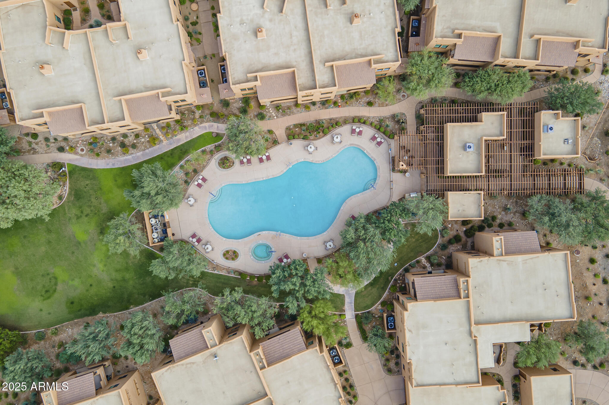 SPECTACULAR DESIGNER DECORATED & HIGHLY UPGRADED spacious 2 bdrm 2 bath UPSCALE LUXURY CONDO located in a NE Scottsdale highly desired GATED community! GROUND LEVEL/NO STEPS. Laerge master bdrm w/ensuite for sitting area or office. Wonderful split open floorplan, light & bright, high vol. ceilings, recessed lighting, solid wood 8' doors w/nickel hardware, upgraded light fixtures, art niches, gourmet kitchen w/granite slab countertops, GAS COOKTOP,& large brkfst bar. Tastefully decorated W/DESIGNER COLORS. Gorgeous HARDWOOD FLOORING W/UPGRADED BASEBOARDS throughout except porcelain tile in bathrooms and laundry room. Large private back patio w/fabulous MTN VIEWS. Simply a fabulous LOCK & LEAVE second home. Arizona living at it's 'FINEST'! Resort-like amenities