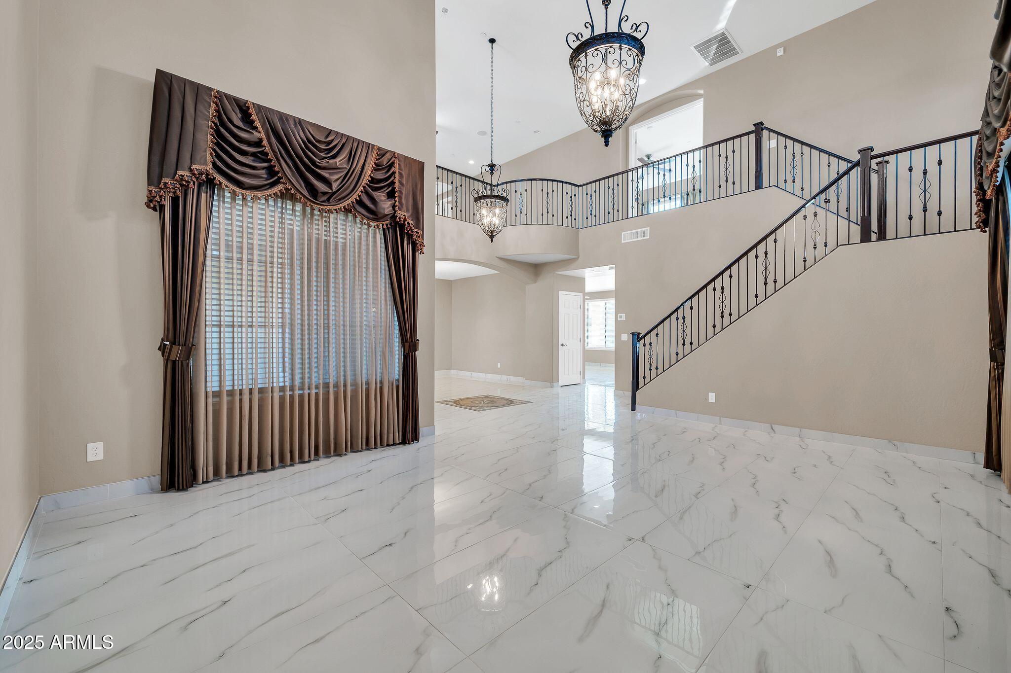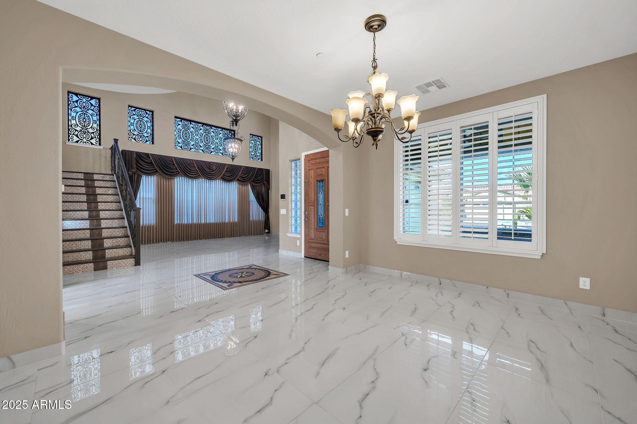 Welcome to this stunning, fully upgraded home, offering luxury and comfort at every turn. As you enter through the grand iron doors, you're greeted by a spacious open floor plan featuring premium finishes throughout. The chef's kitchen is a dream with granite countertops, a sleek backsplash that reaches from the countertops to the ceiling, a gas induction stove top, double ovens, and built-in surround sound that flows seamlessly through the home. The home boasts five generous bedrooms, including a beautiful master suite with dual vanities, a remodeled marble tile shower, and a large walk-in closet. Upstairs, you'll find a sizable loft area perfect for a playroom or office. Each of the four additional bedrooms is spacious and offers ample closet space.