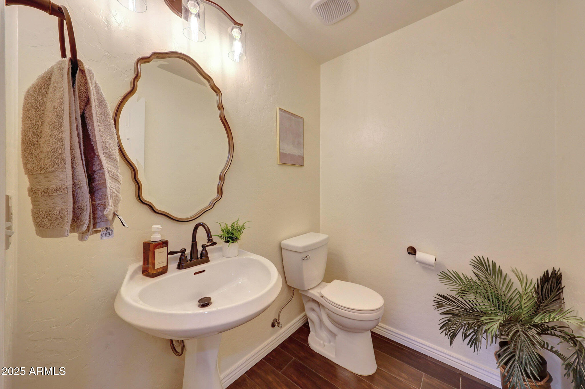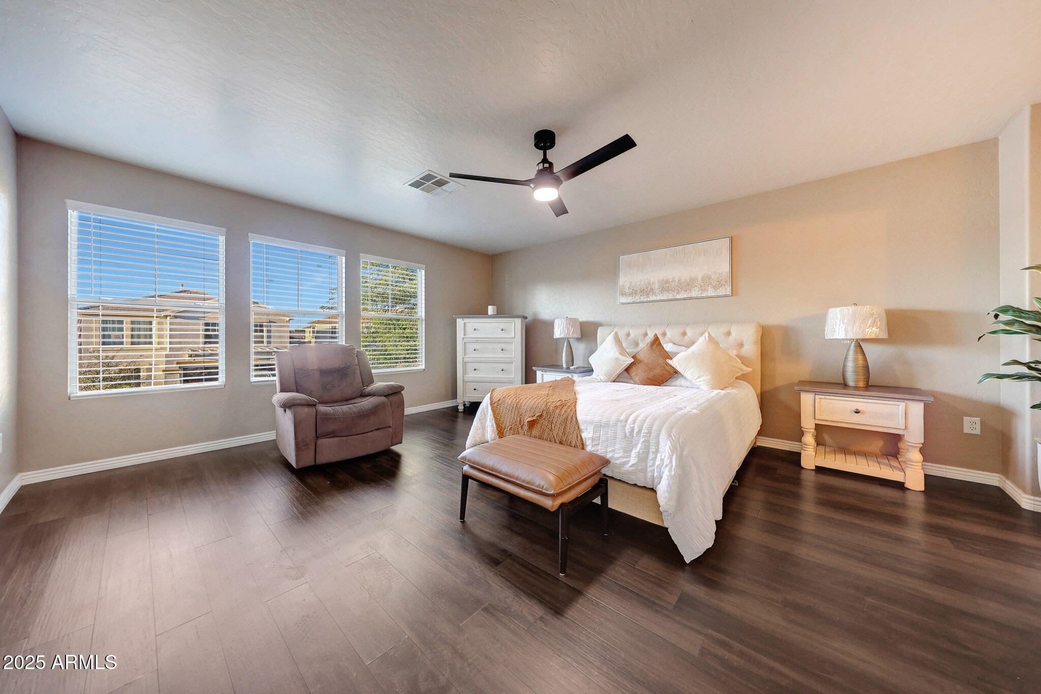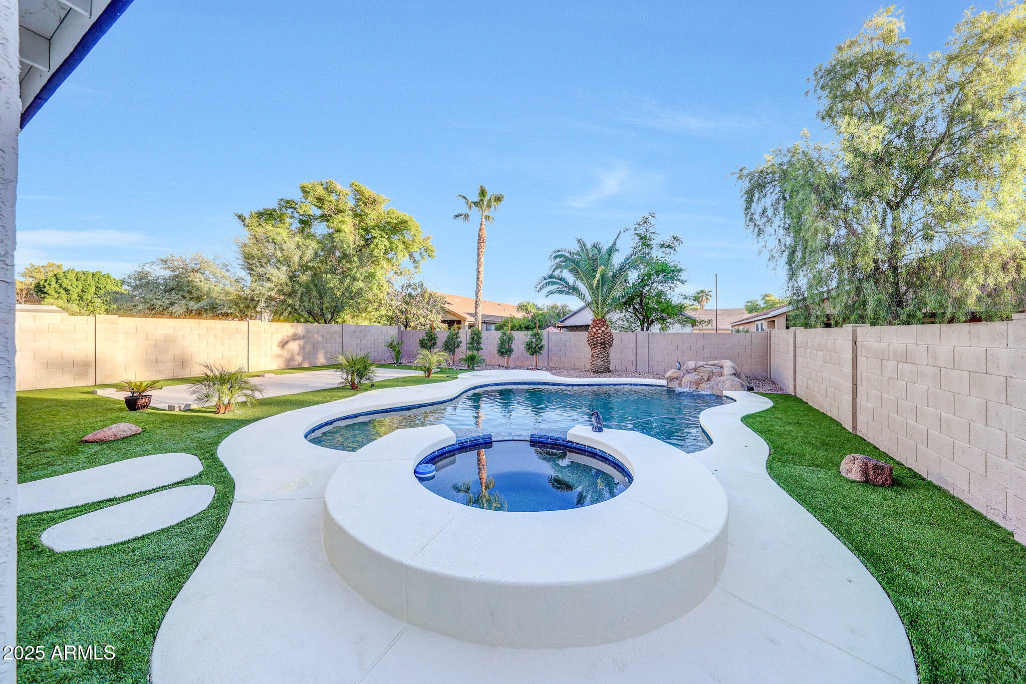 Welcome Home to this beautiful home located in the highly desirable Dreaming Summit community of Litchfield Park.This pristine 2-story home offers 4 bedrooms, 2.5 bathrooms, a loft, and a downstairs den. The updated kitchen features quartz countertops, upgraded appliances, a built-in microwave, and a spacious walk-in pantry. Mission-style stair rails lead you upstairs to a loft/family room and four generously sized bedrooms, including a primary suite with double sinks and large closet. Additional highlights include no carpet, upgraded ceiling fans, custom window treatments, leased solar, and an extended covered patio. The backyard is an entertainer's dream with a private pool, rock waterfall, spa, and extra RV parking. This home truly has it all--come see it today