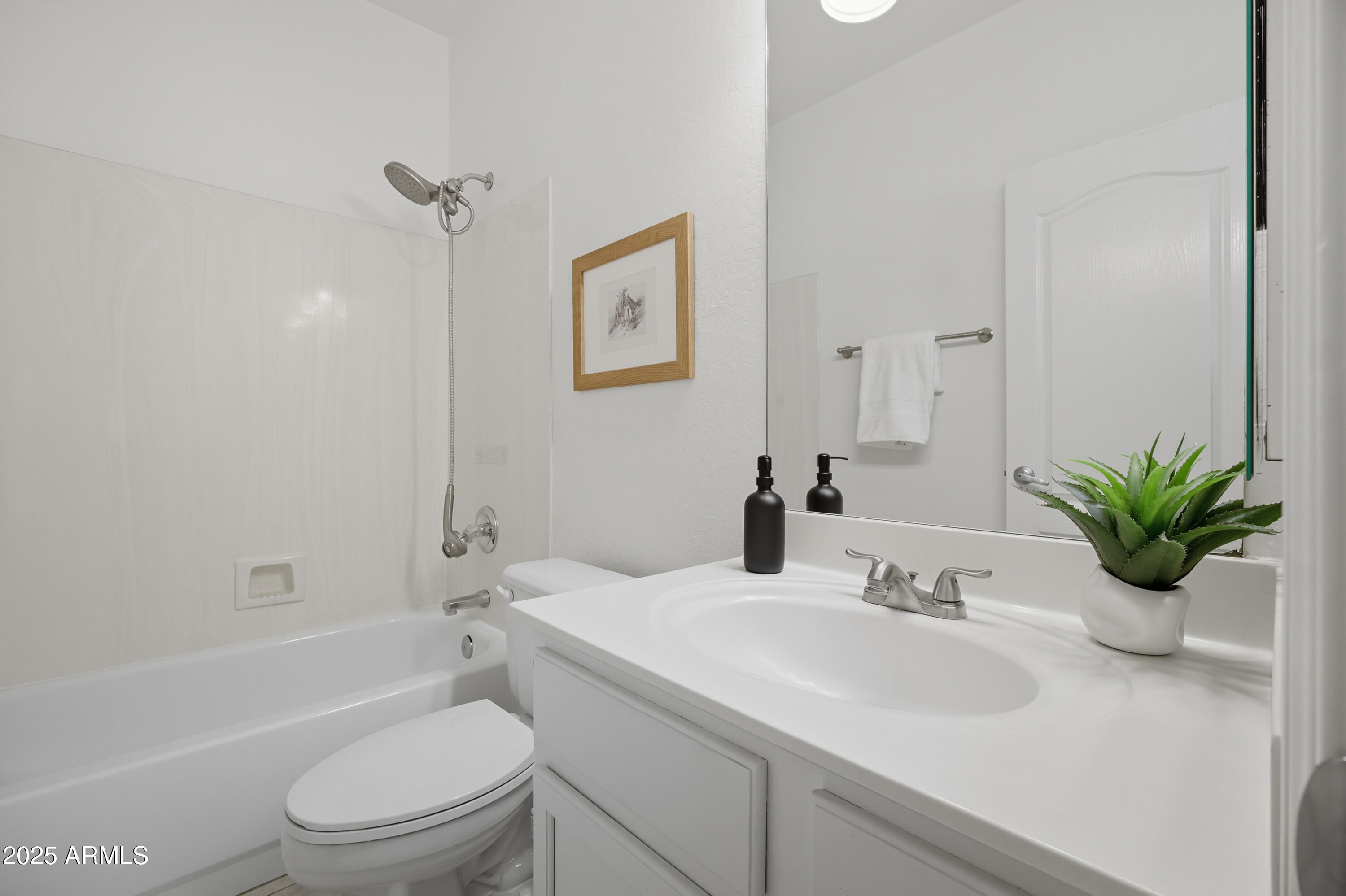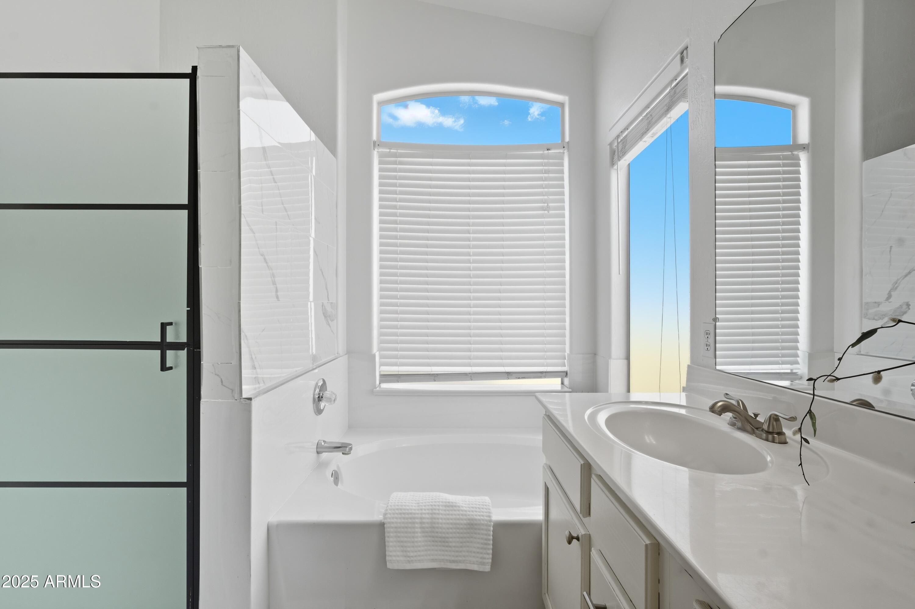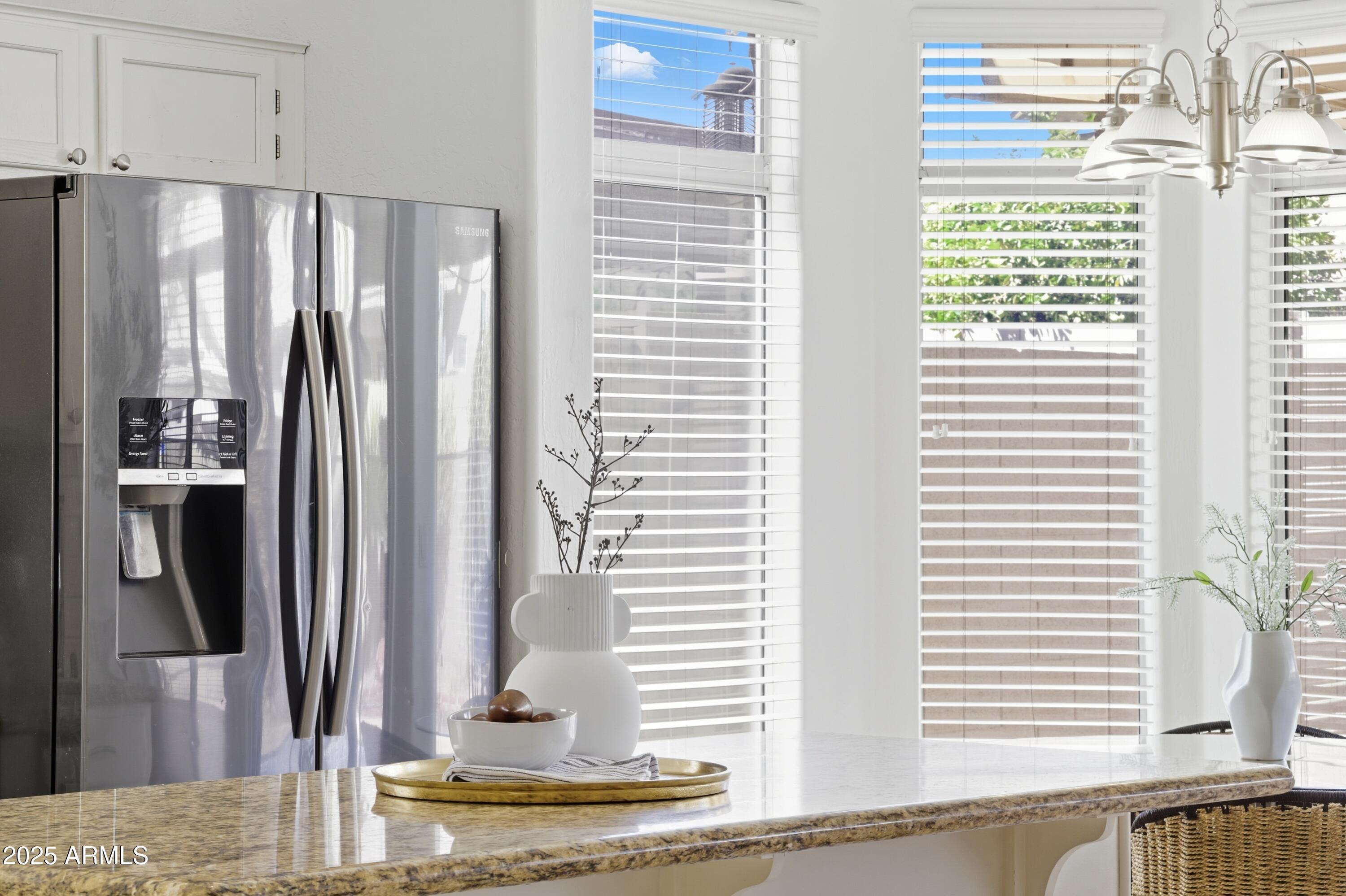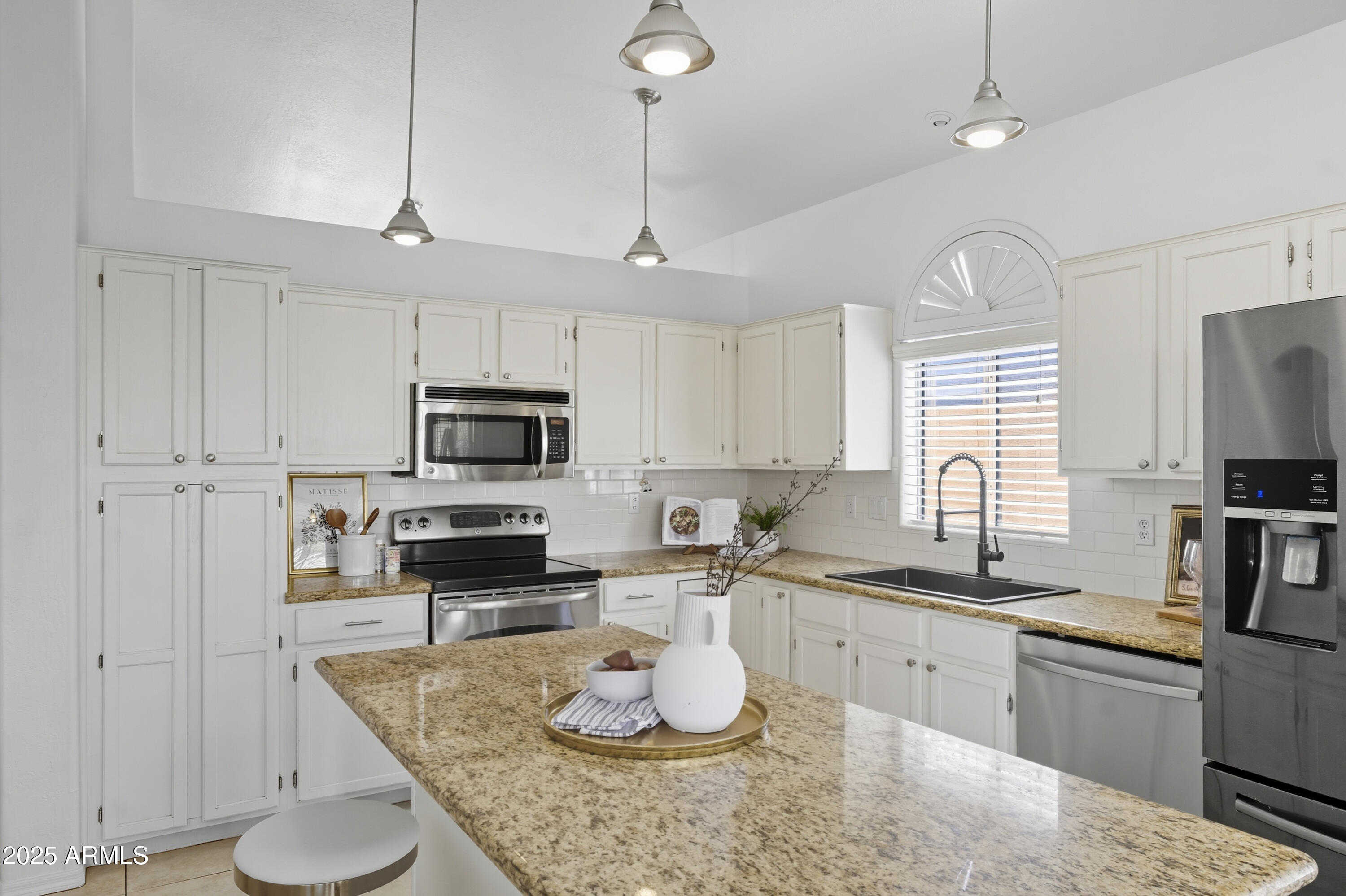 Step inside to an open, light-filled floor plan featuring vaulted ceilings, and a bright, inviting ambiance. The modern kitchen offers a subway tile backsplash, granite countertops, stainless steel appliances, and a large island that opens seamlessly to the family room--perfect for entertaining or relaxing with family. Enjoy serene backyard views from the main living areas, or retreat to the spacious primary suite with dual sinks, a soaking tub, and separate shower. With 4 bedrooms and 2 bathrooms, this home offers flexibility for any lifestyle. Step outside to your backyard oasis and cool off in the sparkling PebbleTec pool surrounded by lush landscaping and plenty of space to unwind. Located close to top-rated schools, shopping, dining, entertainment, and premier golf, this Palm Valley gem truly has it all. Don't miss your chance to make this home yours!