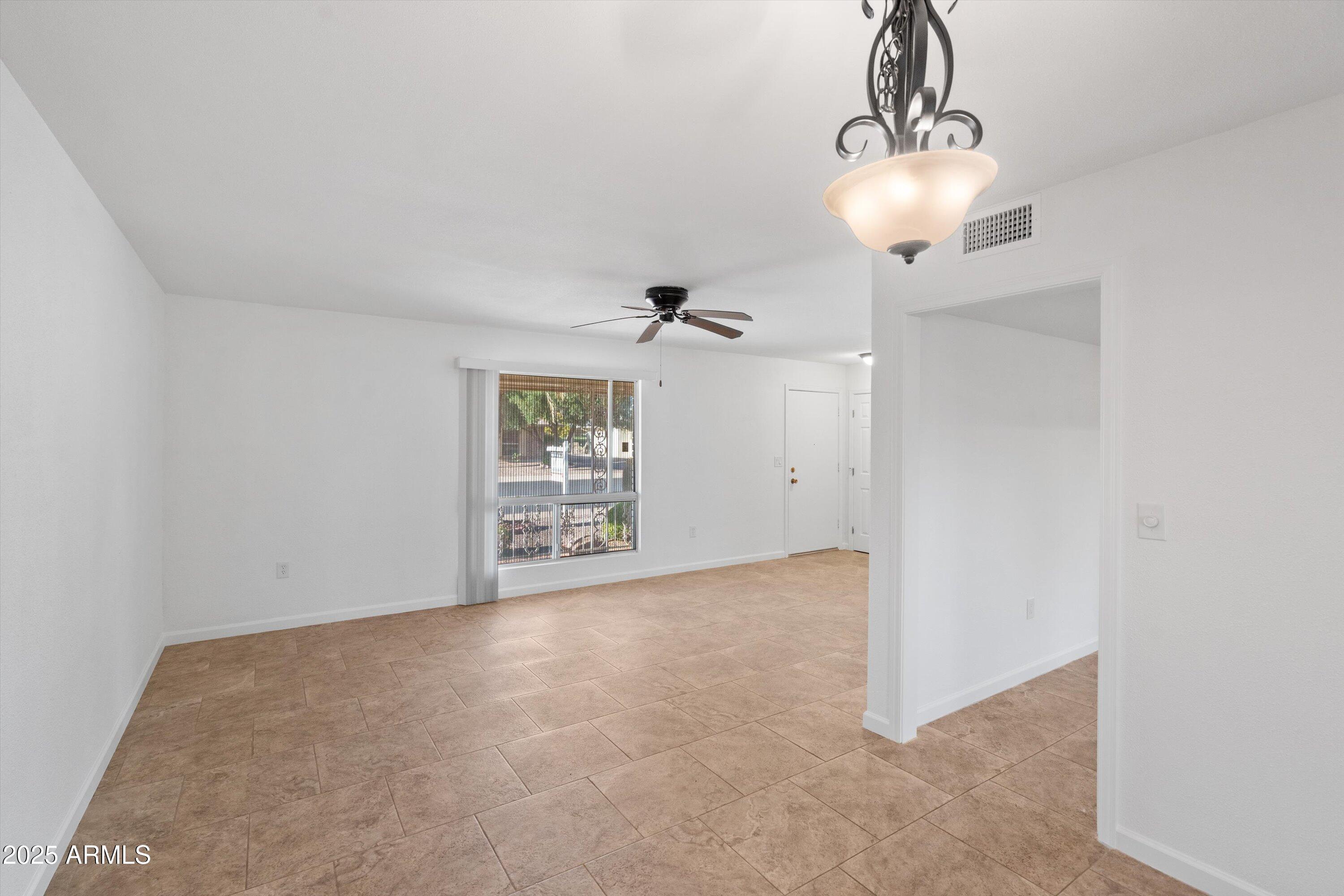 This home has been exceptionally cared for, with a new air conditioner installed in 2021 and a new roof in 2023, giving added peace of mind. Enjoy Arizona's beautiful weather on the spacious covered patio, perfect for morning coffee, relaxing afternoons, or hosting friends on the larger backyard lot. Situated in an unbeatable location, you're just steps from the Sundial Recreation Center, offering swimming, fitness, clubs, and community activities, as well as the scenic Lakes East Golf Course, ideal for a quick round or a stroll with views. You'll also appreciate being close to the Loop 101, Arrowhead Mall, restaurants, medical facilities, grocery stores, and all the conveniences Sun City is known for.