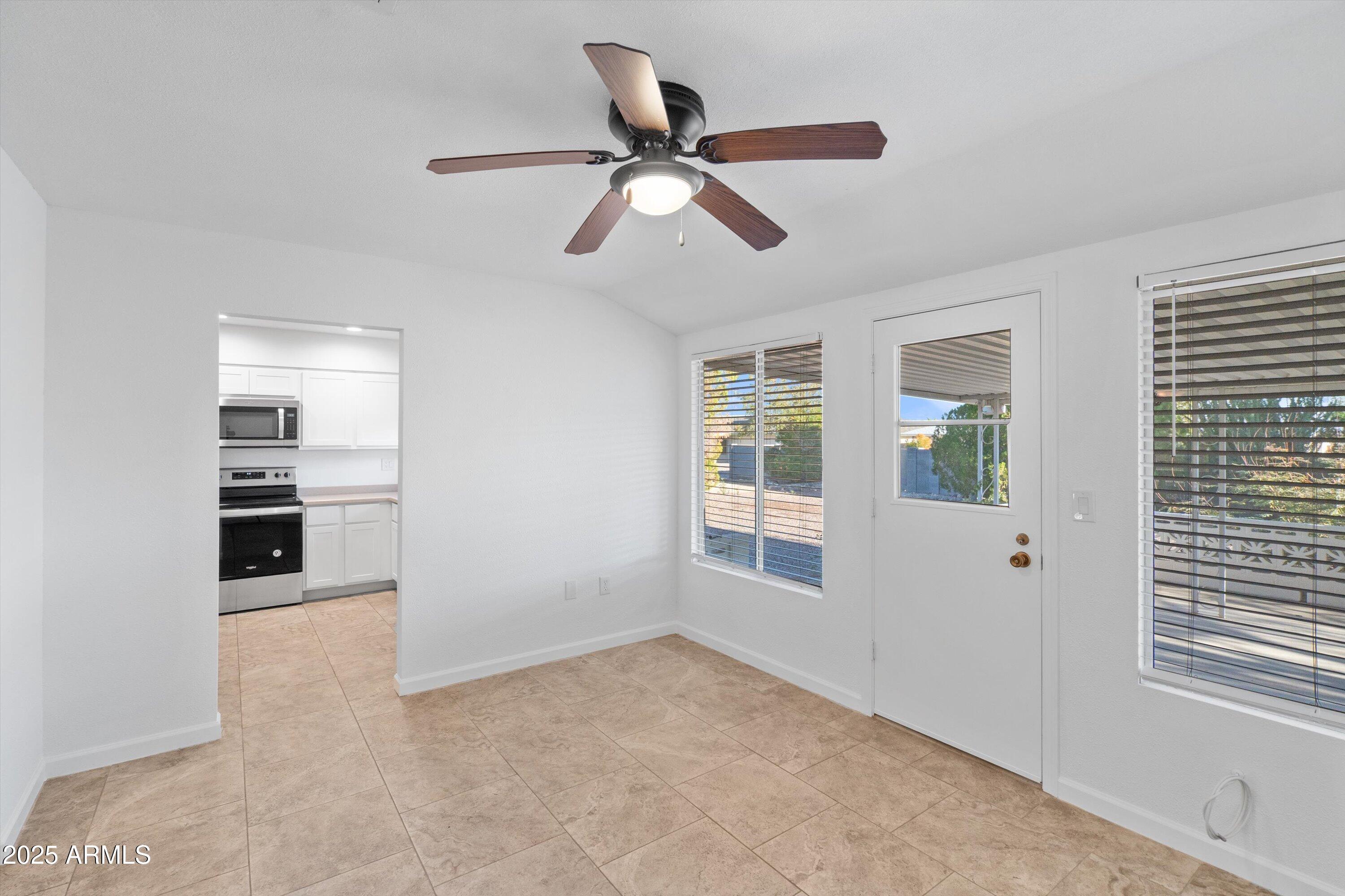 Discover easy, low-maintenance living in this wonderfully updated home located in the highly desirable Phase 2 of Sun City. Thoughtfully remodeled in 2020, this charming residence features stainless-steel appliances, updated cabinets and counters, refreshed bathroom vanities and faucets, and new closet doors. Tile flooring throughout, no carpet offers comfort, cleanliness, and simplicity. Each room includes ceiling fans for year-round comfort.