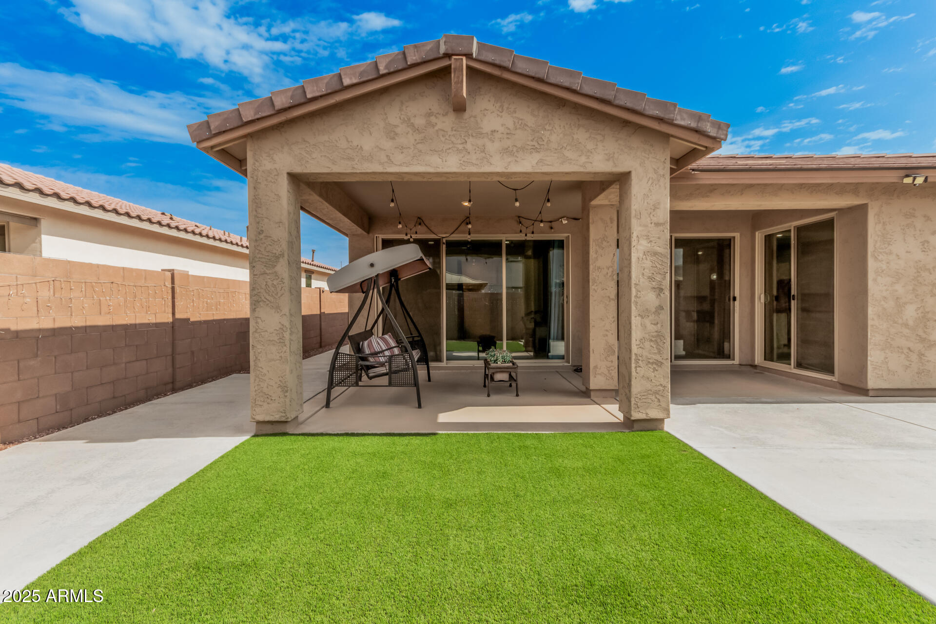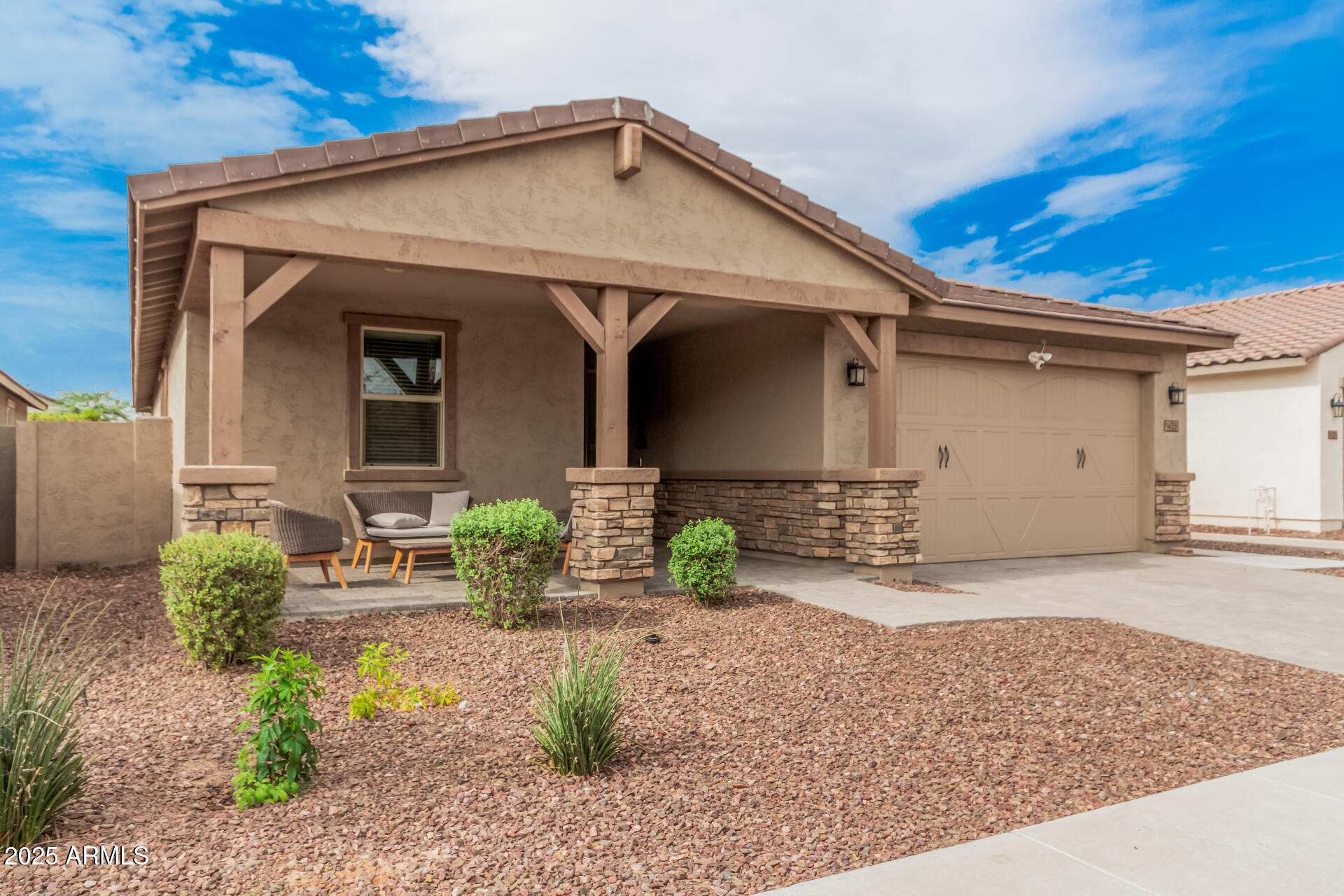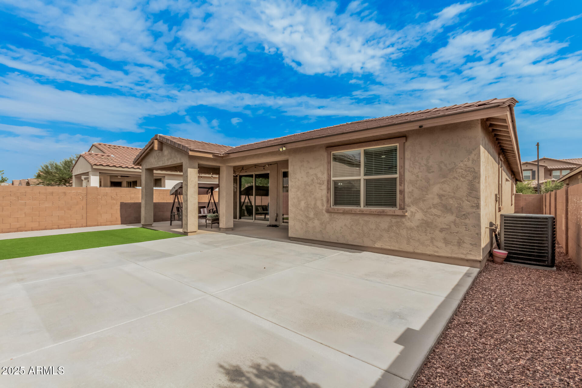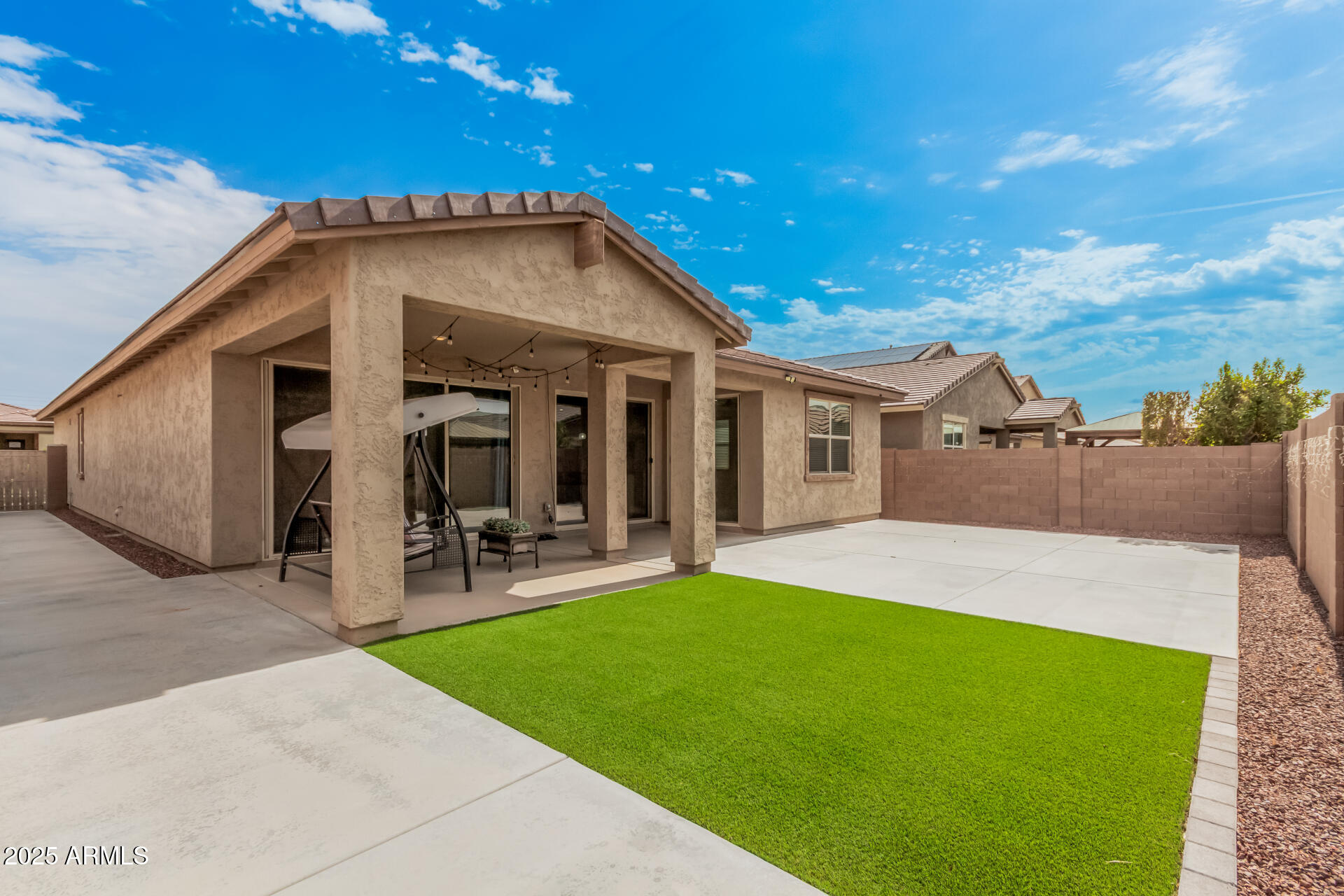 This stunning Marley Park home continues to impress with thoughtfully designed indoor and outdoor features that blend convenience, style, and functionality. It features a 4-bedroom, 3-bathroom spacious home built by Meritage Homes, this popular Lark floorplan offers following recent upgrades: Backyard with artificial grass and concrete, Garage cabinets on both side walls, Laundry room cabinets and a sink, Pull out cabinets in the Kitchen and 2 bathrooms (including master bathroom and guest bathroom), Ceiling fans in all 4 bedrooms and living room, Ceiling lights in all bedrooms, living room, and dining room, Brand new flooring with wood like porcelain tiles - ~$20K upgrade done 7 months ago, Air conditioning complete coil replacement and refill of the refrigerant - ~$2,200 spent last summ spent last summer, RO Water System, Water softener system and a spacious 2-car garage and a layout designed for privacy and comfort. Inside, the gourmet kitchen shines with quartz countertops, stainless steel appliances, a gas range, walk-in pantry, and a large island perfect for gathering. Each bedroom is thoughtfully placed for privacy, including the owner's suite which easily fits a king-size bed and features its own patio sliding glass door, spa-like ensuite with separate tub and shower, and walk-in closet. Bedrooms 2 and 3 share a convenient bathroom with dual sinks and a tub/shower combo, while bedroom 4 is adjacent to a guest bath with a walk-in shower perfect for visitors or a home office. This is one of the rare builders who include spray foam insulation for energy efficiency. Don't miss this rare opportunity to own a move-in ready home in one of Marley Park's most sought-after neighborhoods!
