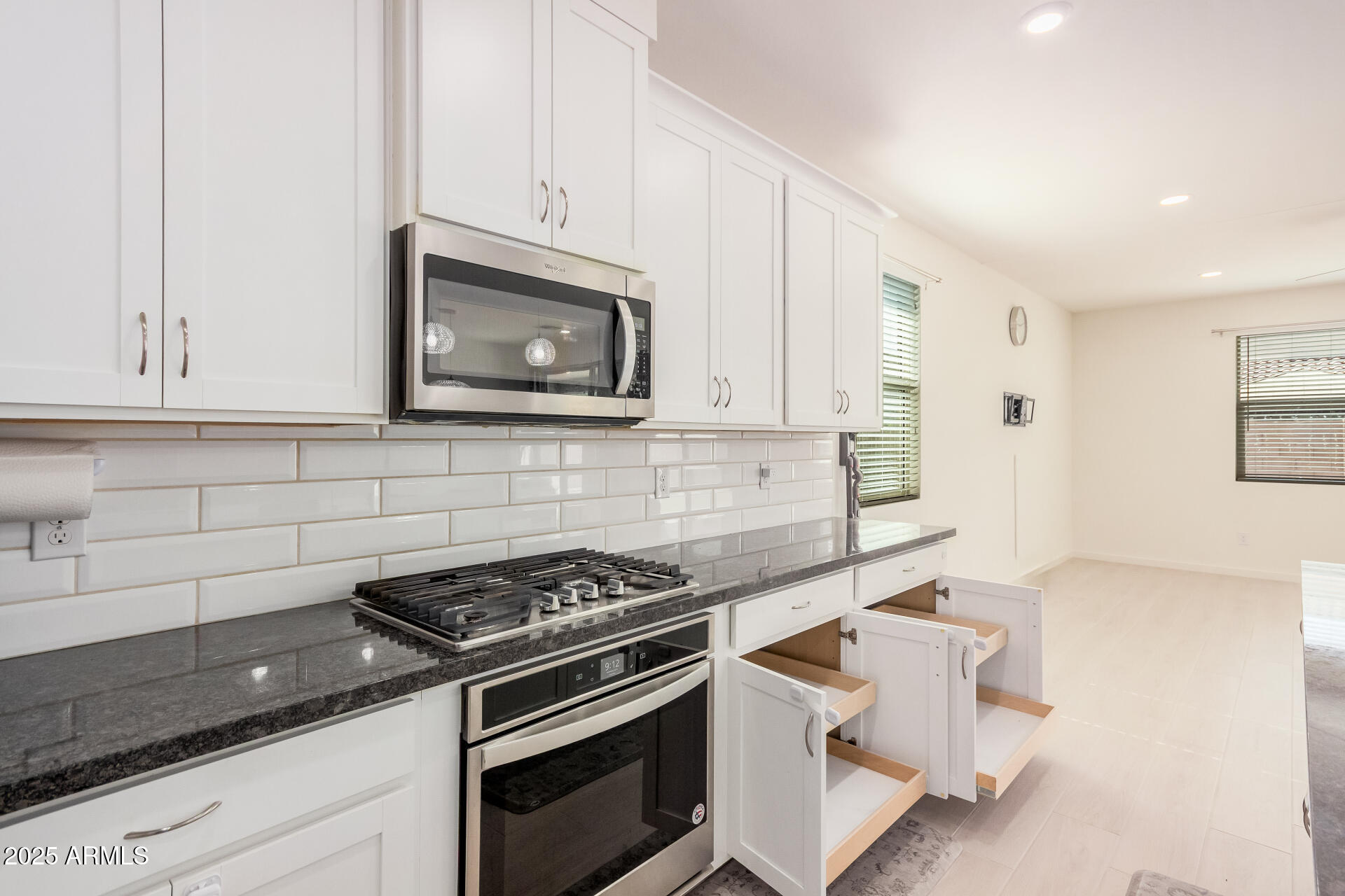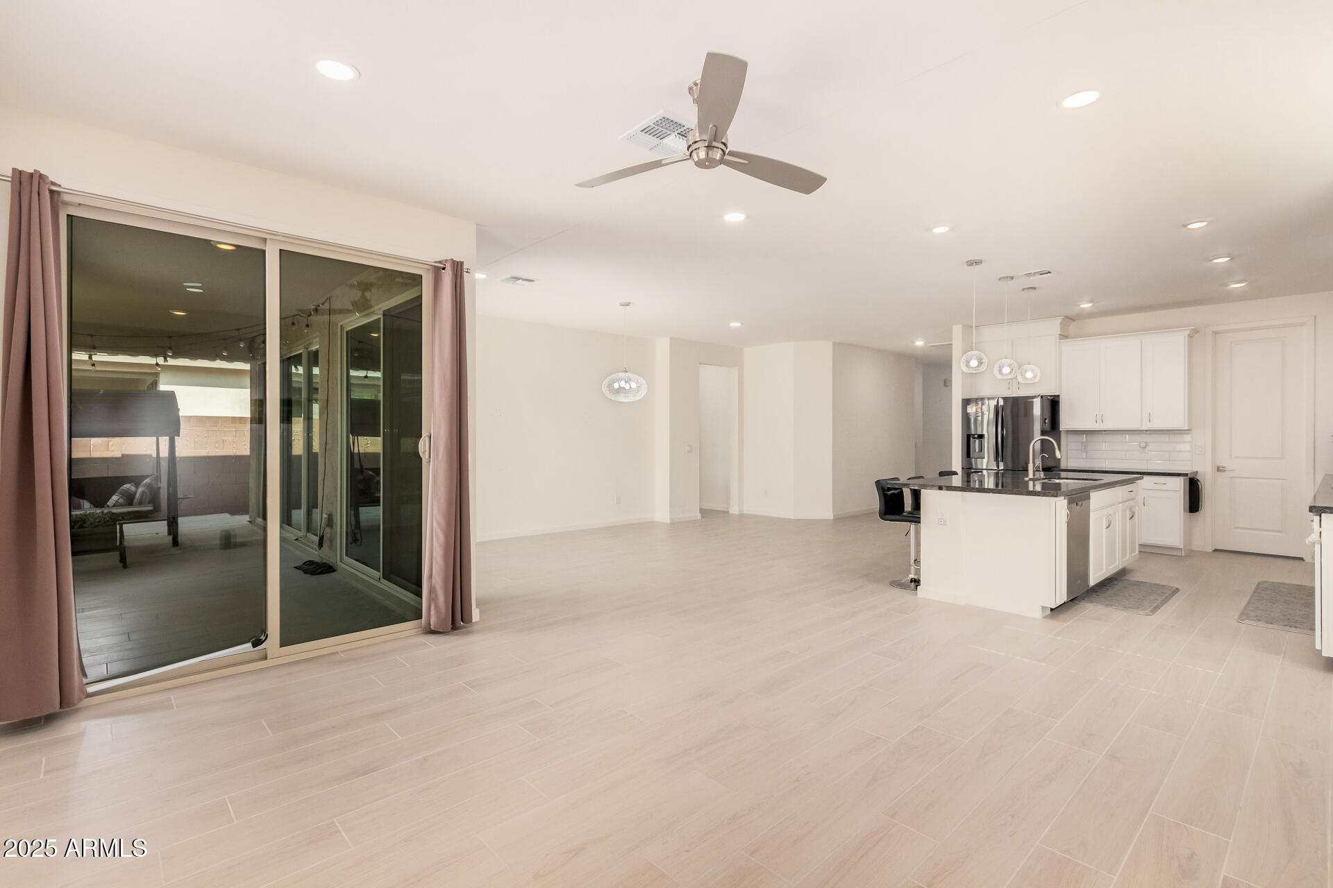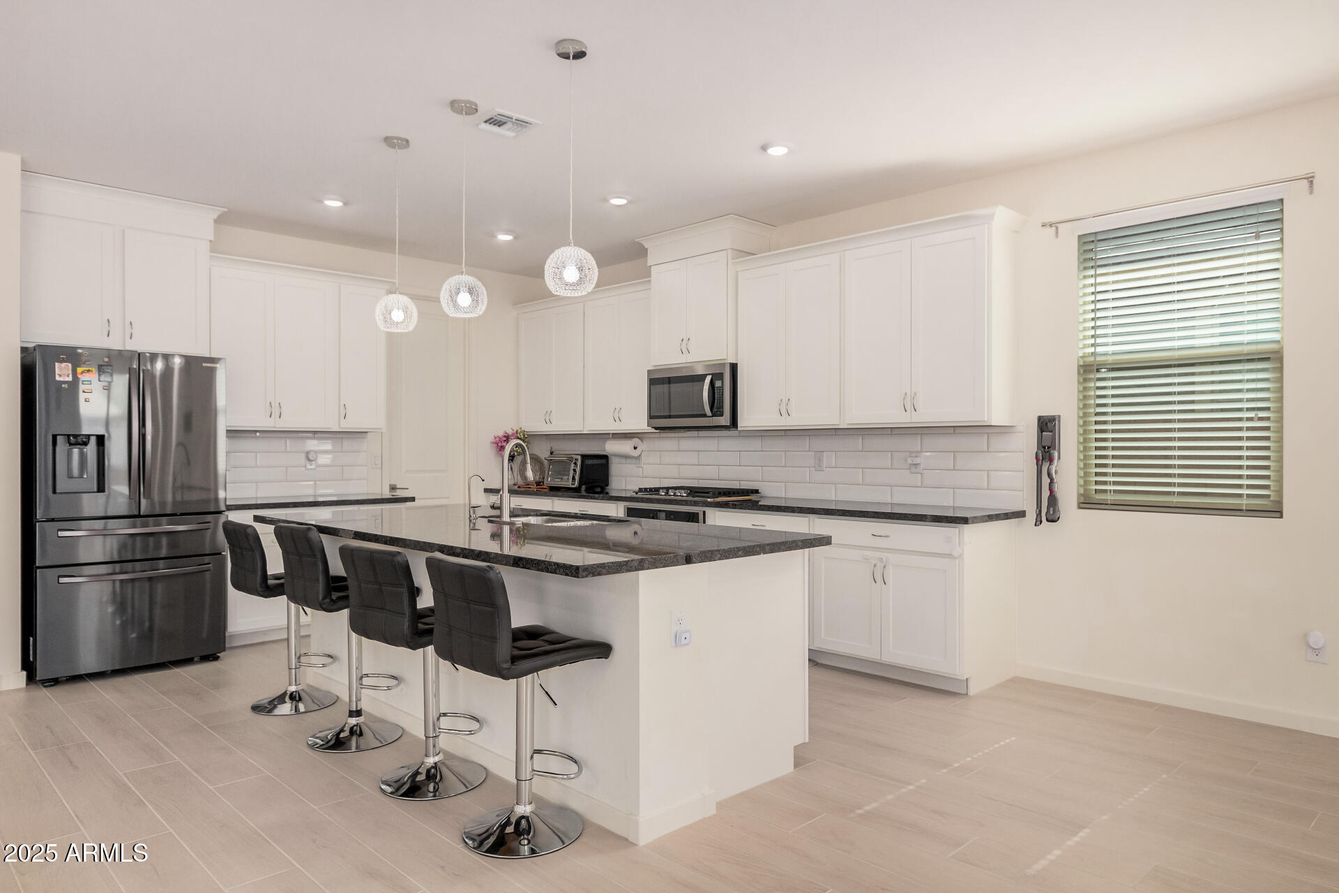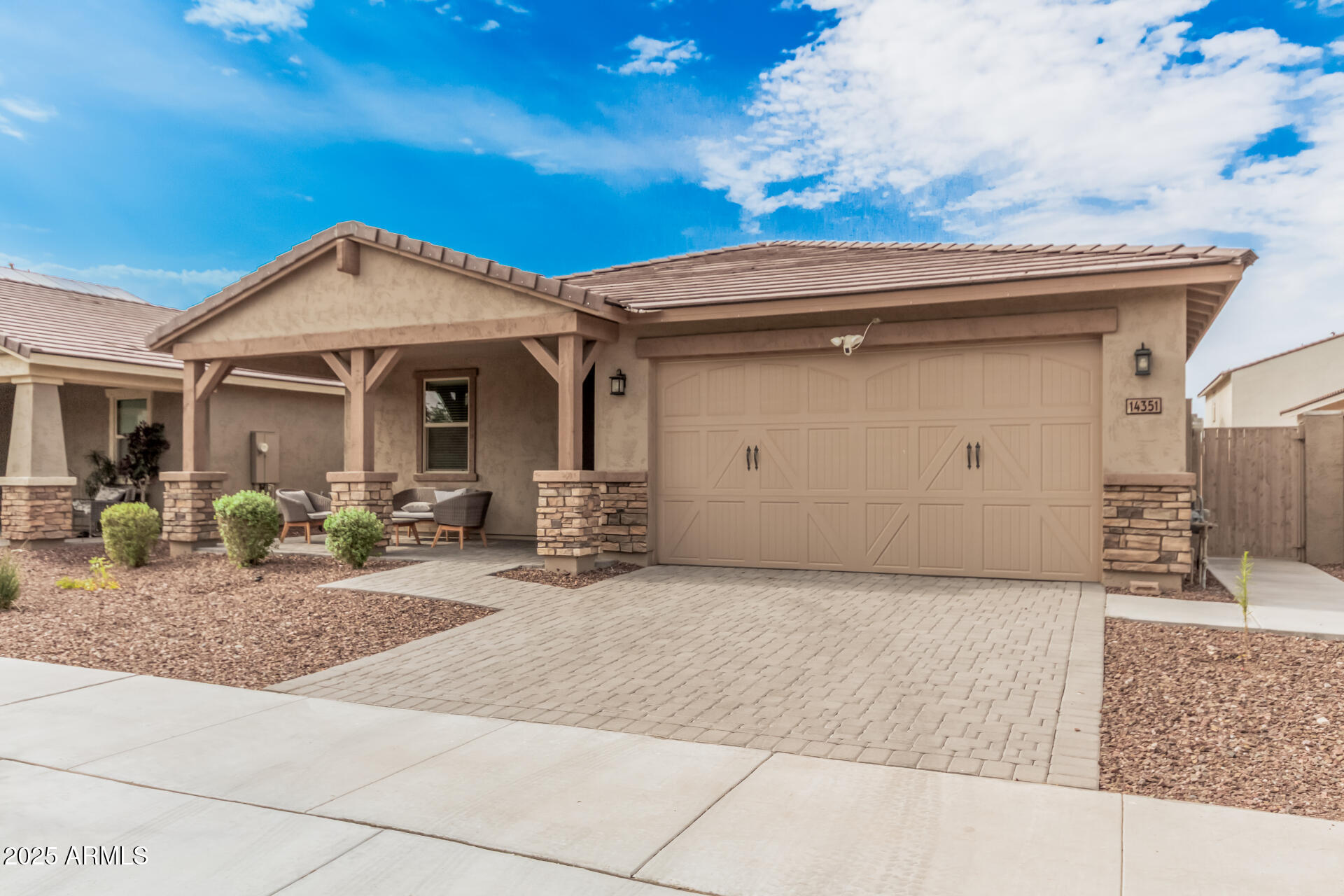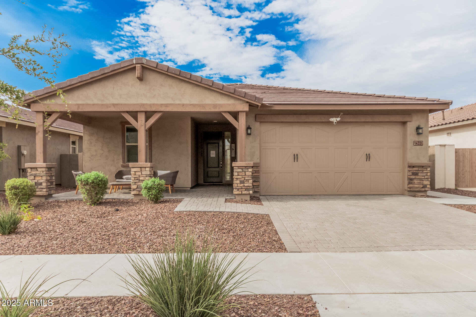 This stunning Marley Park home continues to impress with thoughtfully designed indoor and outdoor features that blend convenience, style, and functionality. It features a 4-bedroom, 3-bathroom spacious home built by Meritage Homes, this popular Lark floorplan offers following recent upgrades: Backyard with artificial grass and concrete, Garage cabinets on both side walls, Laundry room cabinets and a sink, Pull out cabinets in the Kitchen and 2 bathrooms (including master bathroom and guest bathroom), Ceiling fans in all 4 bedrooms and living room, Ceiling lights in all bedrooms, living room, and dining room, Brand new flooring with wood like porcelain tiles - ~$20K upgrade done 7 months ago, Air conditioning complete coil replacement and refill of the refrigerant - ~$2,200 spent last summ spent last summer, RO Water System, Water softener system and a spacious 2-car garage and a layout designed for privacy and comfort. Inside, the gourmet kitchen shines with quartz countertops, stainless steel appliances, a gas range, walk-in pantry, and a large island perfect for gathering. Each bedroom is thoughtfully placed for privacy, including the owner's suite which easily fits a king-size bed and features its own patio sliding glass door, spa-like ensuite with separate tub and shower, and walk-in closet. Bedrooms 2 and 3 share a convenient bathroom with dual sinks and a tub/shower combo, while bedroom 4 is adjacent to a guest bath with a walk-in shower perfect for visitors or a home office. This is one of the rare builders who include spray foam insulation for energy efficiency. Don't miss this rare opportunity to own a move-in ready home in one of Marley Park's most sought-after neighborhoods!