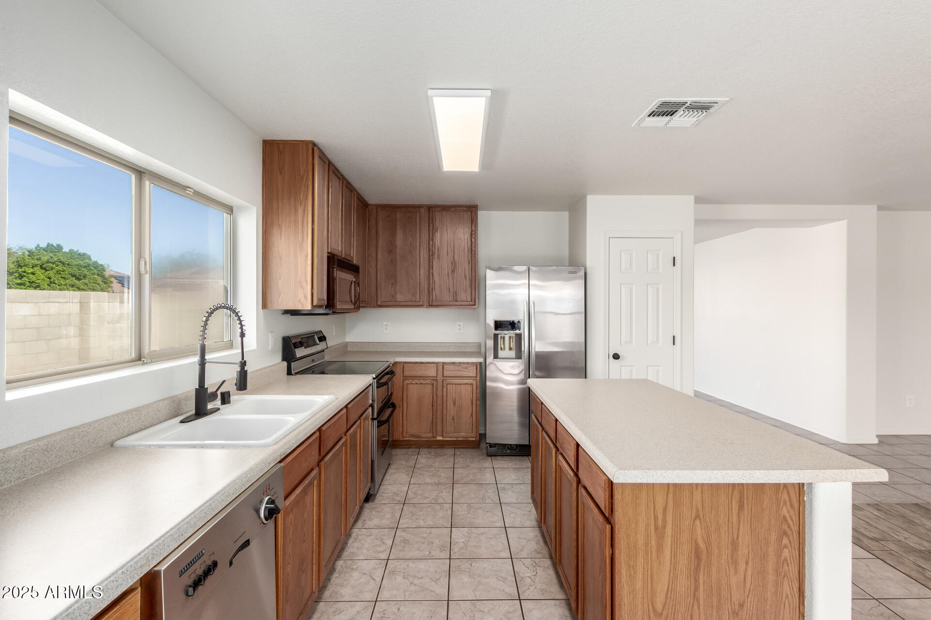 Introducing this beautifully renovated 3-bedroom home, perfectly positioned on a PRIME corner lot with owned solar!! Appealing interior features tile & wood-look flooring, fresh paint, abundant natural light, and ceiling fans. Discover a combined living & dining room and a harmonious great room perfect for both everyday living and entertaining. Lovely kitchen comes with stainless steel appliances, a handy pantry, plenty of cabinetry, and a center island with a breakfast bar. Sizable primary bedroom offers plush carpet, a private bathroom with dual sinks, and a walk-in closet. Versatile den can be converted into a family room, play area, or office. PLUS! With its covered patio, the large backyard is ideal for hosting memorable gatherings or simply unwinding. Don't let this gem slip by!