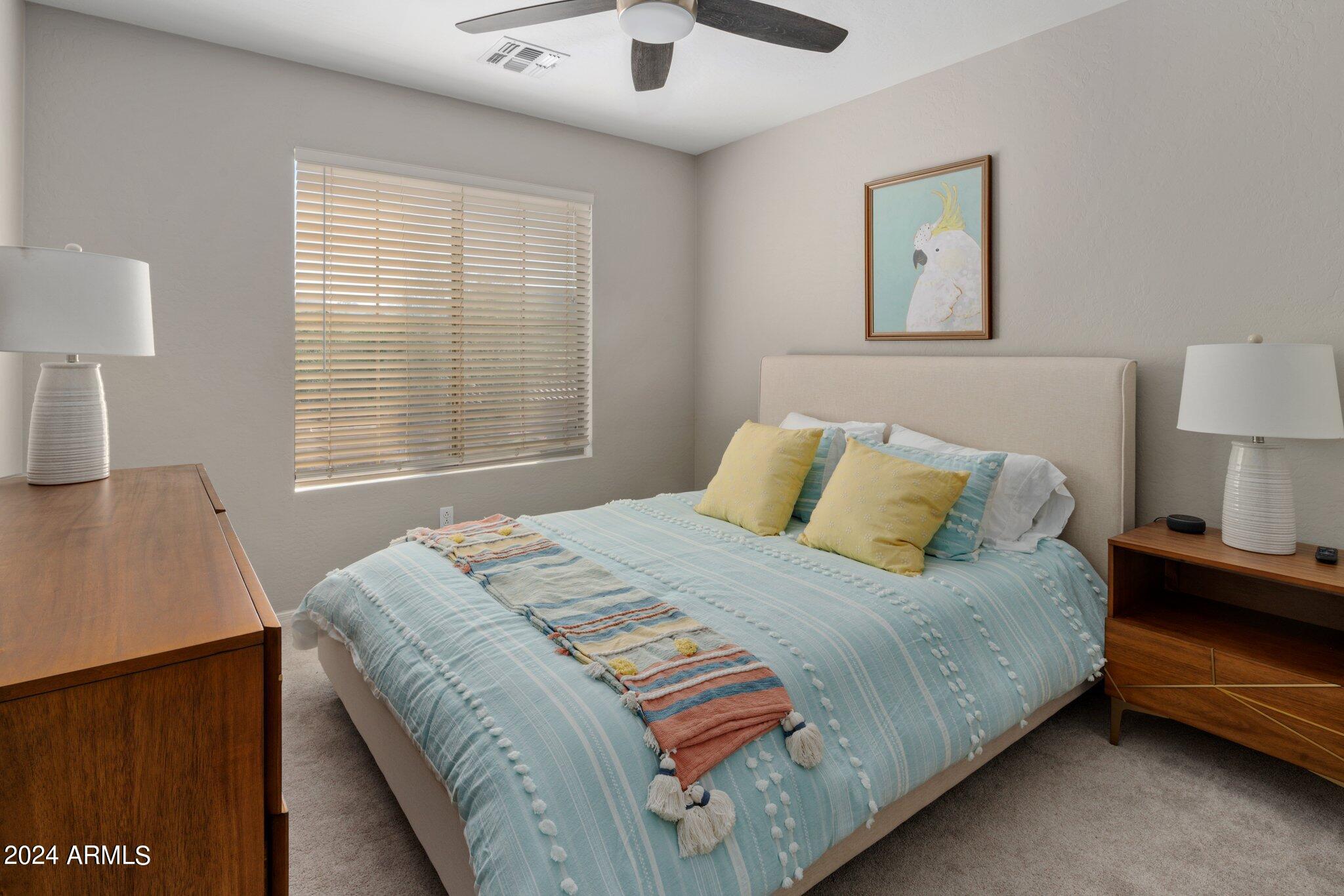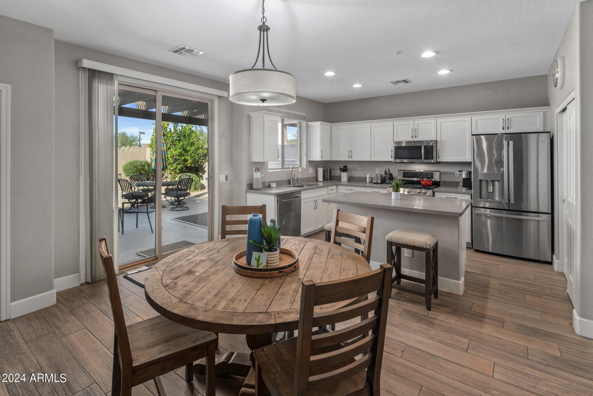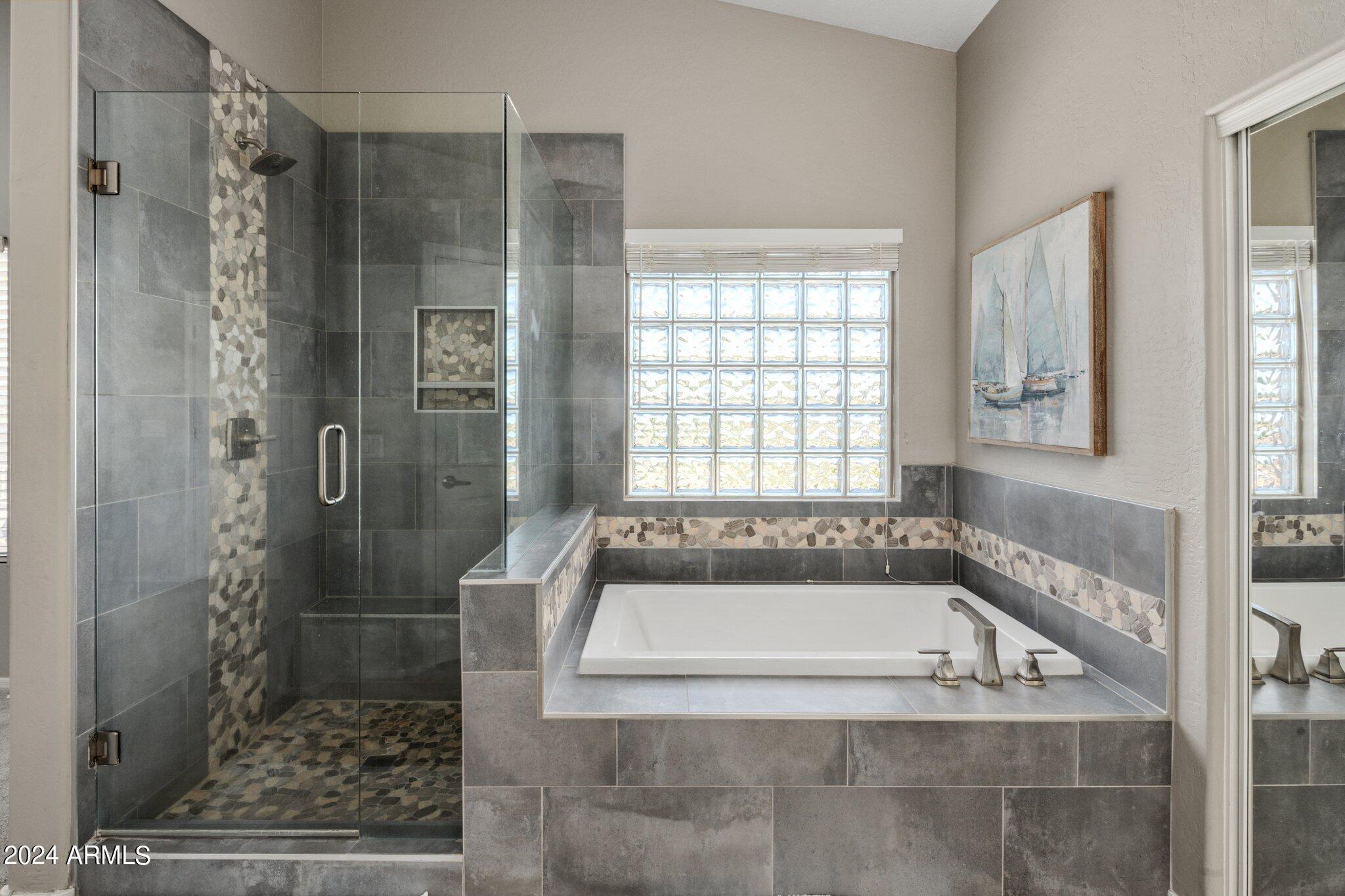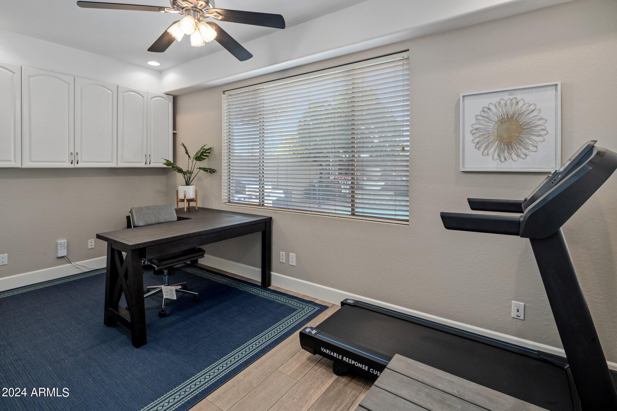 MUST SEE McDowell Mountain Ranch Masterpiece! 4 beds/3 baths PLUS a large home office. Backyard shines with a sparkling heated pool & spa. Beautifully updated, this lovely home includes soft close shaker cabinets, quartz countertops, wood-like porcelain tile floors, plush carpet w/ upgraded pad upstairs, gas fireplace, double oven/gas range, master bathroom features tile shower, oversized soaking tub w/ tile surround, double sinks w/ modern light fixtures. Huge walk-in closet in the primary bedroom . Downstairs bathroom has a lovely tile shower as well. Both AC's have been replaced. Canned lighting added & modern light fixtures. Pool/spa have been resurfaced & automated. Backyard w/citrus trees. Community has tennis, pickelball, heated pool/spas, walking & hiking trails & golf course.