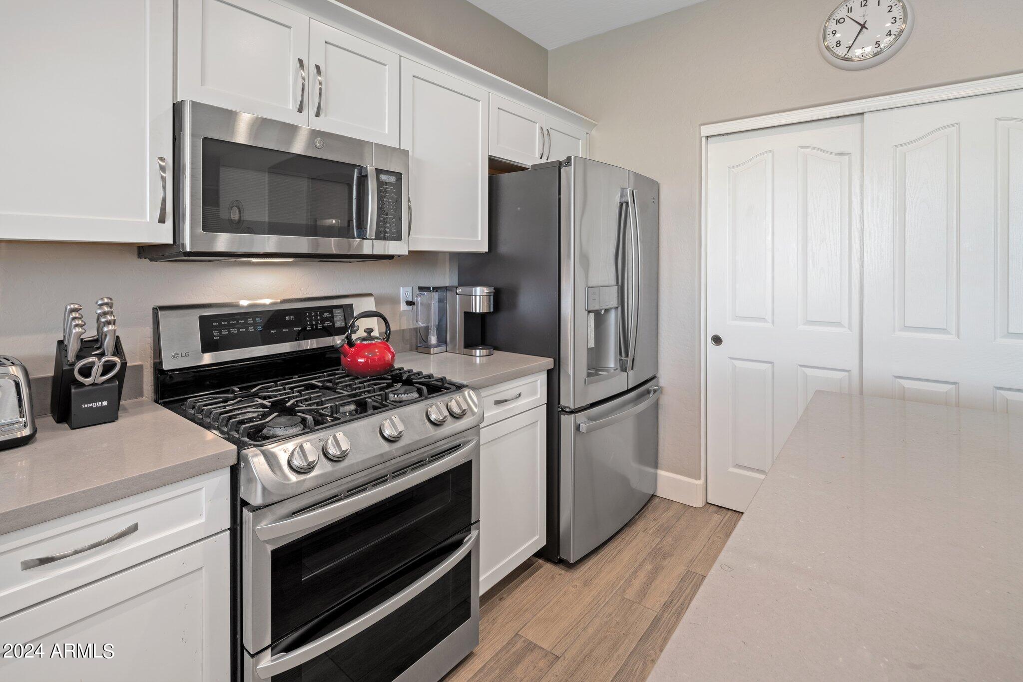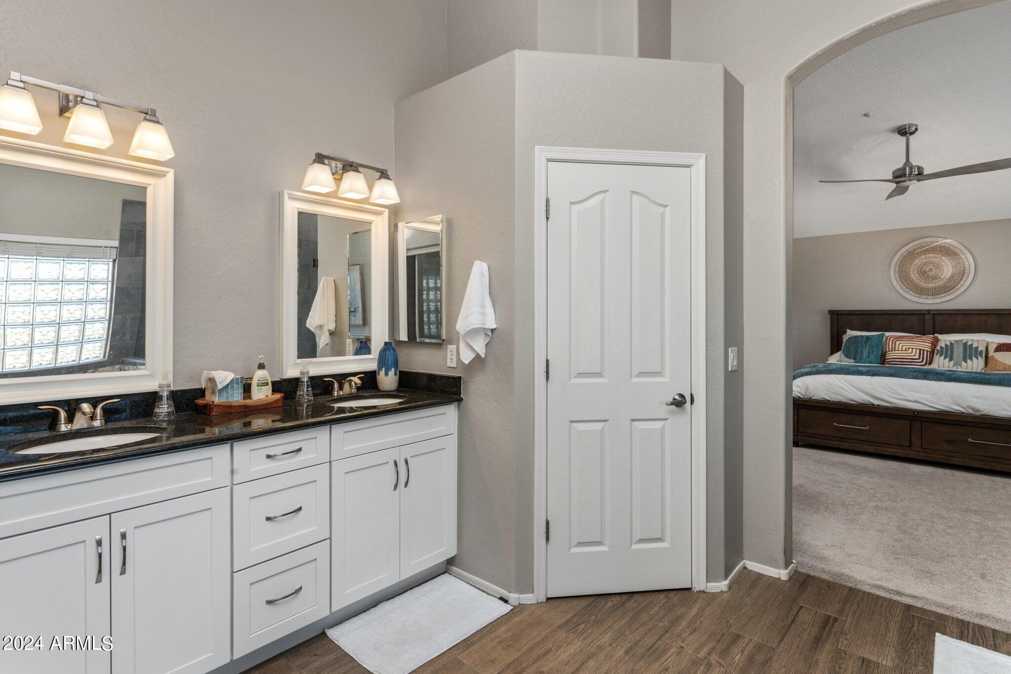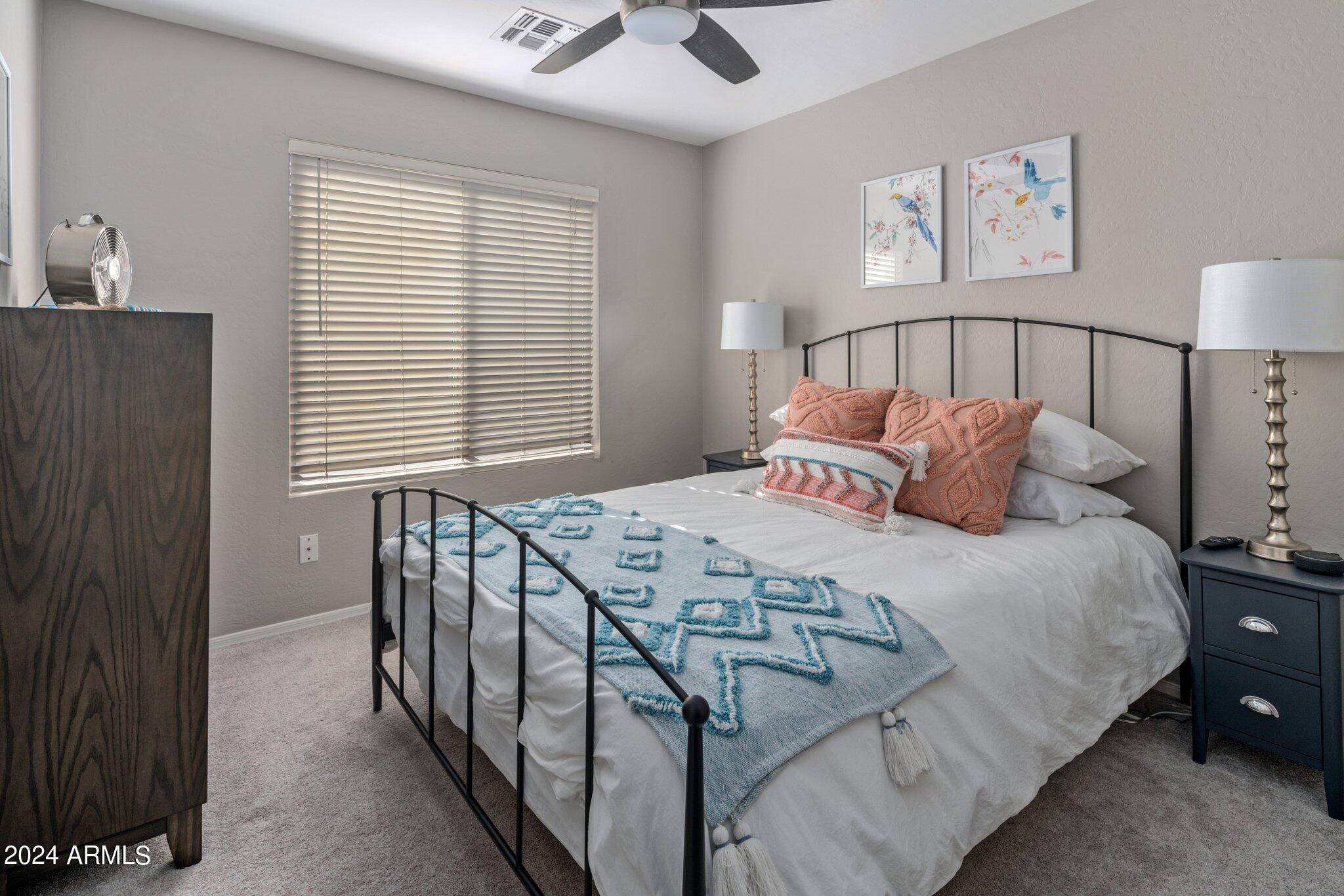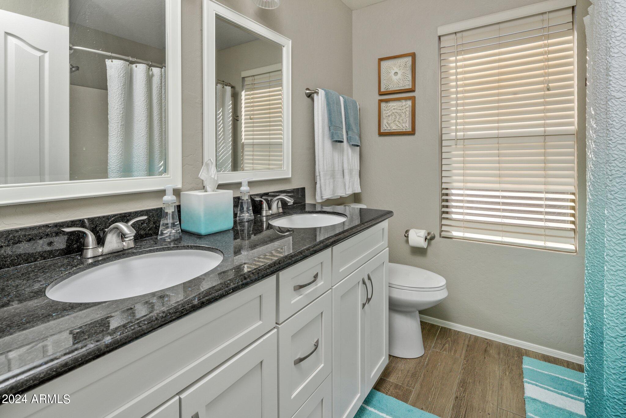 MUST SEE McDowell Mountain Ranch Masterpiece! 4 beds/3 baths PLUS a large home office. Backyard shines with a sparkling heated pool & spa. Beautifully updated, this lovely home includes soft close shaker cabinets, quartz countertops, wood-like porcelain tile floors, plush carpet w/ upgraded pad upstairs, gas fireplace, double oven/gas range, master bathroom features tile shower, oversized soaking tub w/ tile surround, double sinks w/ modern light fixtures. Huge walk-in closet in the primary bedroom . Downstairs bathroom has a lovely tile shower as well. Both AC's have been replaced. Canned lighting added & modern light fixtures. Pool/spa have been resurfaced & automated. Backyard w/citrus trees. Community has tennis, pickelball, heated pool/spas, walking & hiking trails & golf course.
