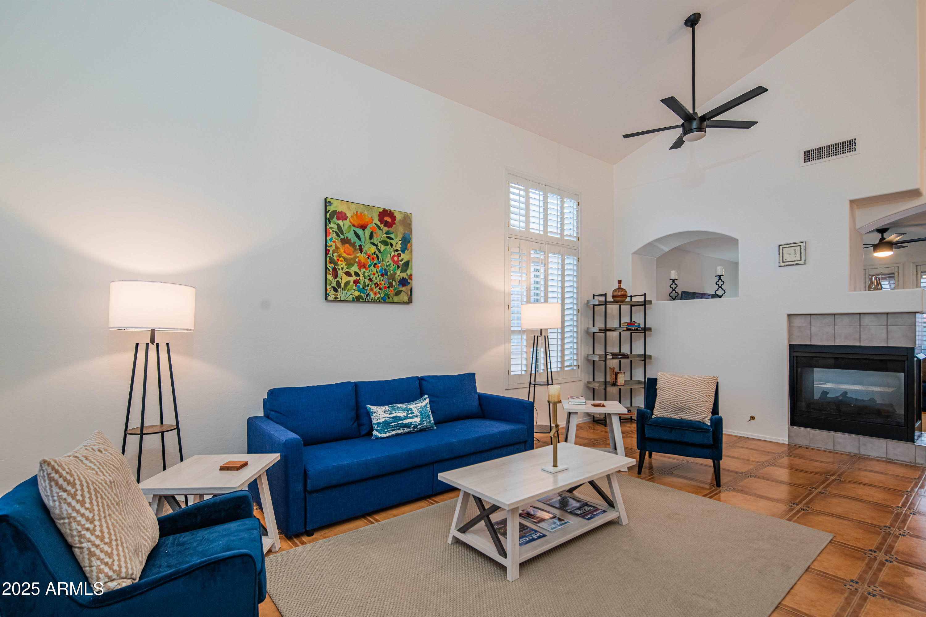 YOUR OWN ARIZONA RETREAT! FULLY FURNISHED!. This immaculate, turn-key 3-bedroom, 2.5-bath home offers style & comfort inside and out. Enjoy your SPARKLING POOL, covered patio, and lushly landscaped backyard-- a private oasis! The open kitchen and family room are perfect for entertaining, complemented by formal living & dining areas with fireplace. Upstairs features a spacious primary suite, two guest bedrooms, full bath, and a versatile loft - ideal for work or play. Highlights include: vaulted ceilings, upgraded fixtures, ceiling fans and lighting! NEW hot water tank, water filtration system, water softener, fresh neutral decor, and 3-car garage with ample storage. Conveniently situated near schools, shopping, recreation, spring training, and more. This is Arizona Living!