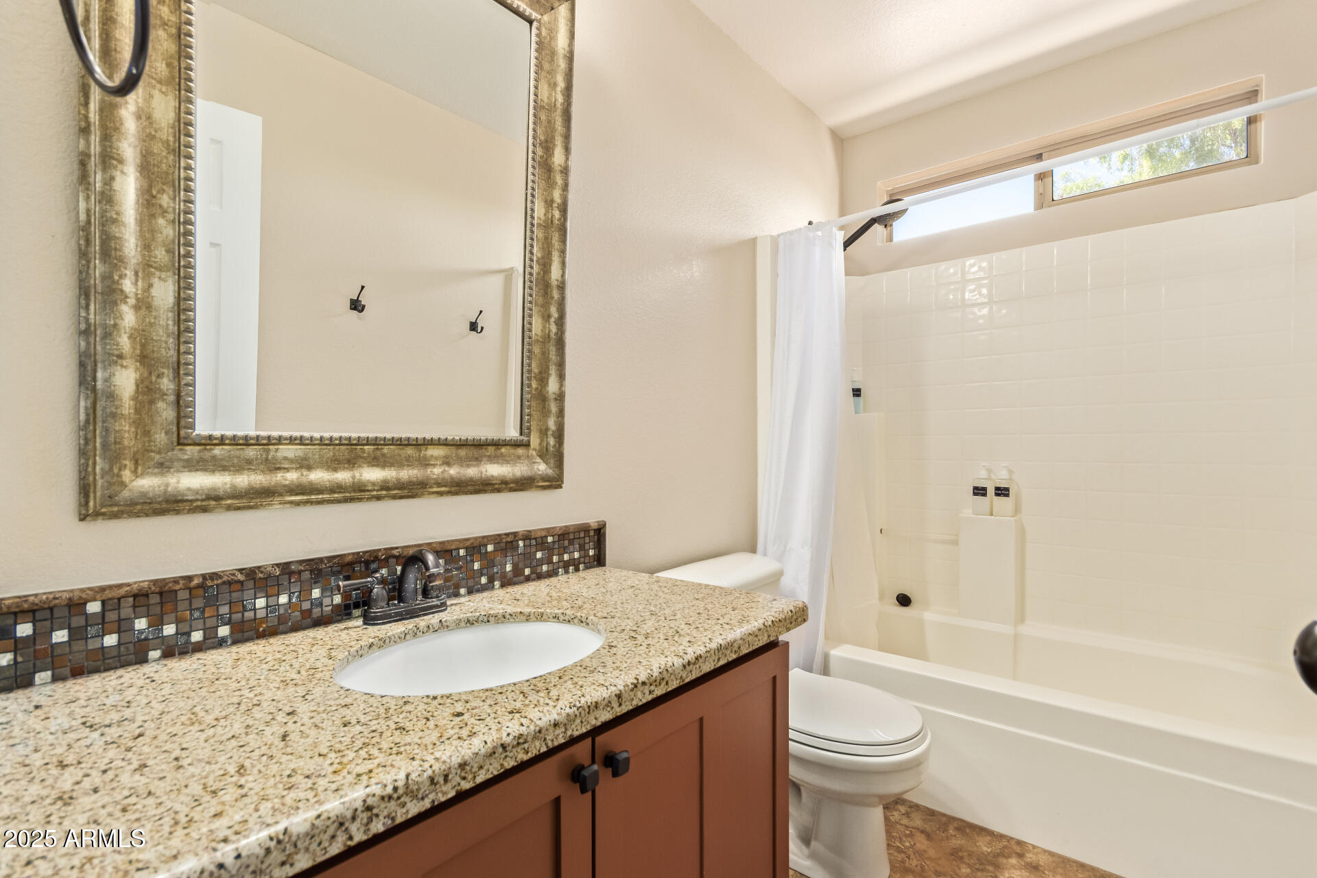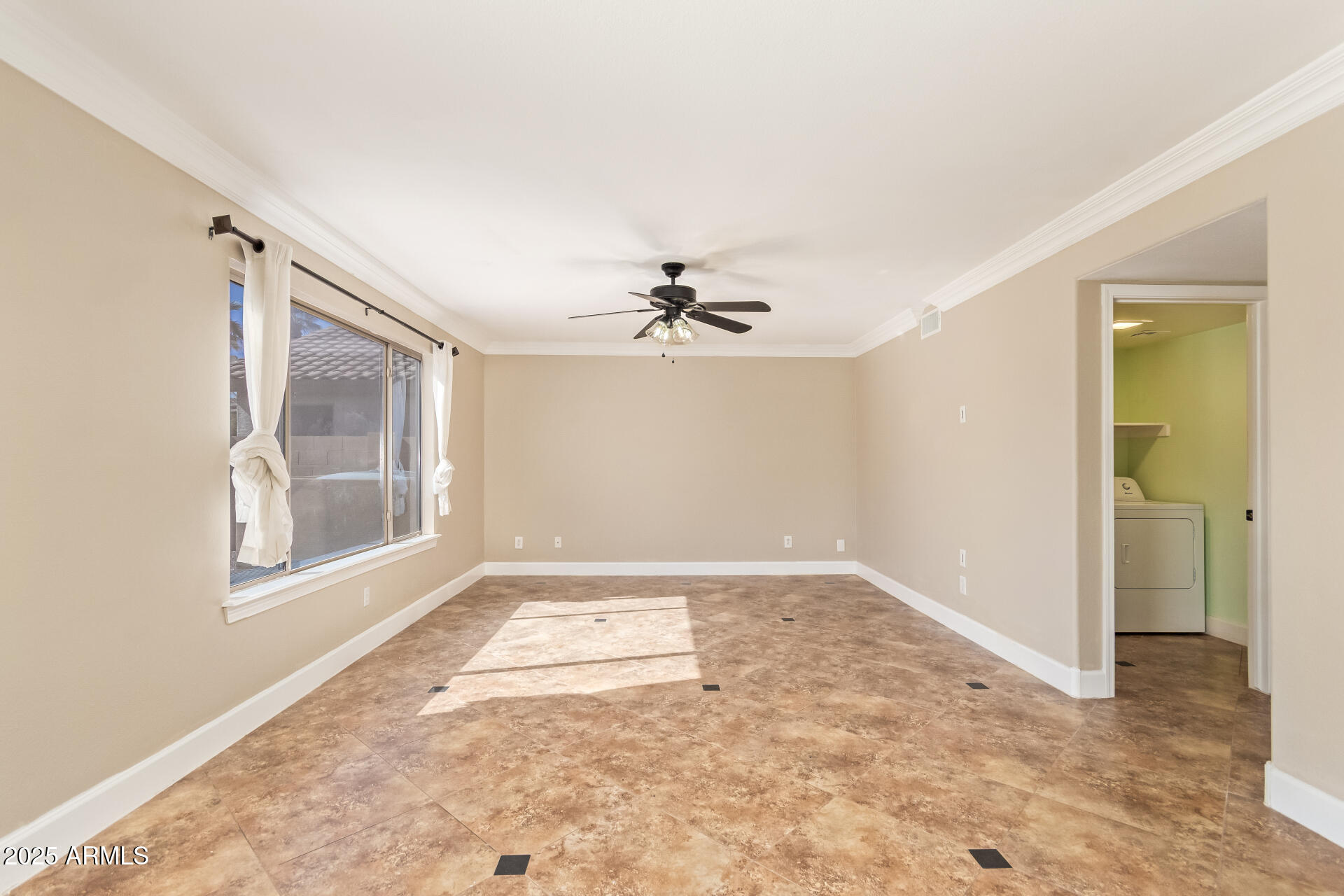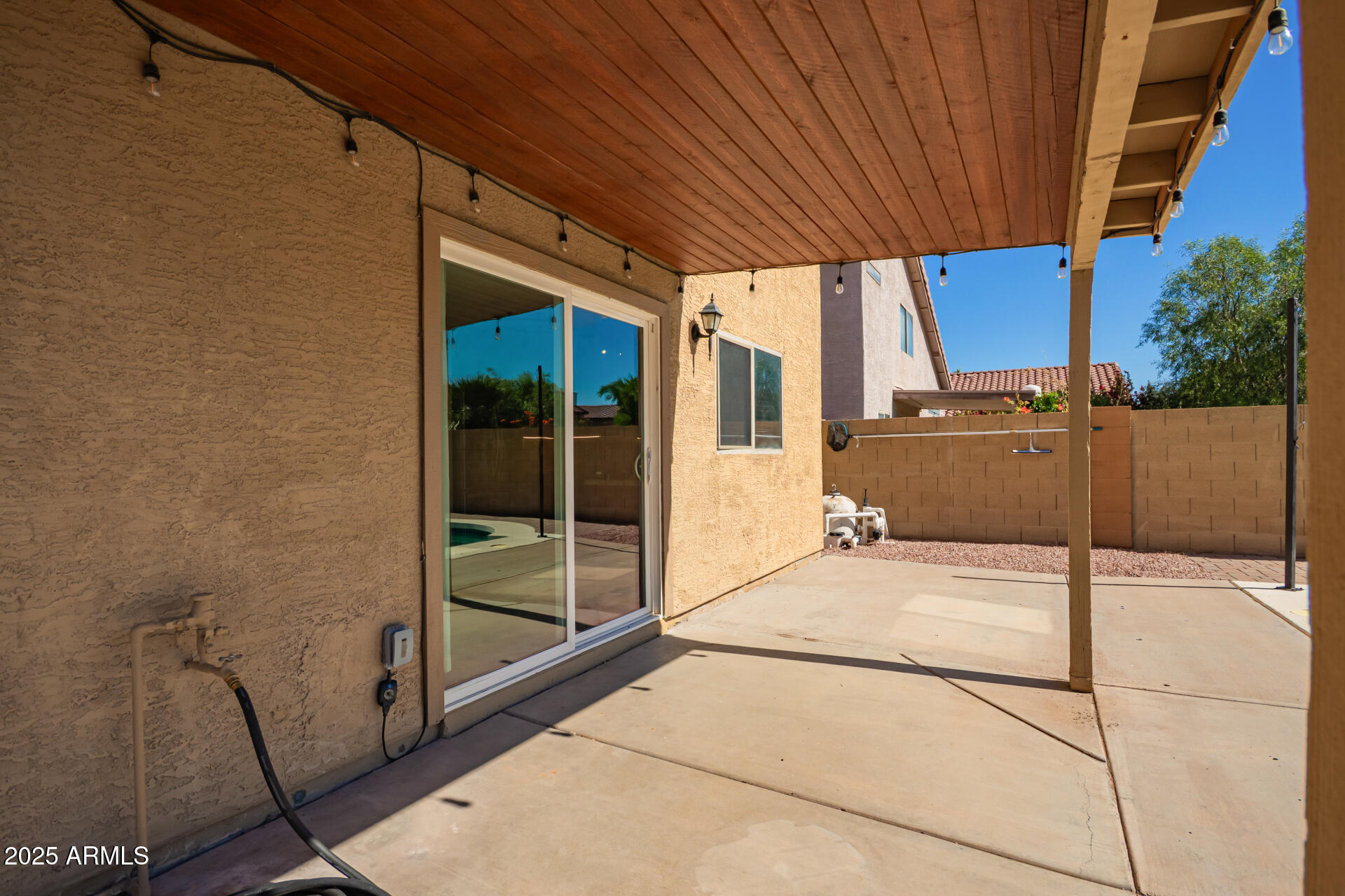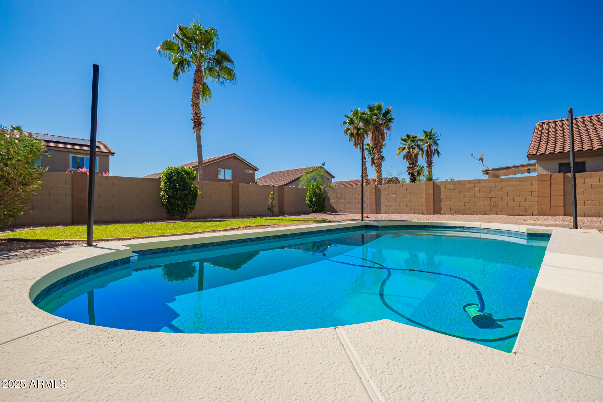 Home, sweet home! This gorgeous two-story pool home has it all. 3 bedrooms, 2.5 bathrooms, a loft, & a 2-car garage. Explore the spacious interior, featuring soaring vaulted ceilings, tile flooring, abundant natural light, crown molding & a soothing palette. The well-appointed kitchen is complete with shaker cabinets, a stylish backsplash, a granite peninsula, & SS appliances. Get a restful sleep in the main suite, displaying a walk-in closet for easy organization & a full ensuite with dual sinks. The loft is the perfect spot for a gaming zone. In the backyard, you'll have plenty of space for outdoor activities, including a covered patio, a nice seating space with pavers, a grass area perfect for a playground & a sparkling pool for hot summer days! Hurry up, this gem won't last!